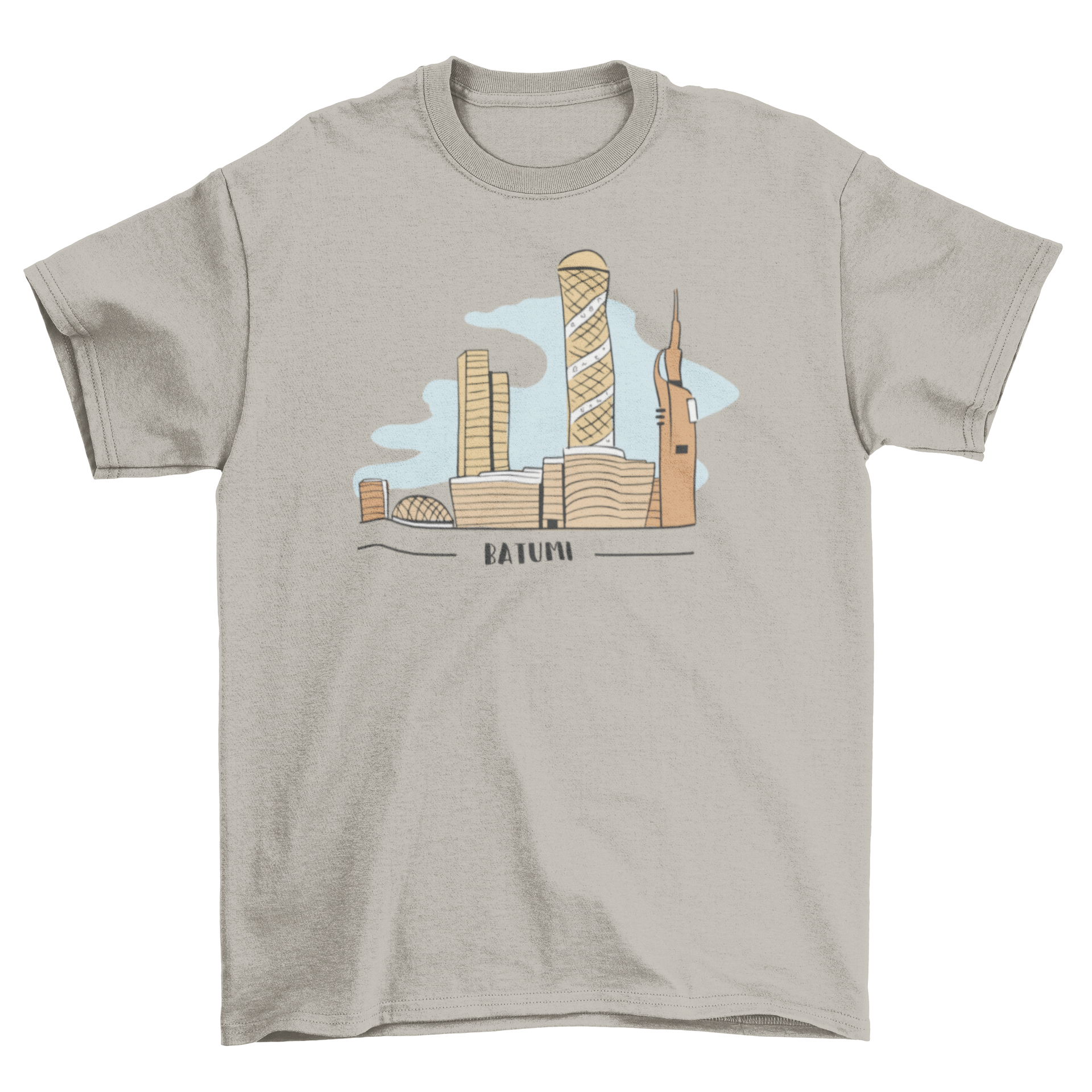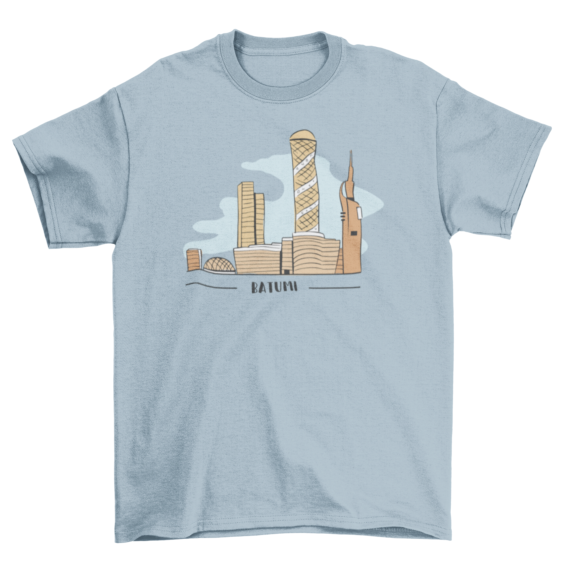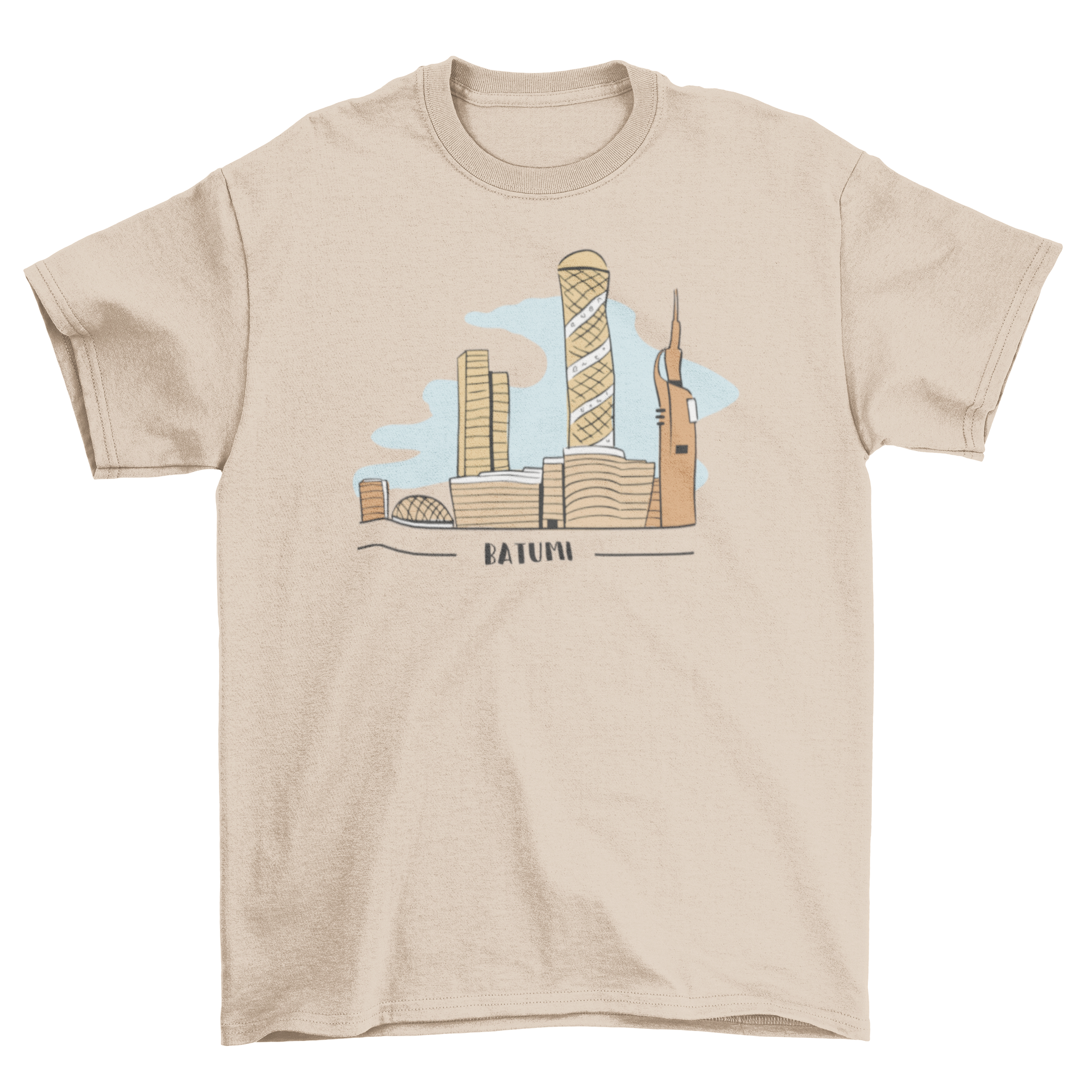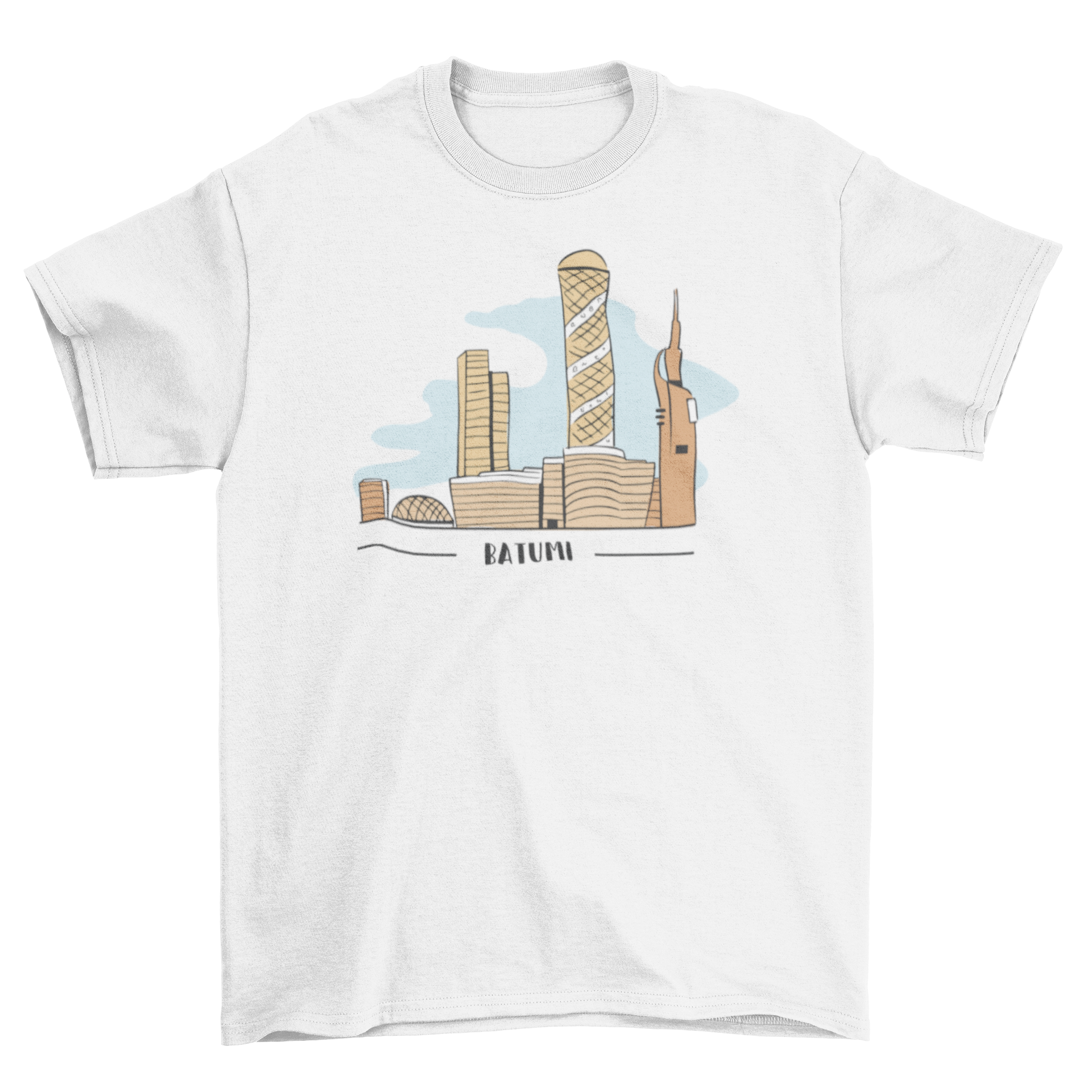 City urban landscape t-shirt featuring a vibrant city skyline and the quote 'Batumi'.