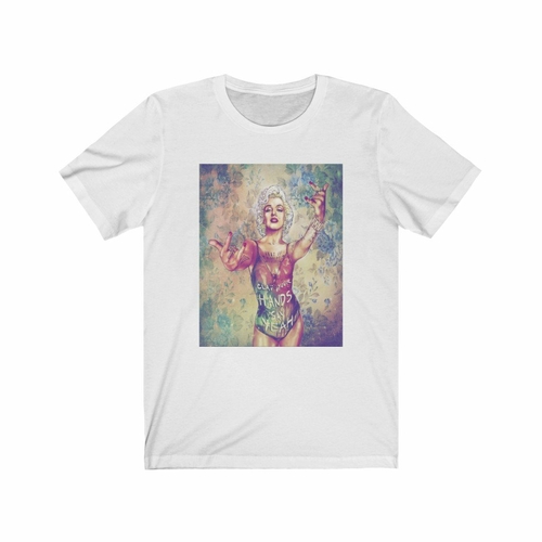 To keep your Clap Your Hands Marilyn Monroe Graphic T-Shirt looking its best, it's important to follow the care instructions. Machine wash cold with like colors, and tumble dry low to maintain the quality of the fabric and graphic. Avoid using bleach or harsh detergents to preserve the vibrant colors and softness of the shirt.