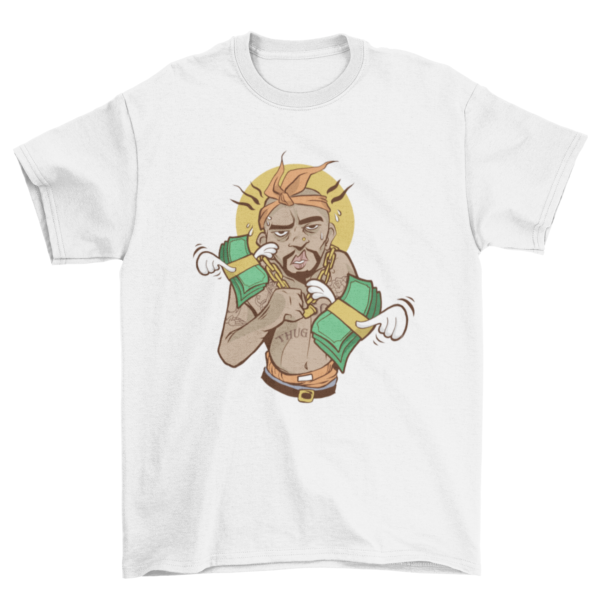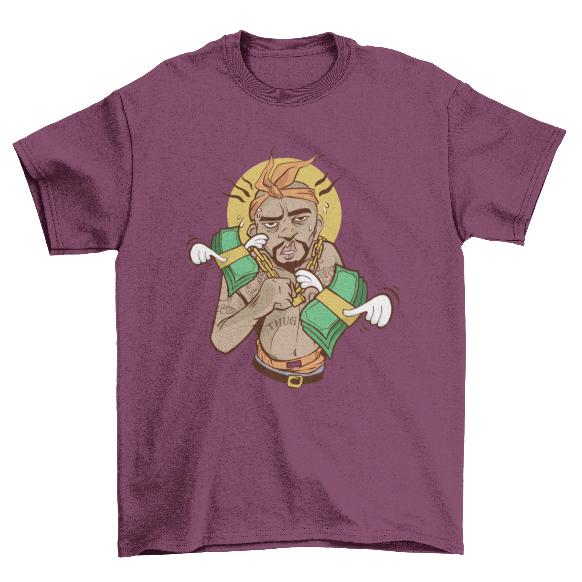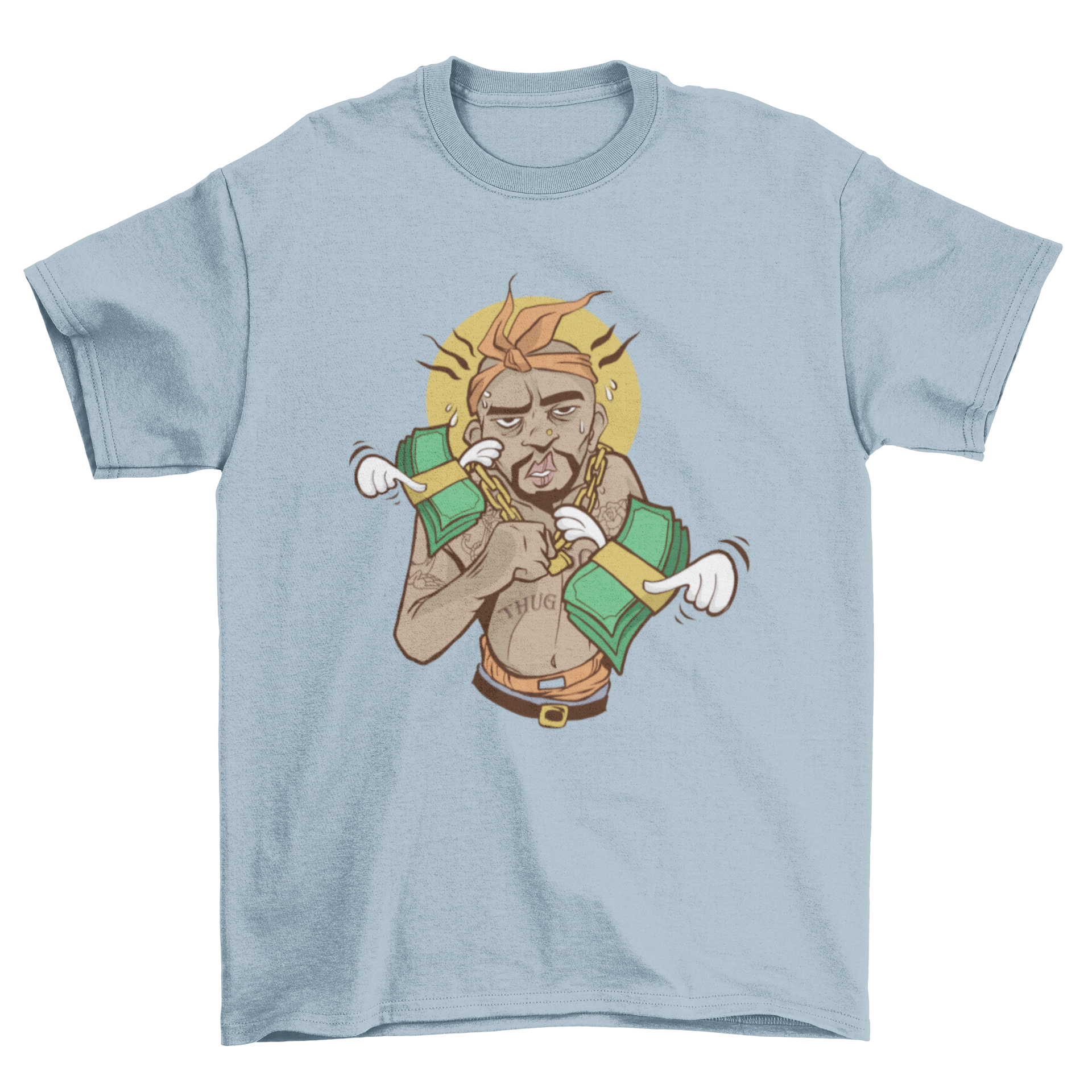 The design showcases an exhausted man ready to fight, adorned with a bandana and a chain necklace. This imagery resonates with the street culture and the hustle of urban life. The diverse tattoos on the character add an extra layer of personality, making it a perfect fit for those who appreciate art and self-expression.
