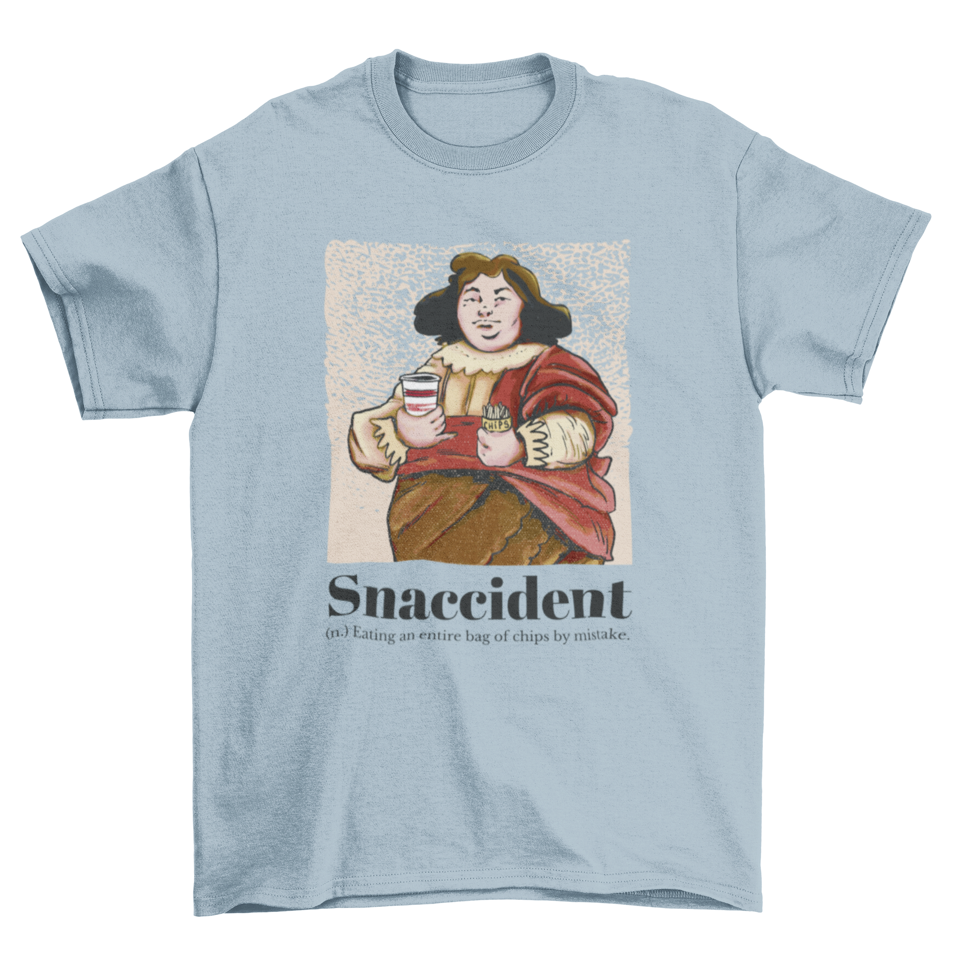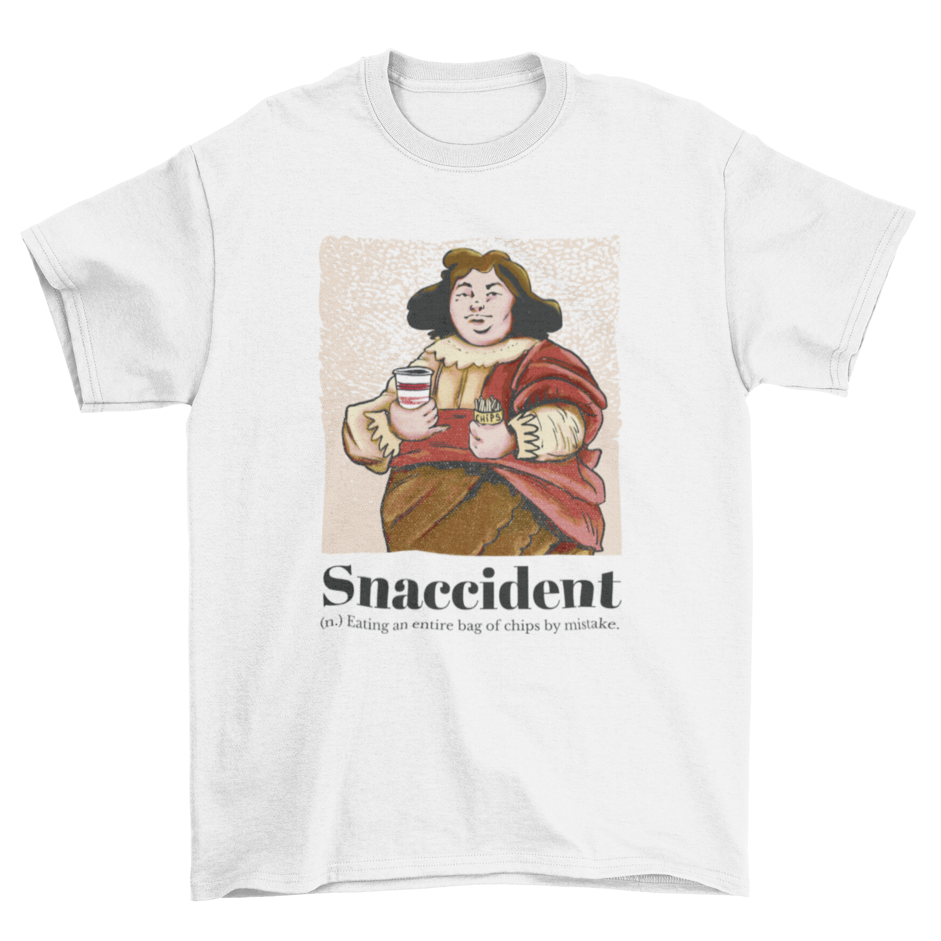 The standout feature of this t-shirt is its one-of-a-kind design. The medieval man depicted in the artwork adds a touch of historical charm, while the quote 'Snaccident' brings a modern twist. This combination makes it a perfect choice for those who appreciate both art and humor. Wear it to parties, casual outings, or even while lounging at home, and enjoy the compliments that come your way!