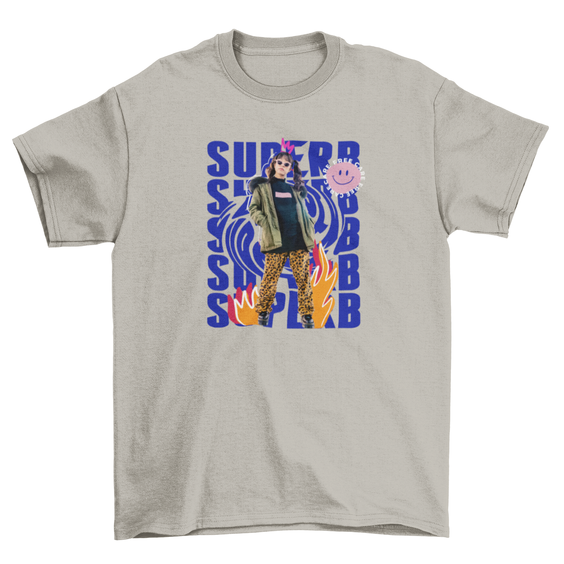 Introducing our Cool Girl Street Style T-Shirt, a must-have addition to your wardrobe that combines fashion and inspiration. This amazing t-shirt design showcases a girl dressed in a stylish outfit, embodying the essence of modern street fashion. With quotes like 'Superb' printed on it, this t-shirt not only makes a fashion statement but also uplifts your mood every time you wear it.