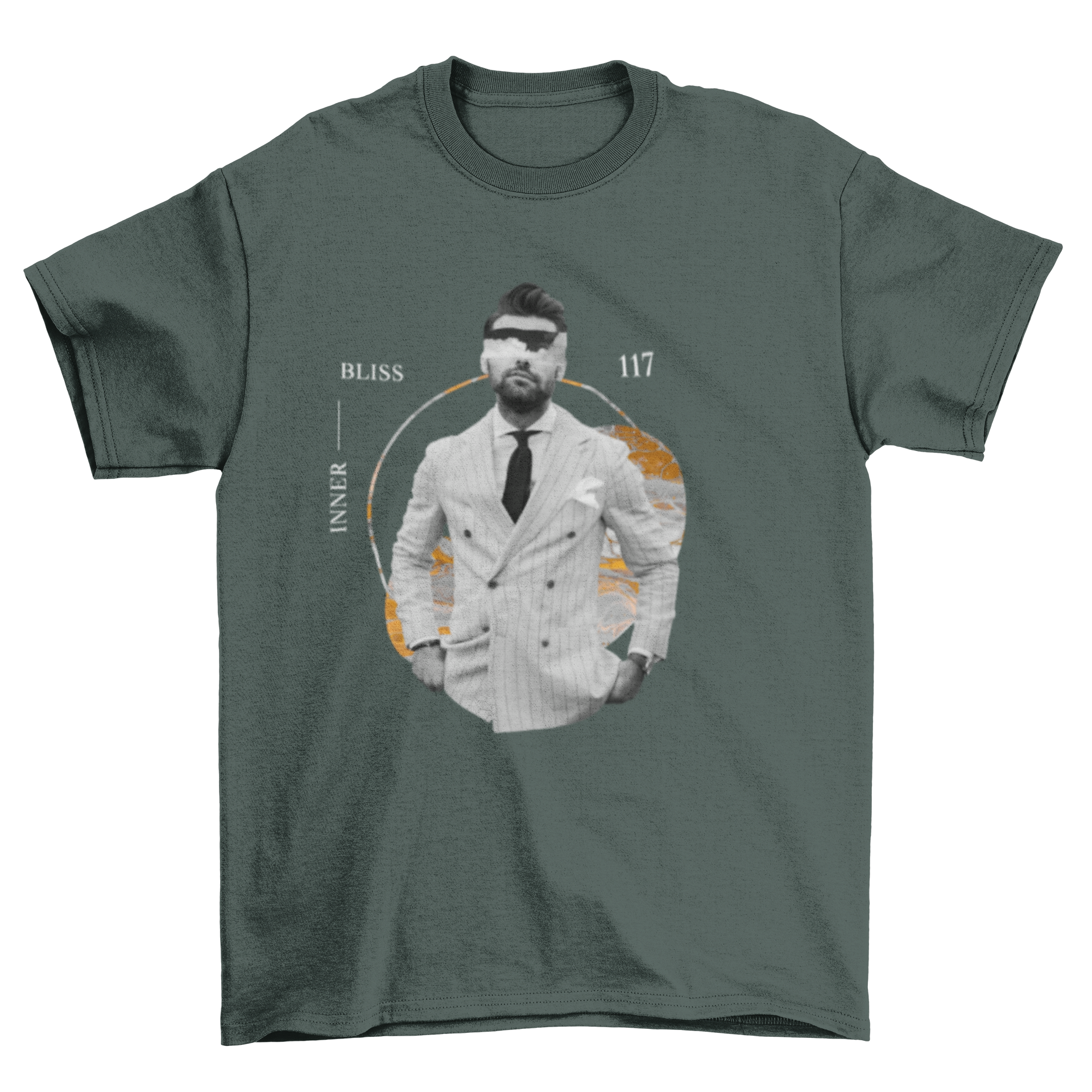 The standout feature of this t-shirt is its eye-catching design. The combination of a fashionable man in a suit with marble-style graphics creates a visually appealing aesthetic that is sure to turn heads. The marble effect adds a touch of sophistication, making it perfect for those who want to express their style in a subtle yet impactful way.