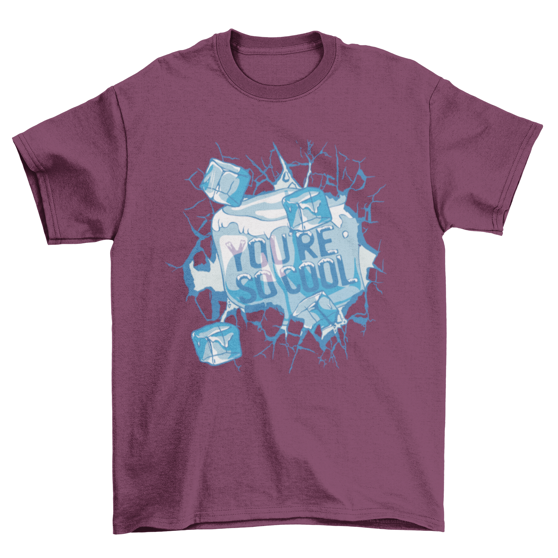 Introducing our Cool Ice Cube T-Shirt Design, a perfect blend of style and humor that is sure to turn heads. This amazing t-shirt features a vibrant graphic of ice cubes accompanied by the playful quote, "You're so cool." Whether you're looking to make a statement or simply want to express your fun personality, this t-shirt is an ideal choice.