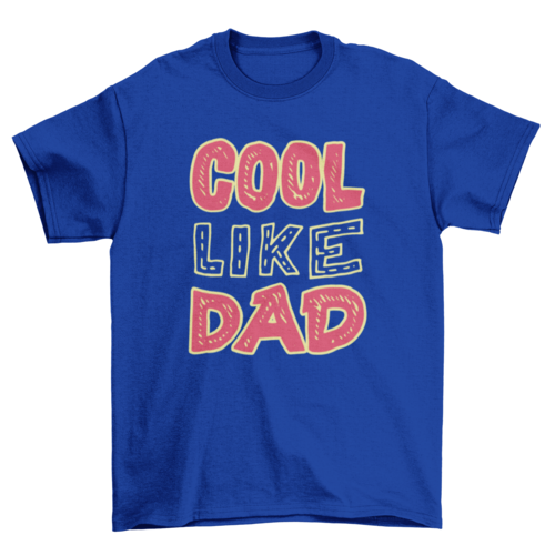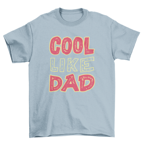 Introducing our Colorful Father Unique Design t-shirt, a perfect blend of style and fun for your little ones. This eye-catching t-shirt features a playful quote, 'Cool like dad,' designed specifically for kids who want to express their admiration for their fathers. The vibrant colors of red and blue letters, complemented by a bright yellow outline, make this t-shirt a standout piece in any child's wardrobe.