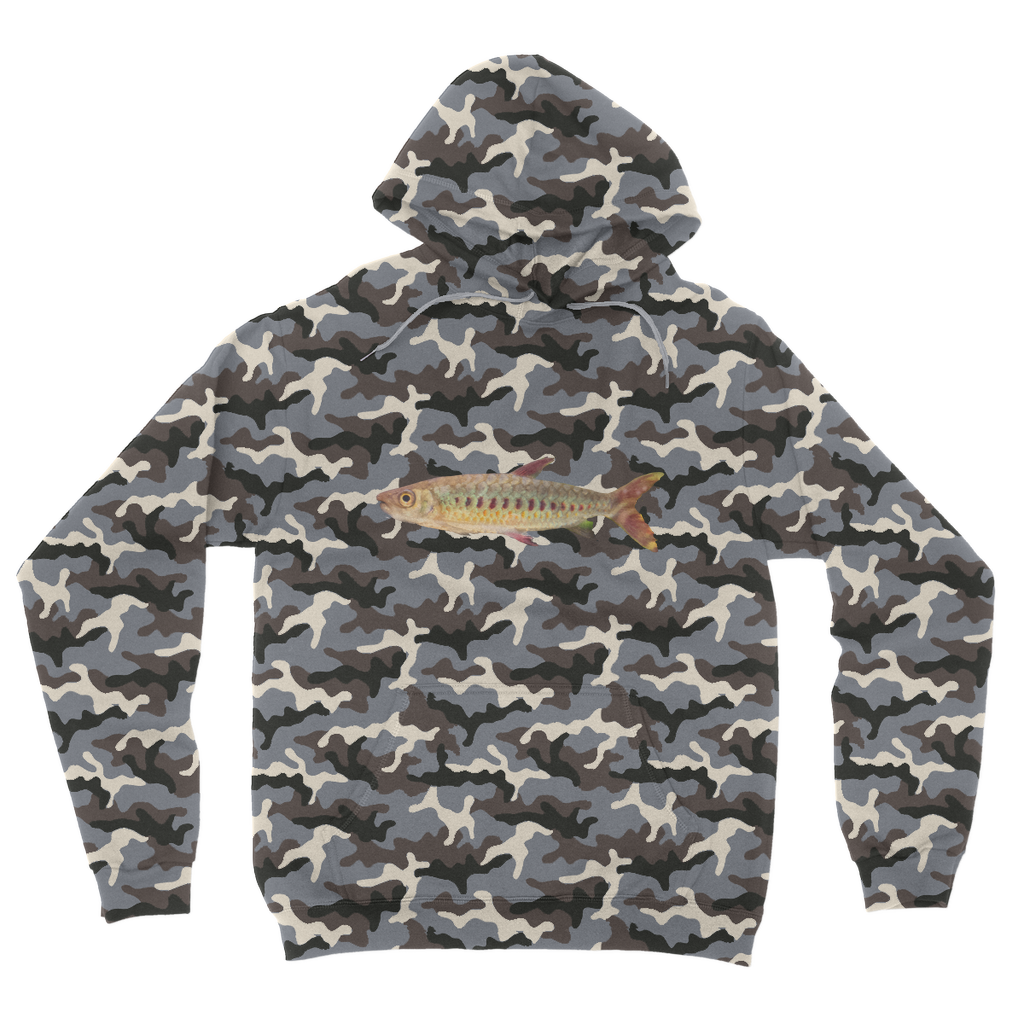 Introducing the Colorful Fish Camouflage Adult Hoodie, a must-have addition to your wardrobe that combines style and comfort effortlessly. This hoodie features a striking all-over camouflage design that not only keeps you on-trend but also adds a unique flair to your casual outfits. Made from a blend of 70% cotton and 30% polyester, this hoodie is designed to provide warmth and comfort, making it perfect for any season.