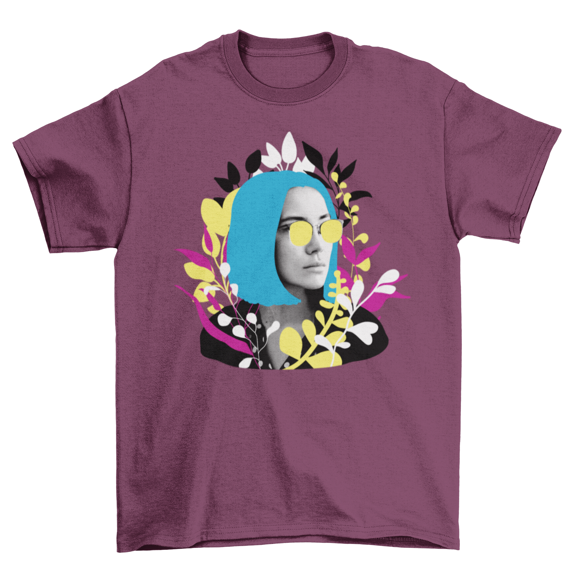 Introducing the Colorful Girl Floral Tee, a must-have addition to your wardrobe that combines style and comfort effortlessly. This unique t-shirt features a captivating design of a girl wearing glasses, surrounded by vibrant floral elements that add a touch of whimsy and charm. Perfect for those who love to express their individuality through fashion, this tee is not just a piece of clothing; it's a statement.