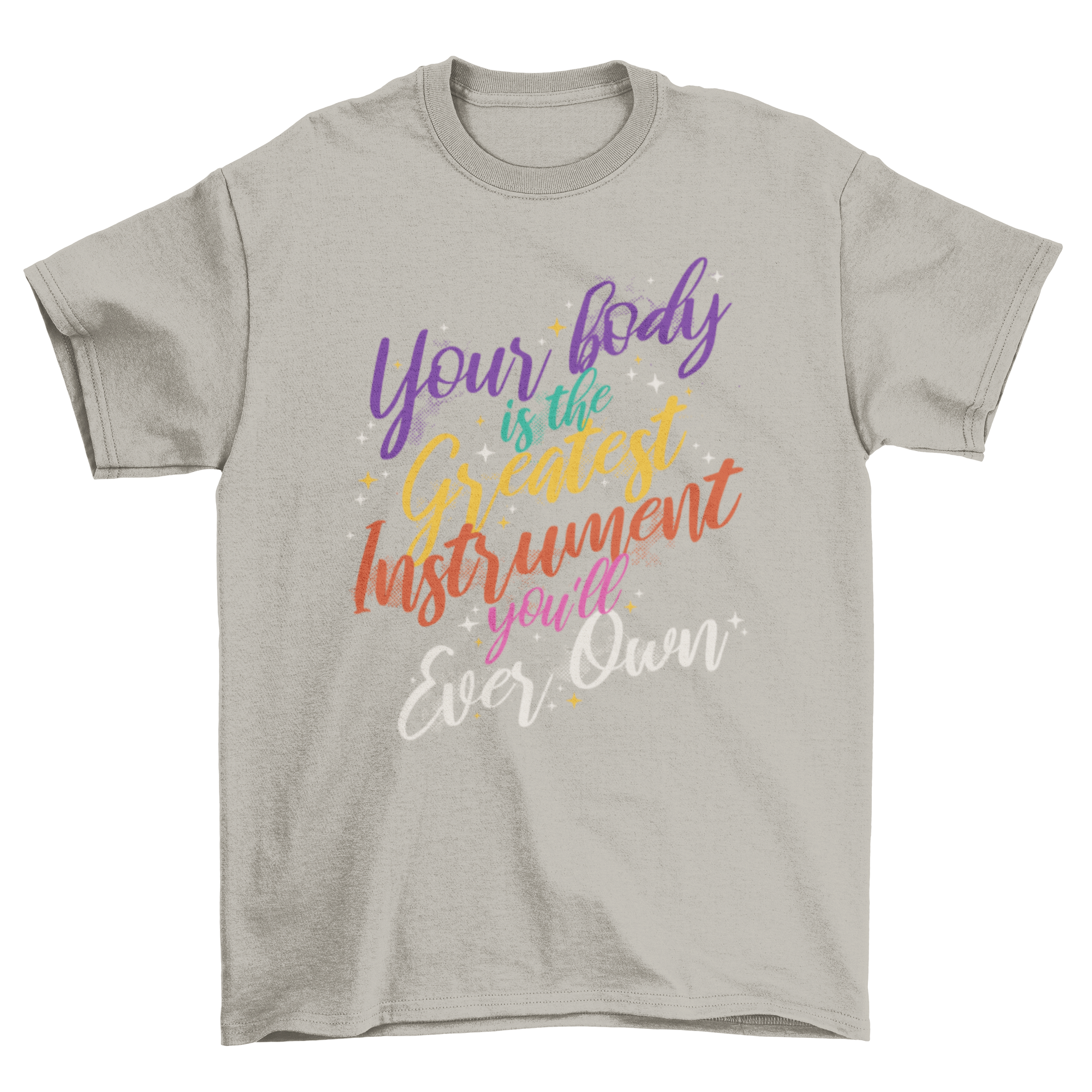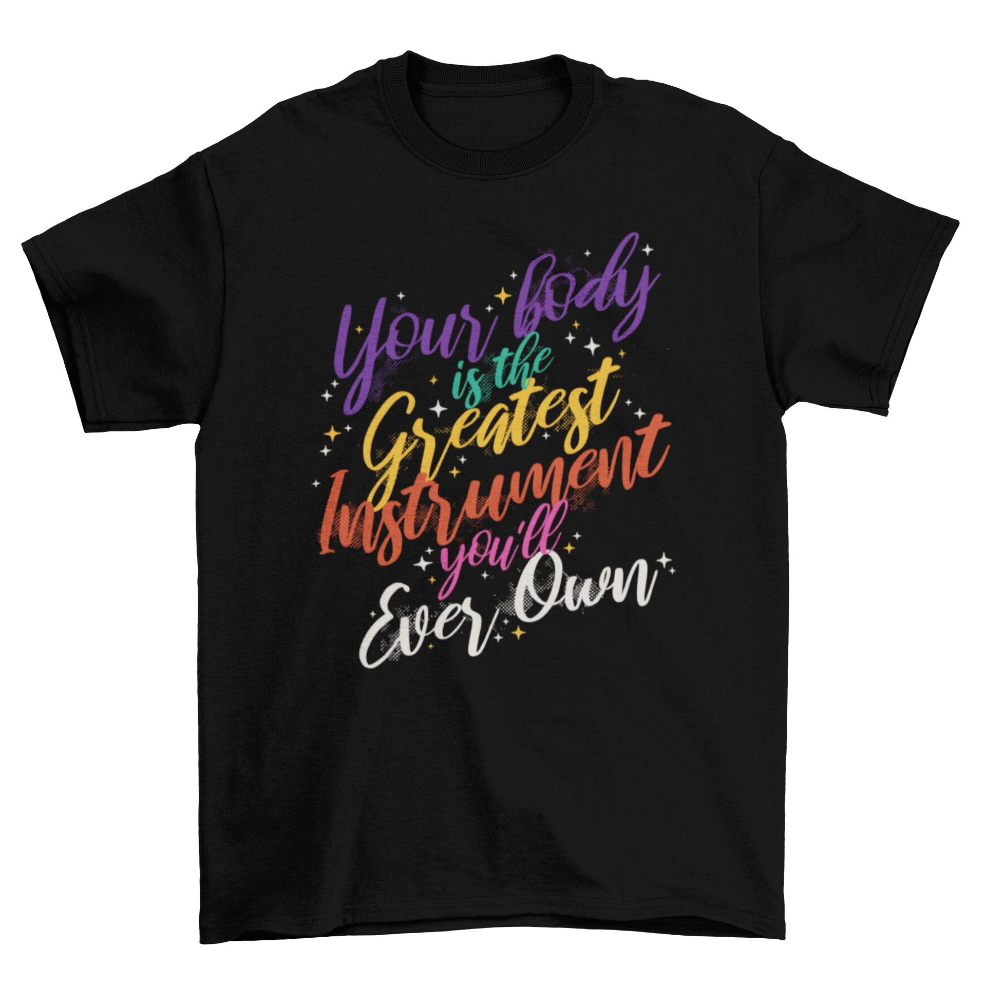 Discover the perfect blend of style and motivation with our colorful t-shirt featuring the empowering quote, 'Your body is the greatest instrument you'll ever own.' This unique design not only makes a bold fashion statement but also serves as a daily reminder of the importance of self-care and body positivity.