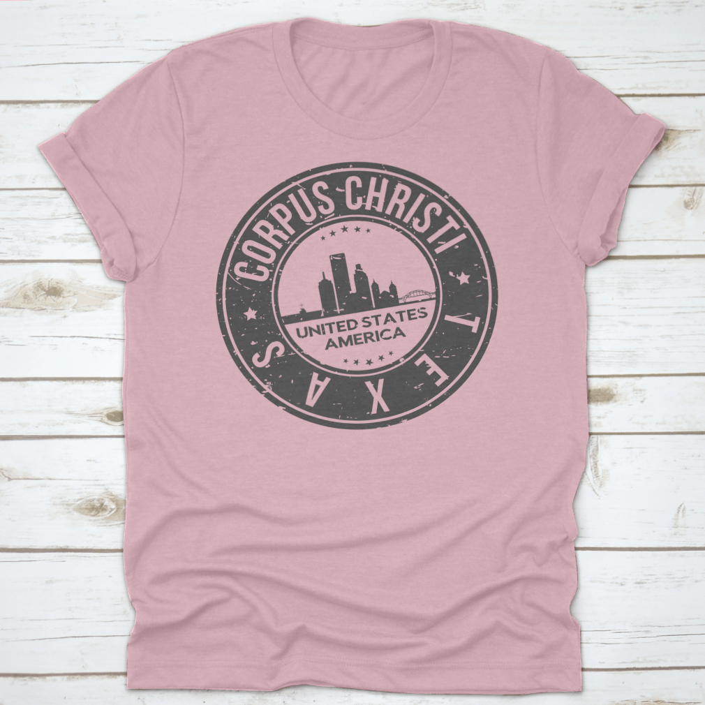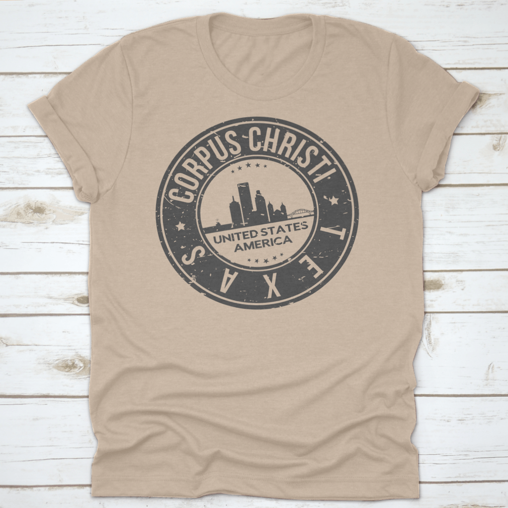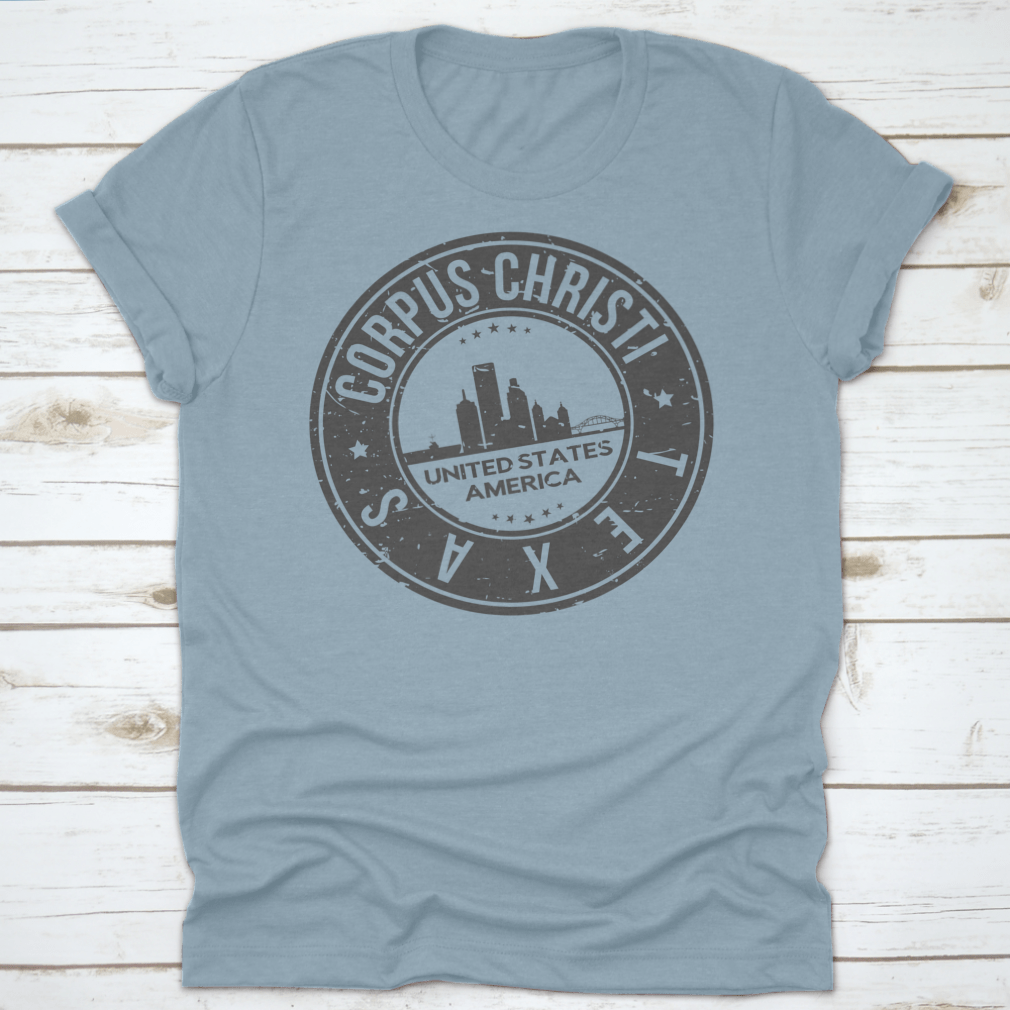Every aspect of the Corpus Christi Texas Skyline Stamp Art has been meticulously designed. The double-needle sleeve and bottom hems provide added strength, while the tear-away label ensures a clean finish. This attention to detail not only enhances the aesthetic appeal but also guarantees that you receive a product of the highest quality.