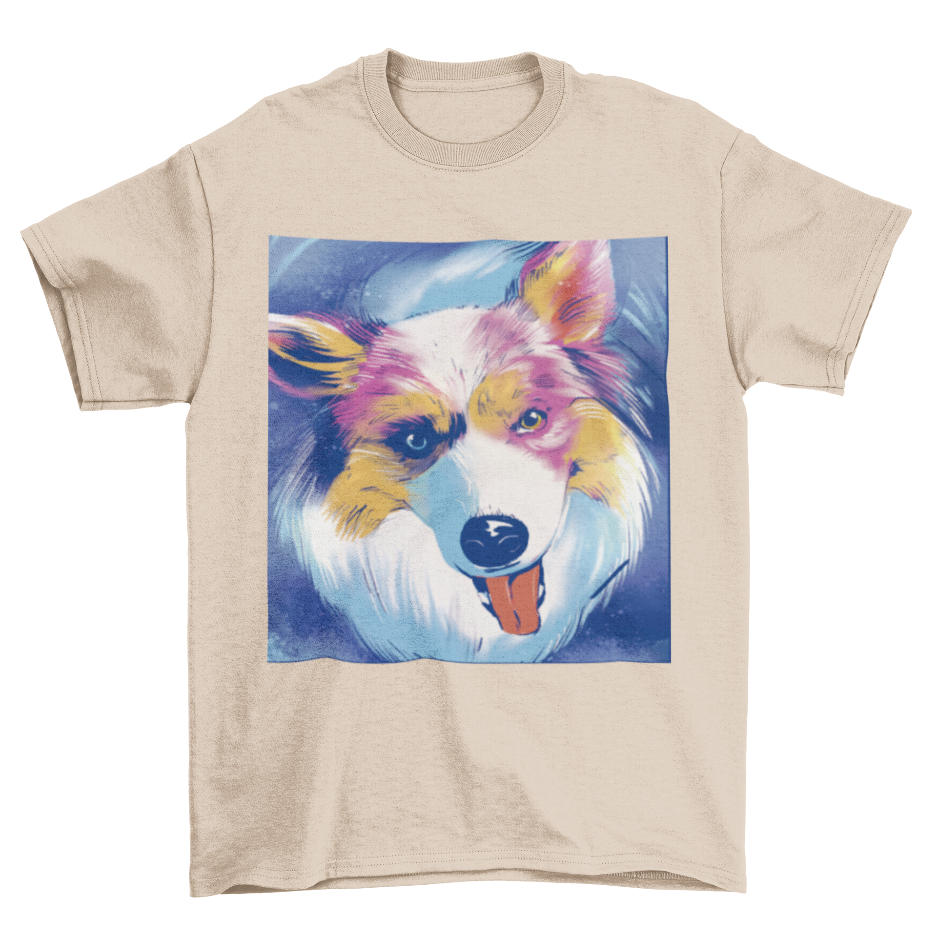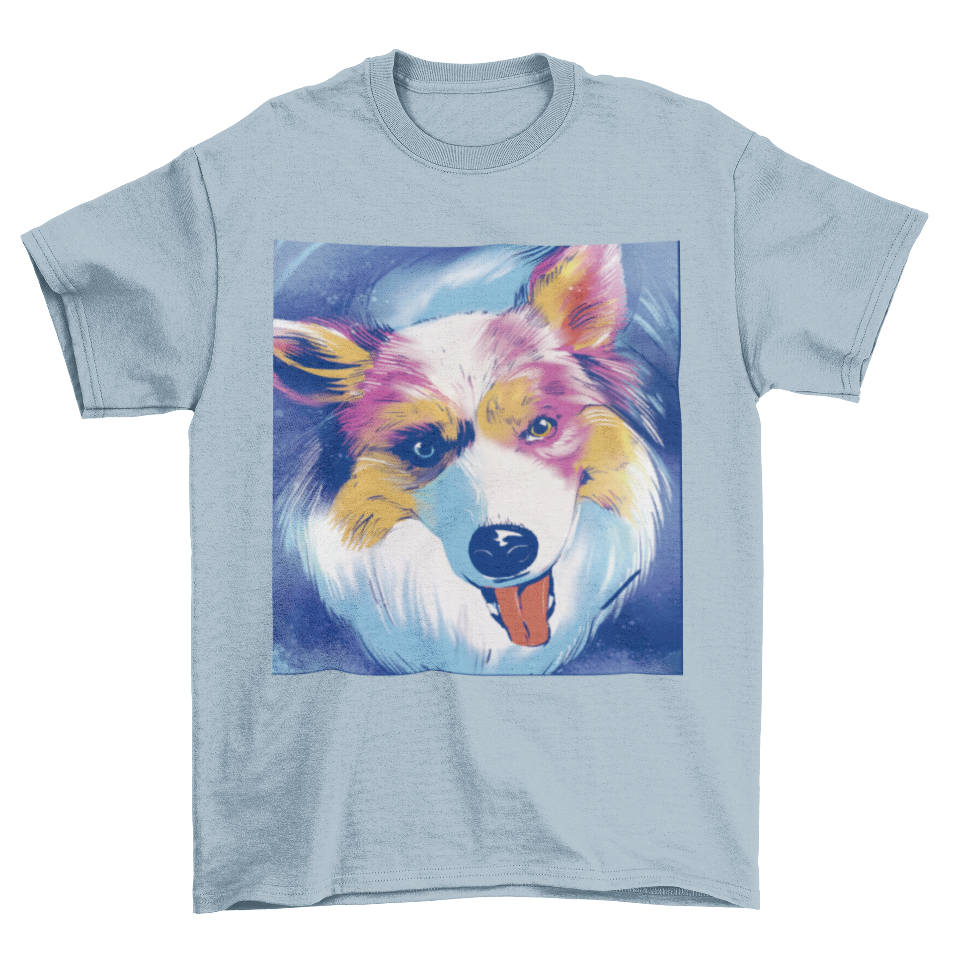 To keep your t-shirt looking its best, we recommend machine washing it in cold water and tumble drying on low heat. Avoid using bleach or harsh detergents to preserve the vibrant colors of the Australian Shepherd painting. With proper care, this t-shirt will remain a favorite in your wardrobe for years to come.