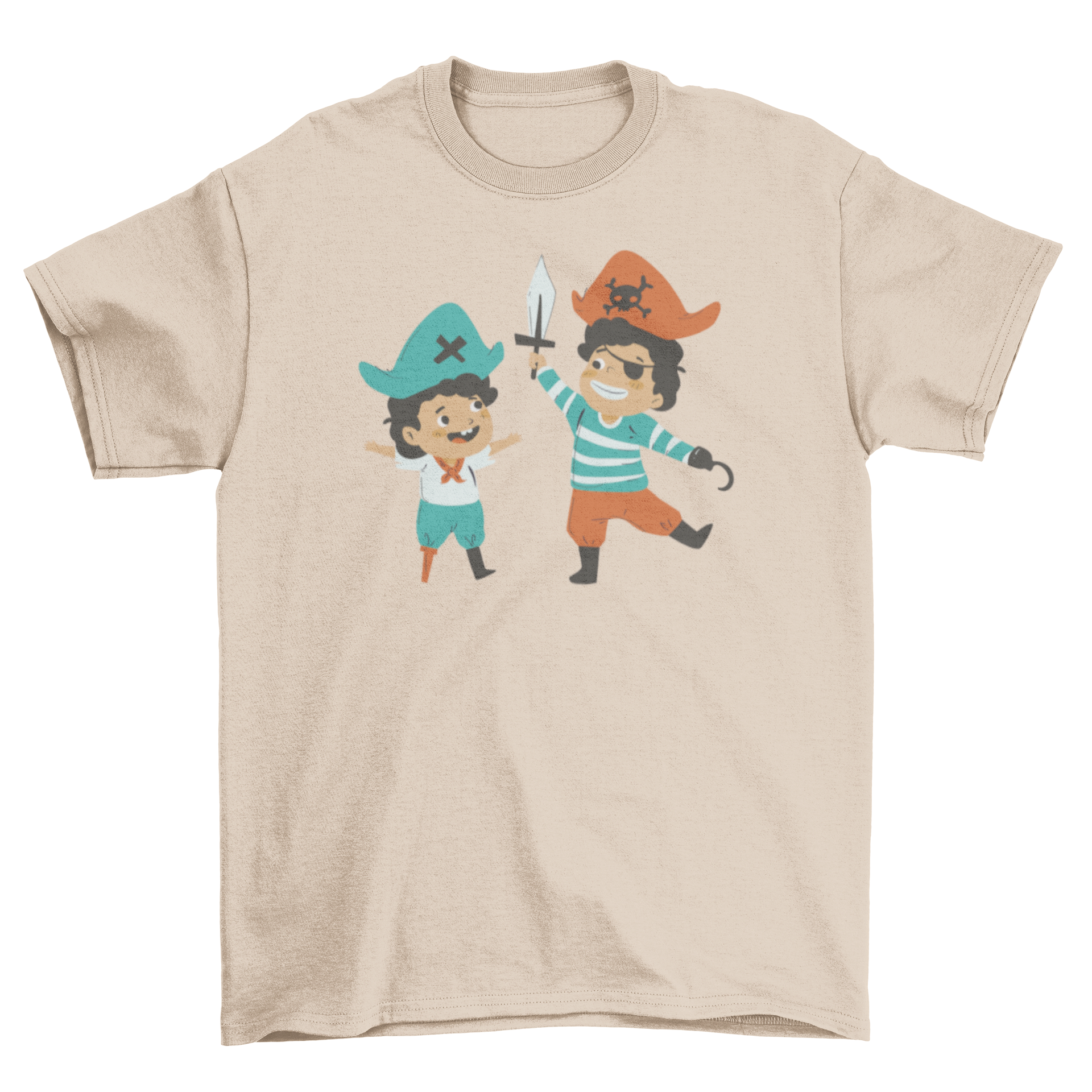Introducing our Cute Pirate Children T-Shirt, a delightful addition to your child's wardrobe that sparks imagination and adventure. This charming t-shirt features a whimsical design of two children dressed as pirates, ready to set sail on their next big adventure. Made from high-quality, soft fabric, this t-shirt ensures comfort for all-day wear, whether your little ones are playing at home or out exploring the world.