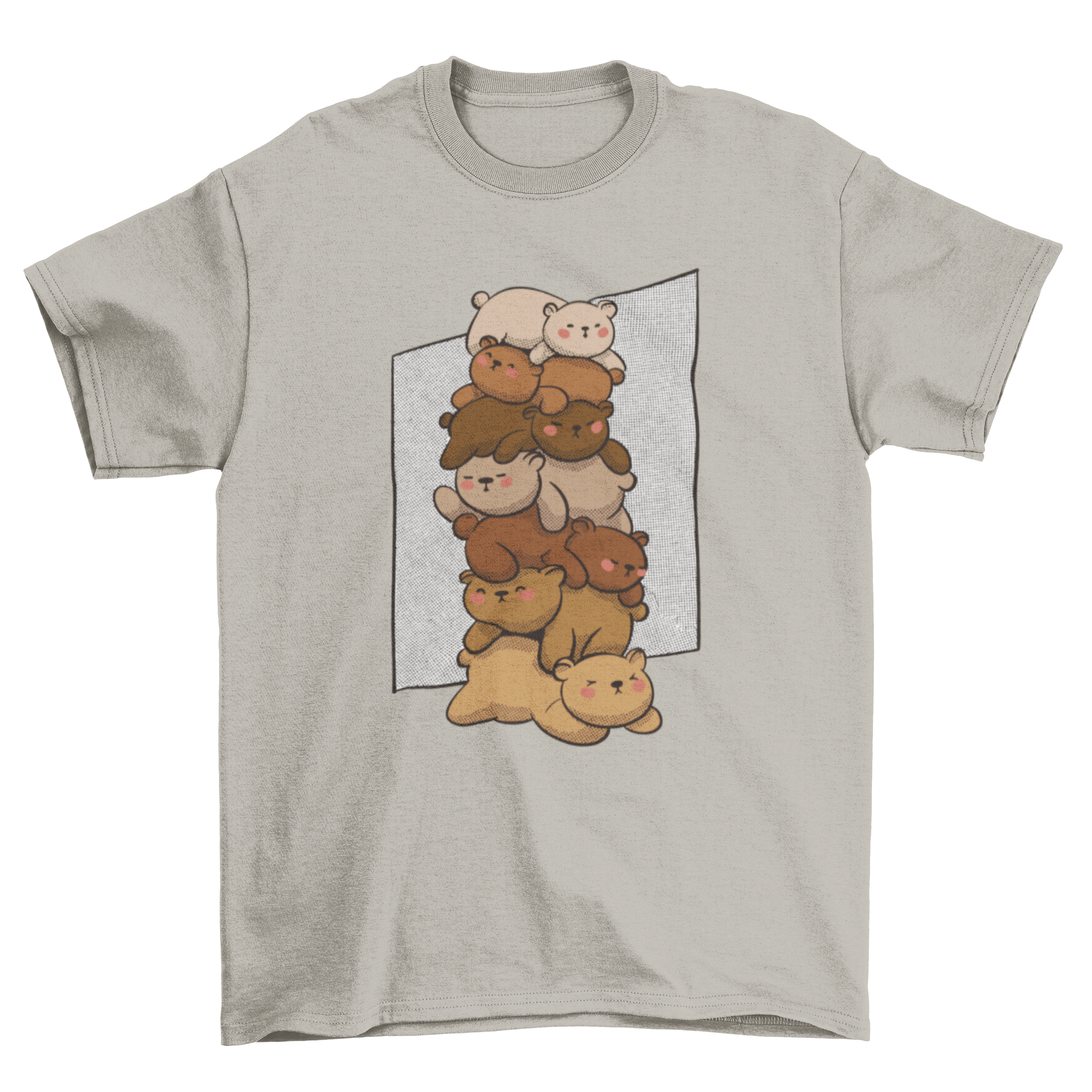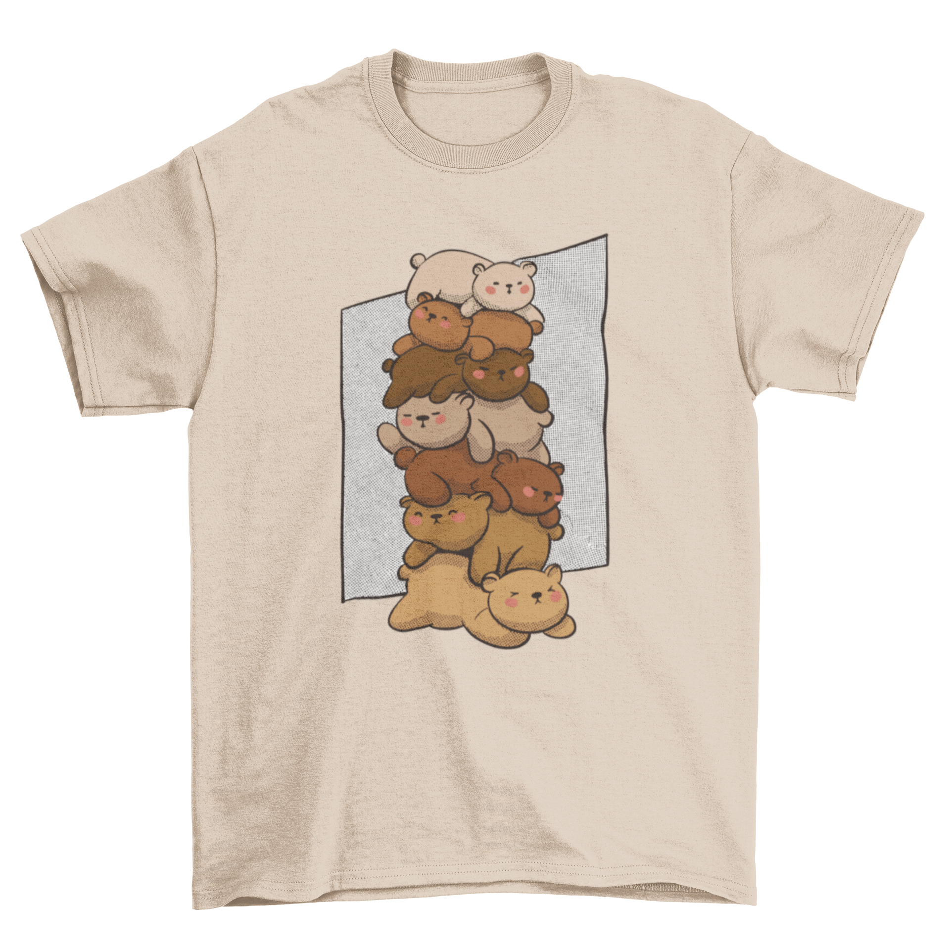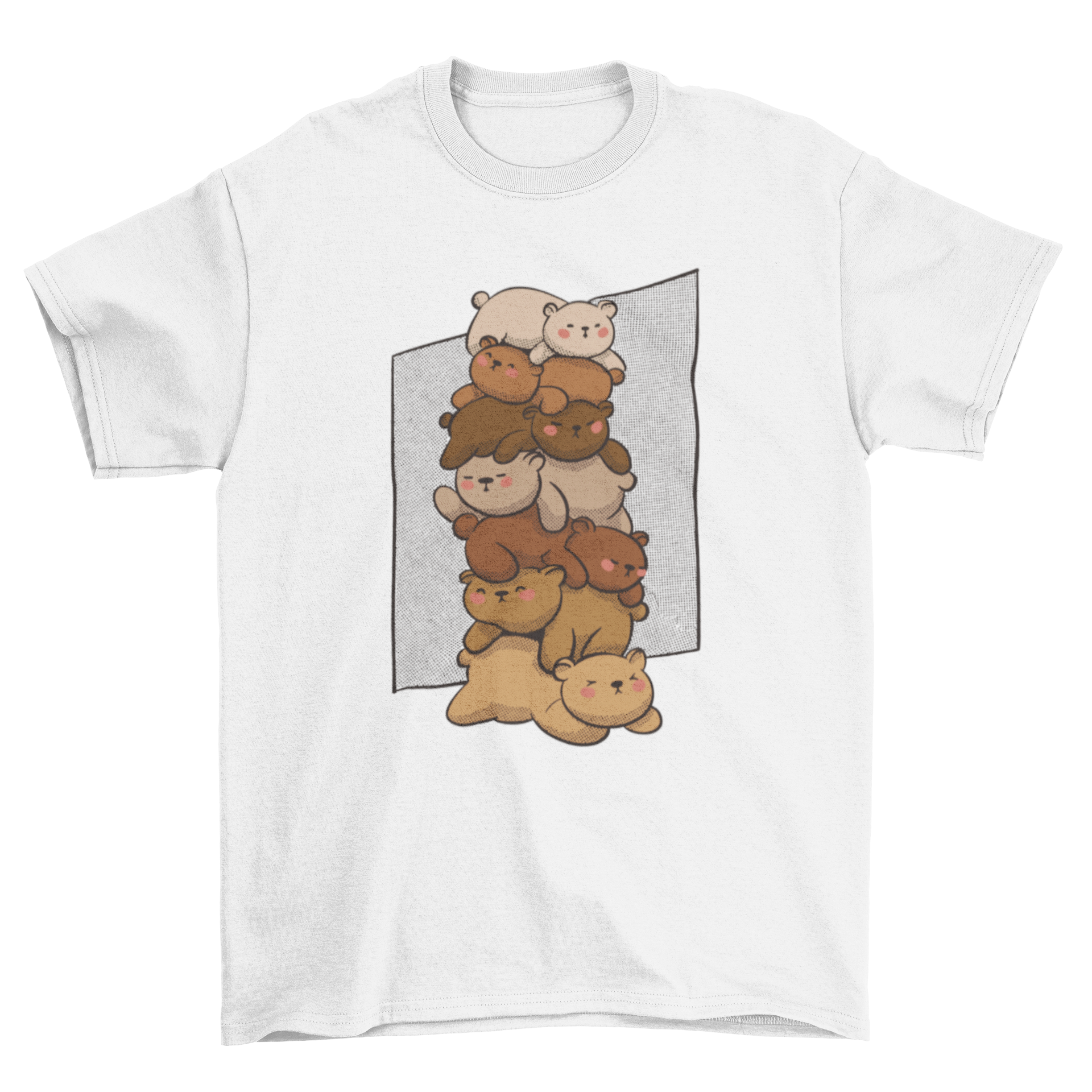 Introducing our Cute Sleeping Bears T-Shirt, a delightful addition to your wardrobe that combines comfort and charm. This t-shirt features an adorable design showcasing a pile of cute bears peacefully sleeping on top of each other, making it a perfect choice for animal lovers and those who appreciate whimsical fashion. Crafted from high-quality materials, this shirt ensures a soft touch against your skin, providing all-day comfort whether you're lounging at home or out with friends.