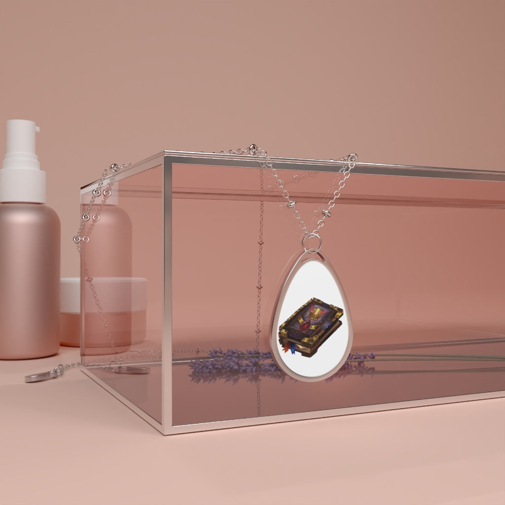 Introducing the captivating Death Spell Book Oval Necklace, a stunning piece of jewelry that combines elegance with a touch of mystique. This necklace is perfect for those who appreciate unique designs and want to express their individuality through their accessories. Crafted with care, this necklace features a beautifully shaped ellipse pendant that is sure to catch the eye of anyone who sees it.