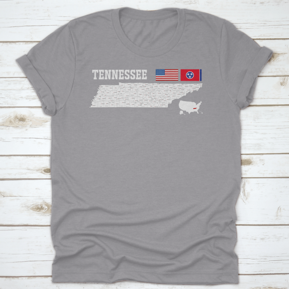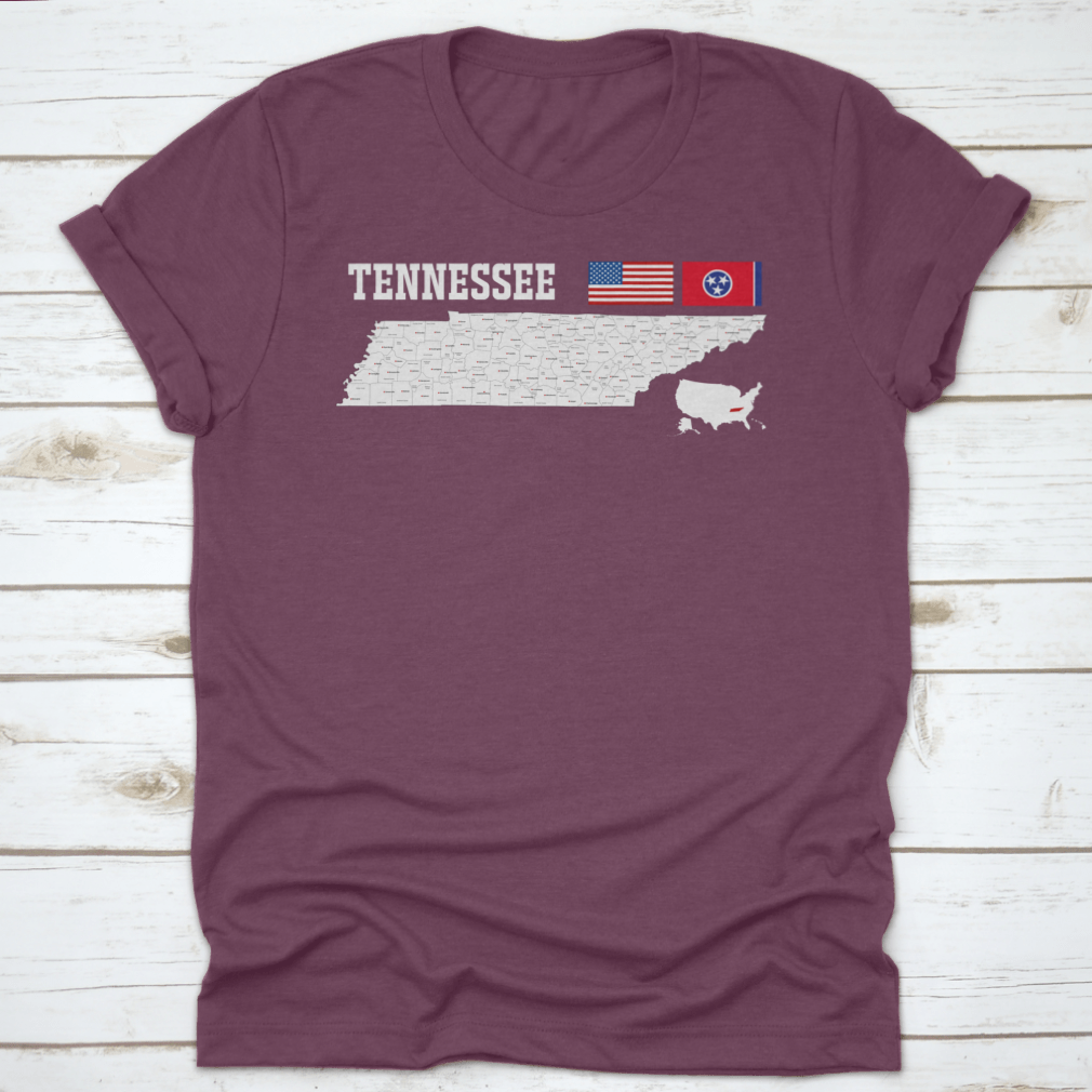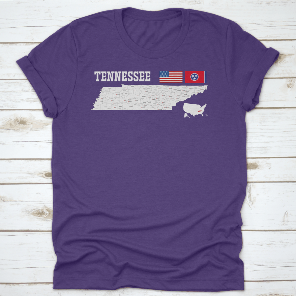 This product is not just a piece of clothing; it's a statement of pride for Tennessee enthusiasts. Whether you're a resident, a visitor, or simply someone who loves the state, this detailed map and flag design allows you to express your admiration in a stylish way. It's perfect for wearing to local events, festivals, or while exploring the beautiful landscapes of Tennessee.
