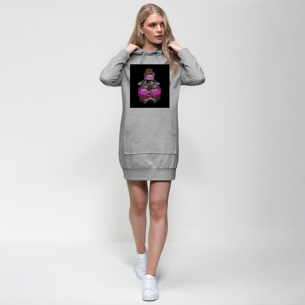 Dragon Potion Premium Adult Hoodie Dress featuring a relaxed fit, hood, and kangaroo pouch pocket in a stylish design.