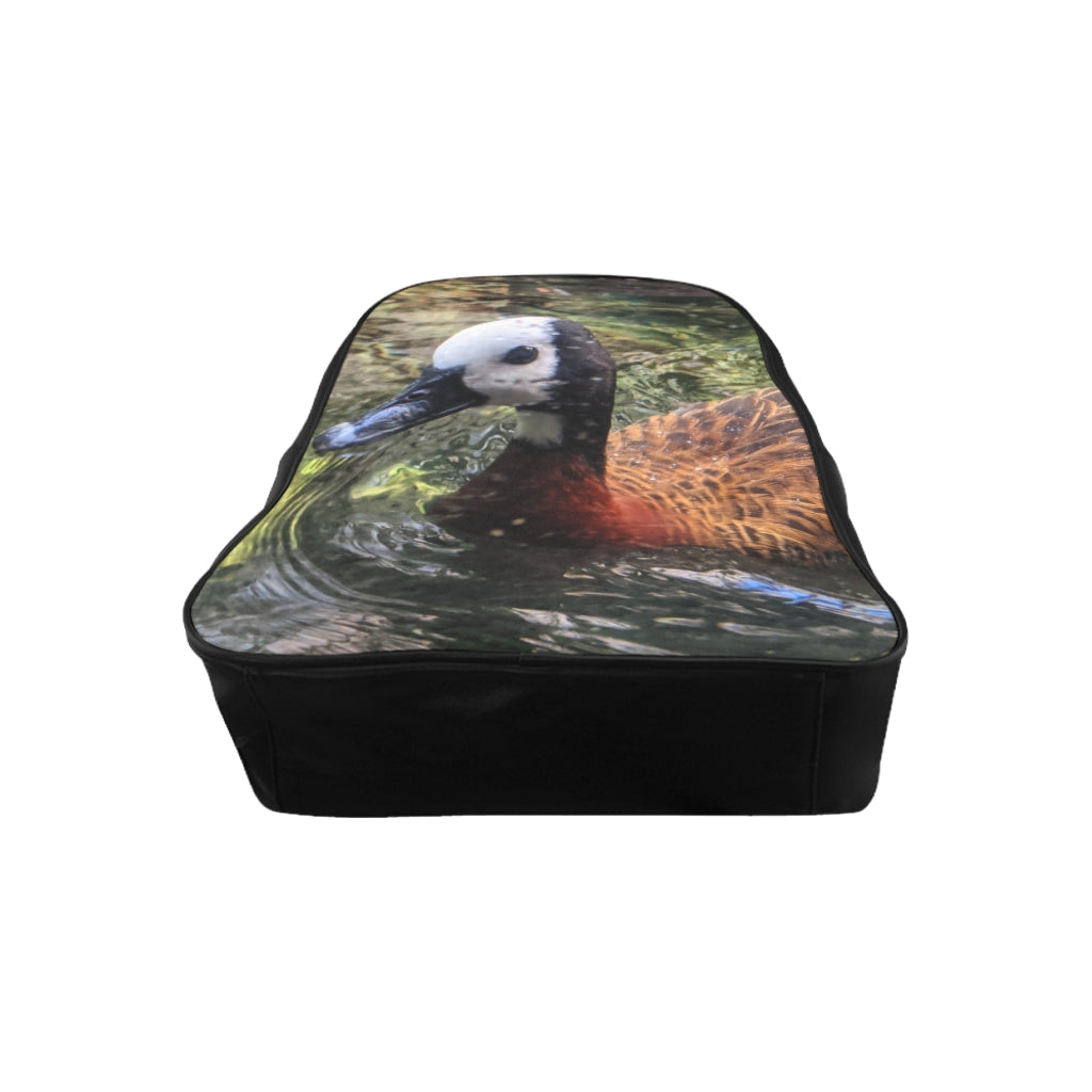 Featuring an eye-catching duck print, the Duck School Backpack stands out in a crowd. The unique design makes it not only a practical item but also a desirable style accessory. With its vibrant colors and quality print, this backpack is sure to turn heads and make a fashion statement wherever you go.