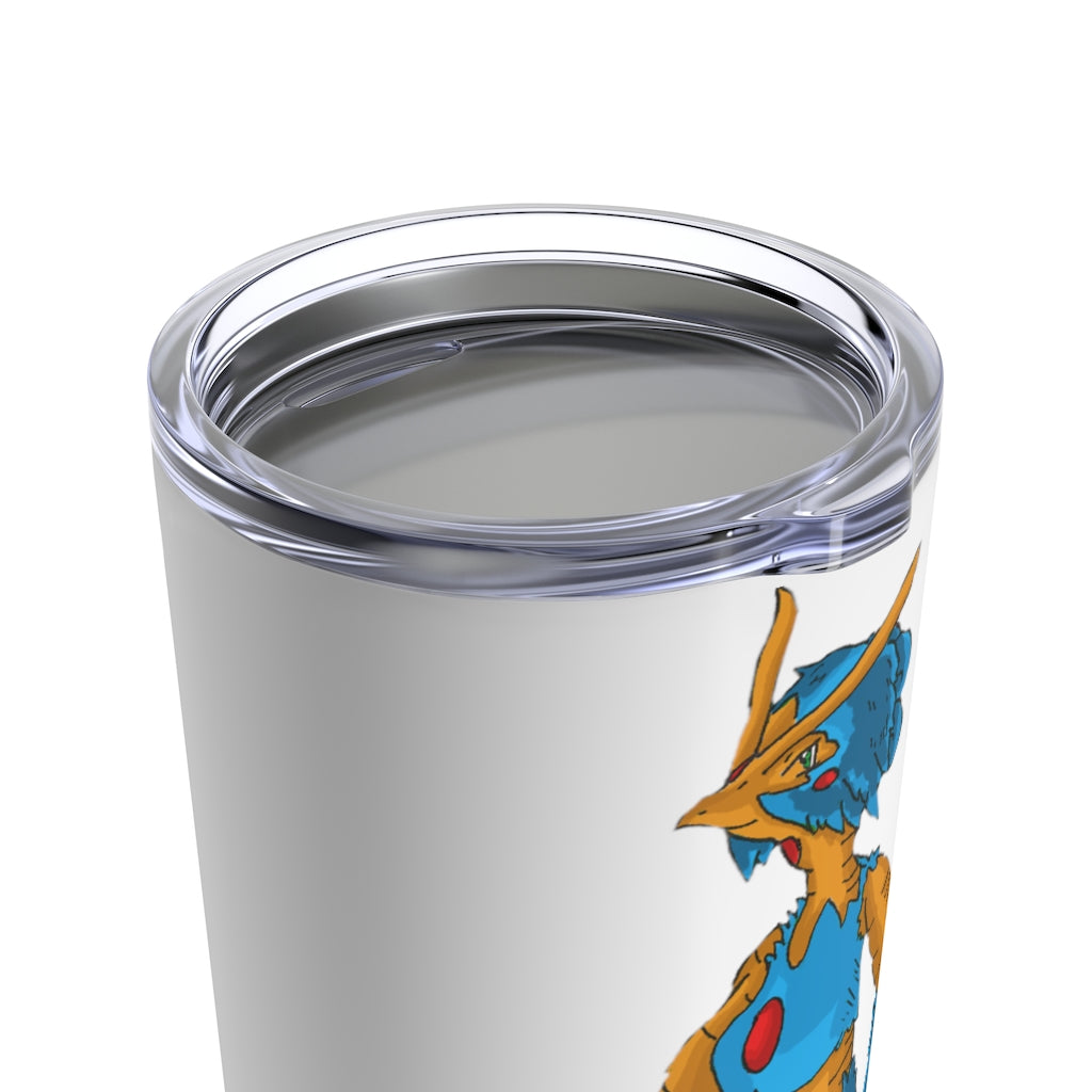 Empress Tumbler 20oz in stainless steel with a see-thru plastic lid, showcasing its sleek design and rounded corners.