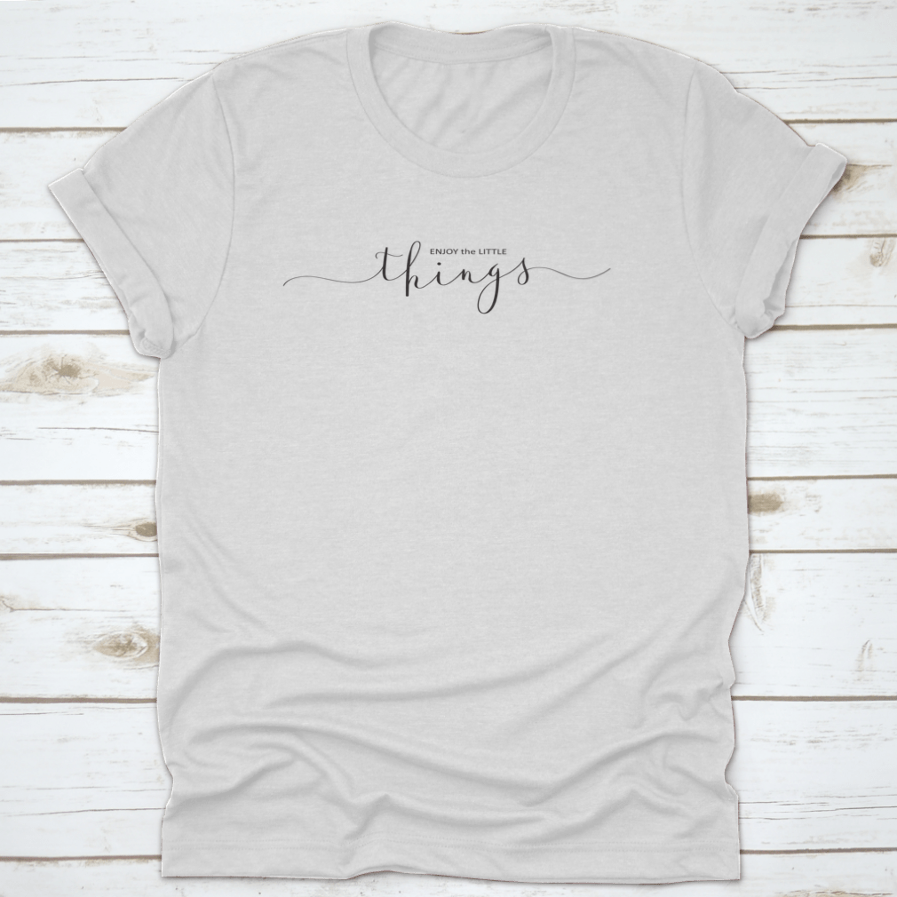 A soft cotton brush featuring the motivational quote 'Enjoy The Little Things', showcasing a classic fit and midweight fabric.
