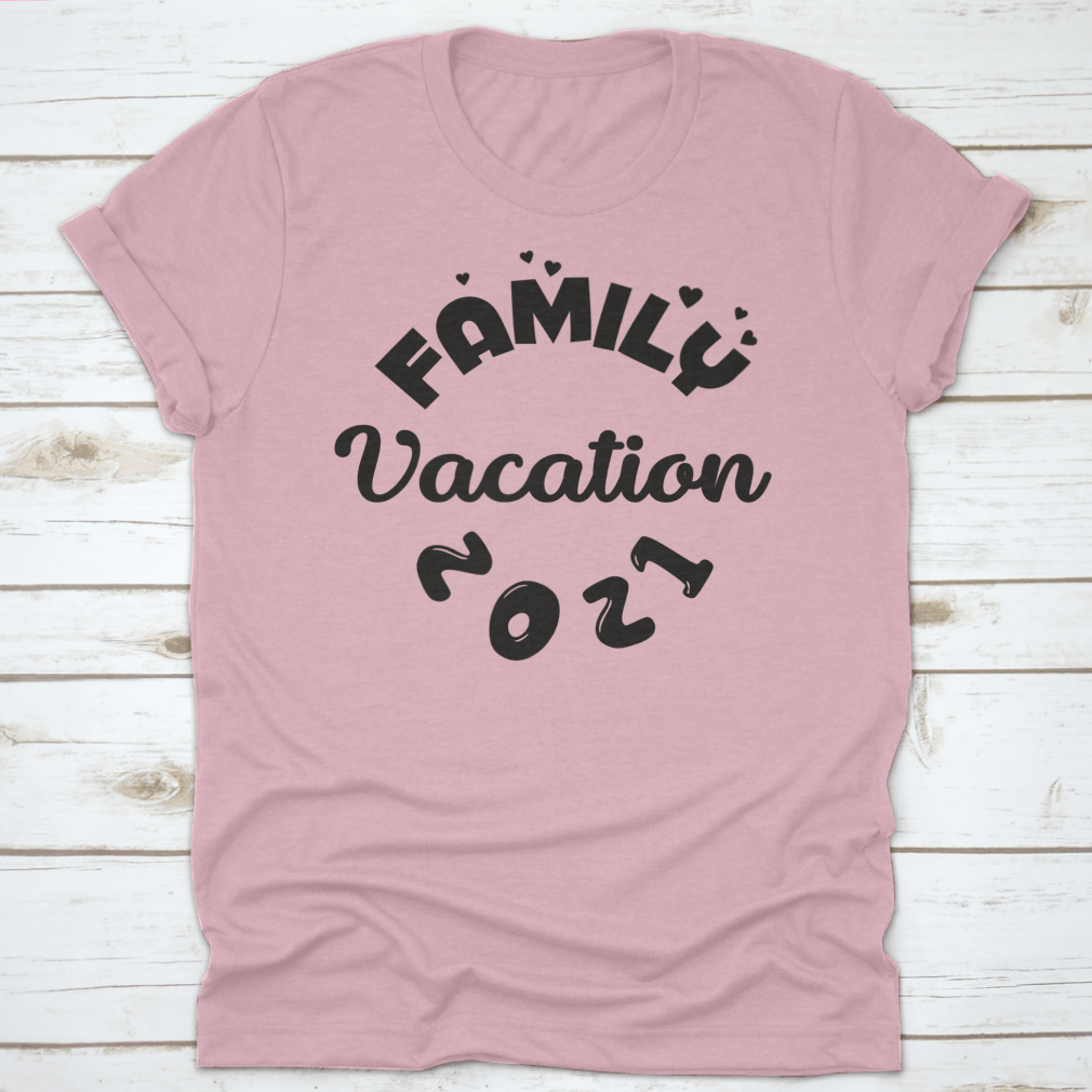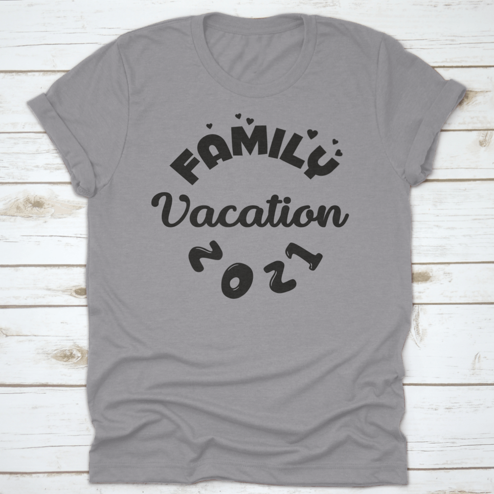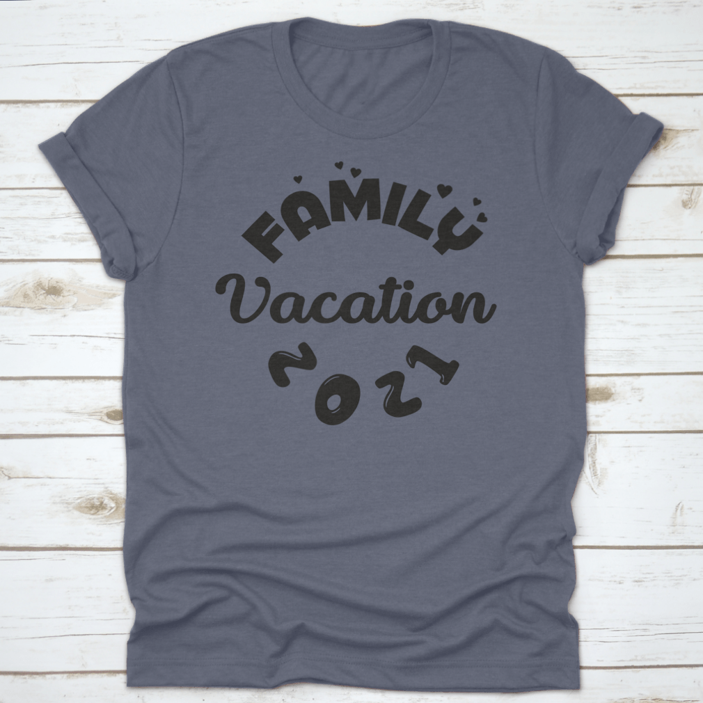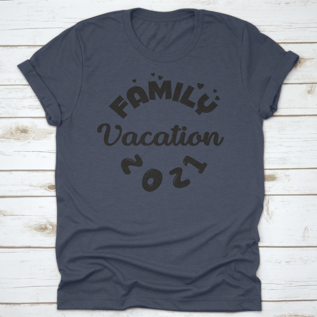 Family Vacation 2021 motivational quote fashion shirt displayed on a neutral background, showcasing its soft cotton fabric and classic fit.