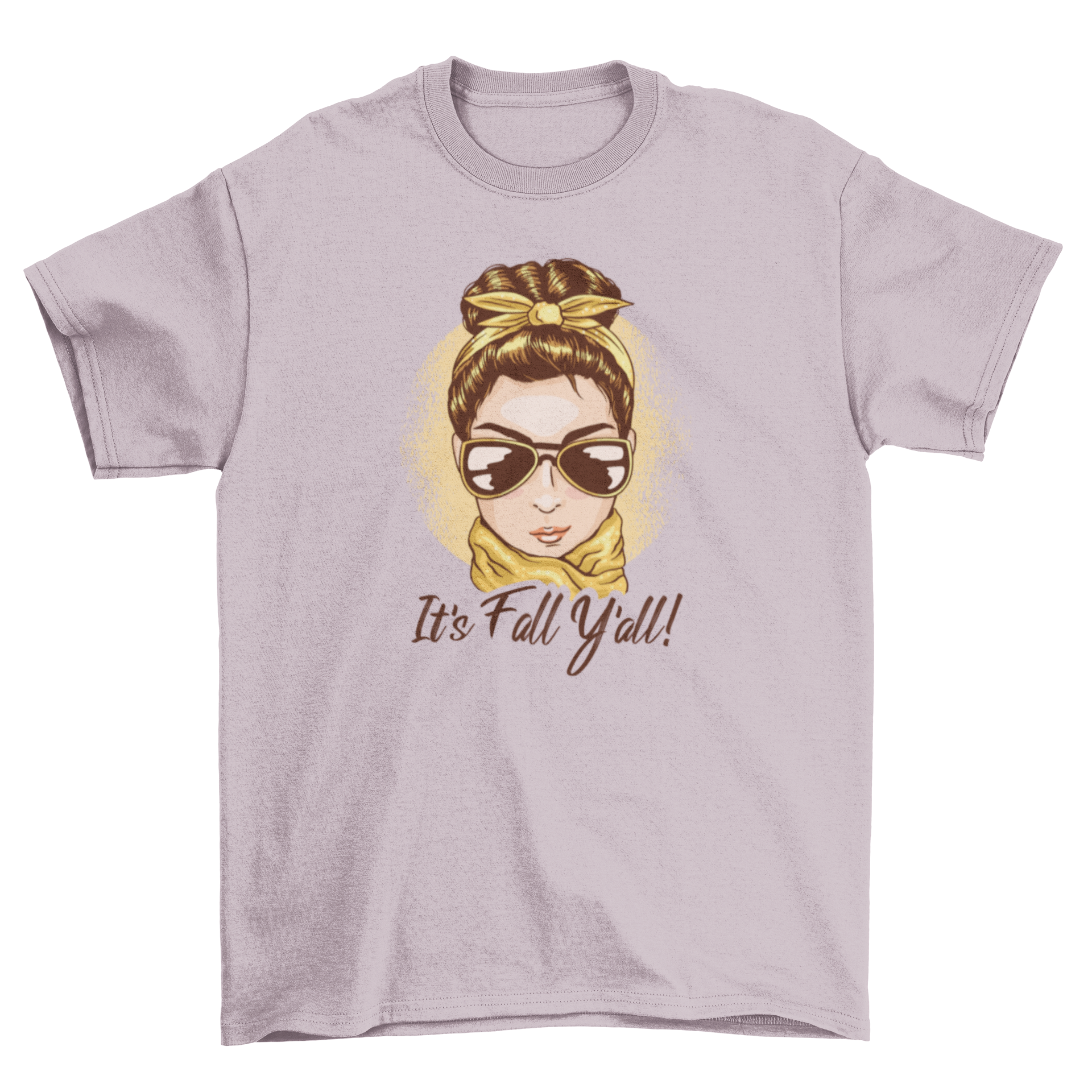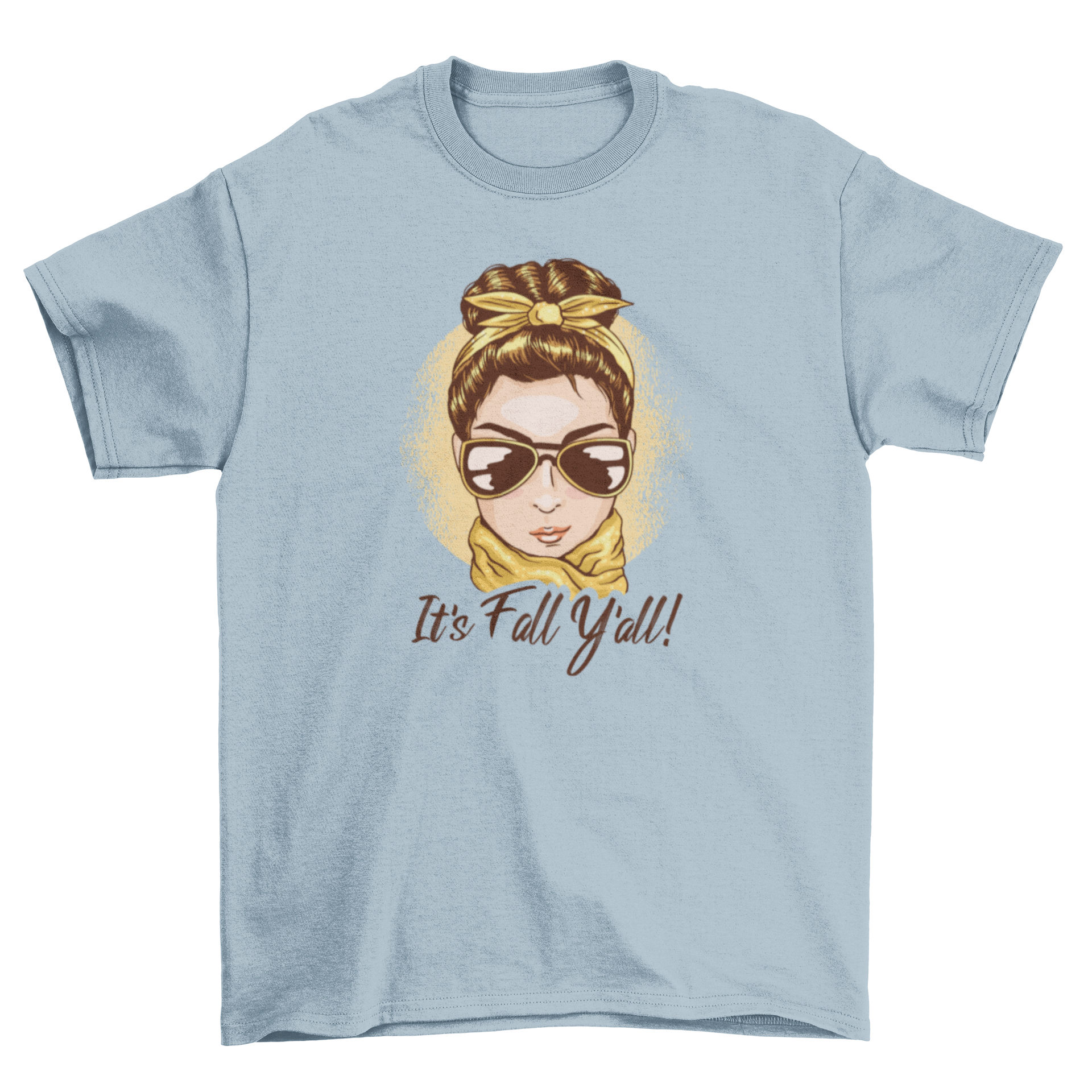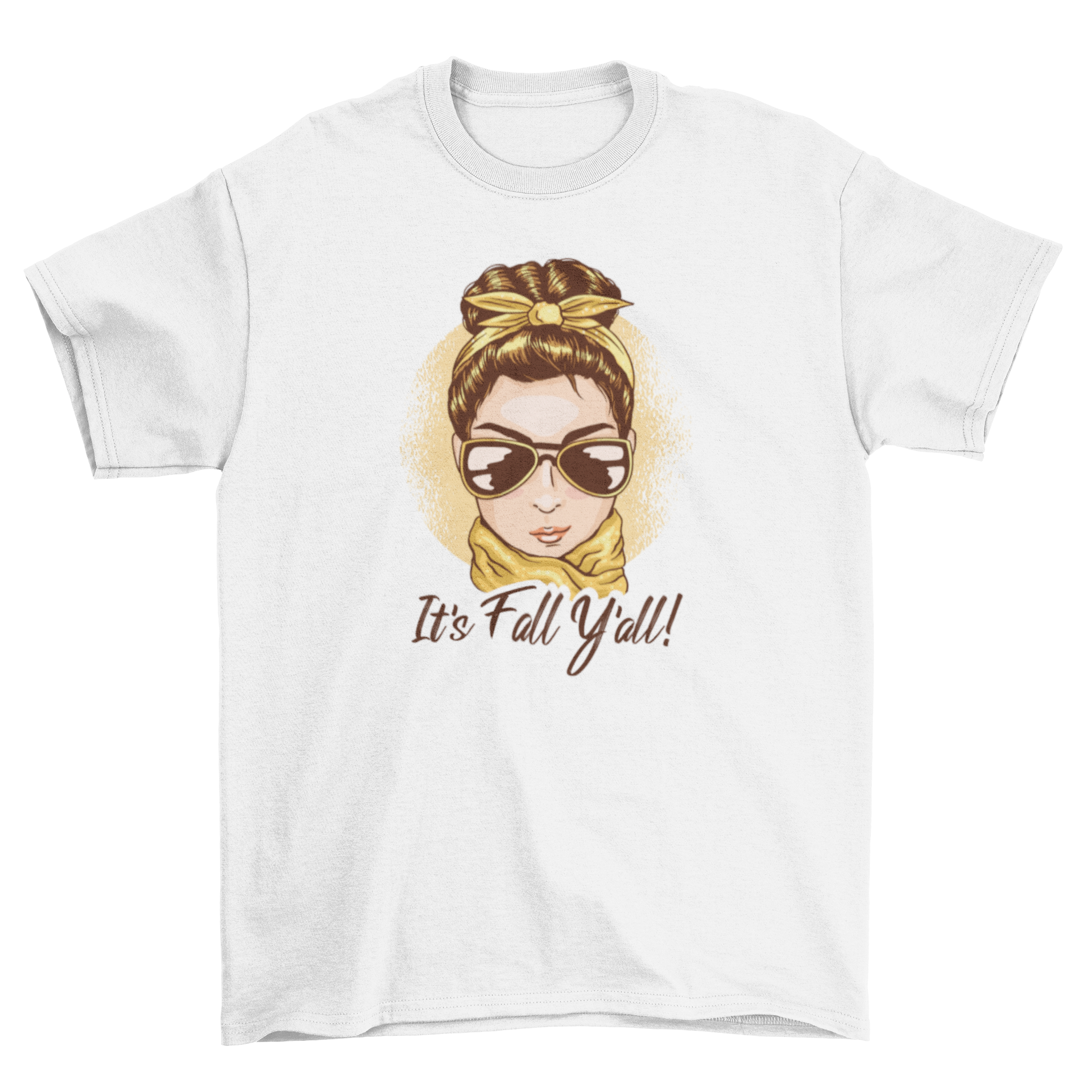 Introducing our Fashion Woman Fall Season T-Shirt, a must-have addition to your autumn wardrobe. This stylish t-shirt showcases a unique design featuring a fashionable woman wearing sunglasses and a scarf, perfectly capturing the essence of fall. The playful quote, "It's fall y'all," adds a fun touch, making it an ideal choice for those who love to express their personality through their clothing.