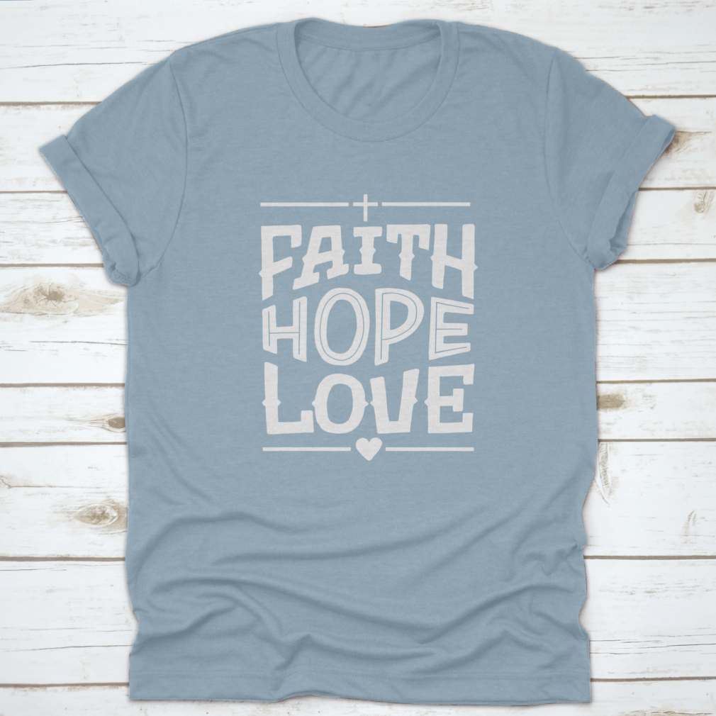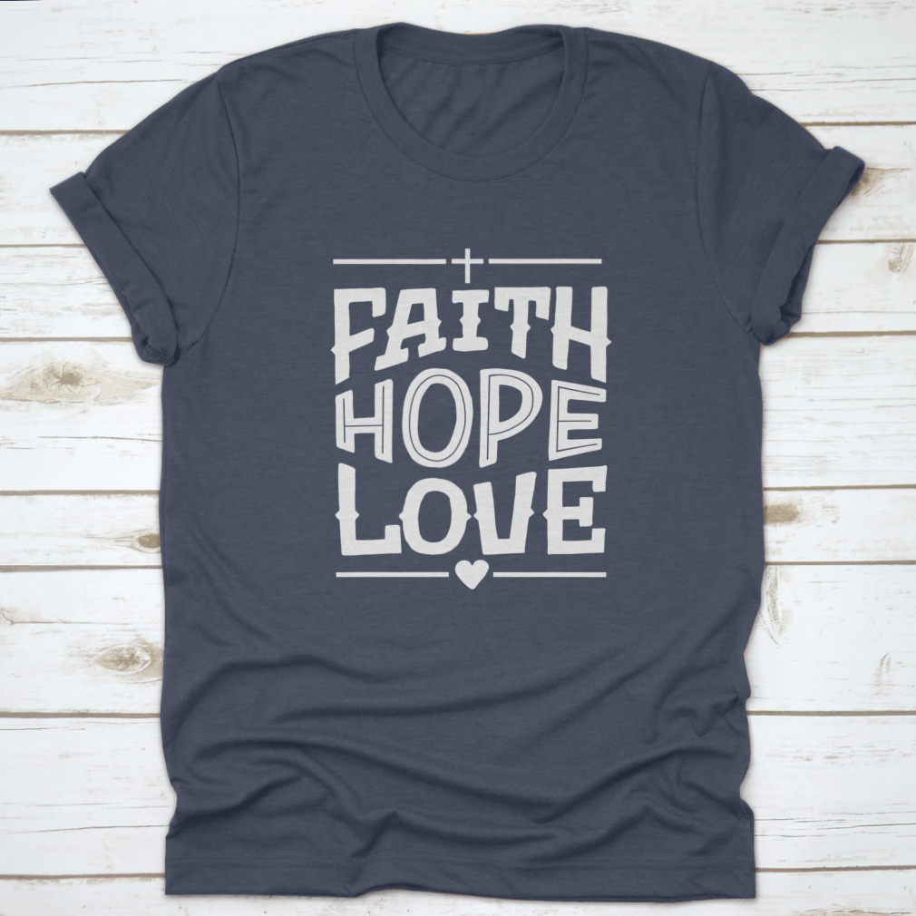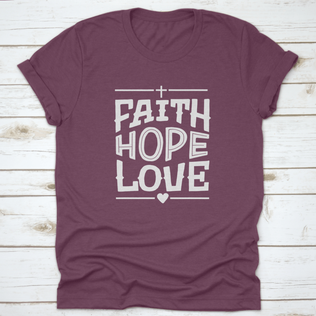Introducing the Fath, Hope, Love With Cross And Heart Inspirational Quote Design, a unique piece that combines style and spirituality. Made from high-quality materials, this product is perfect for those who want to express their faith while enjoying comfort and durability. Whether you're wearing it for a casual outing or a spiritual gathering, this design serves as a reminder of hope and love in your daily life.