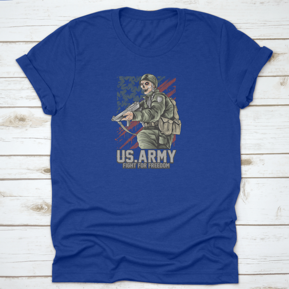 A patriotic Fight For The Country Army T-Shirt made from 100% cotton, featuring a classic fit and durable fabric, perfect for showing national pride.