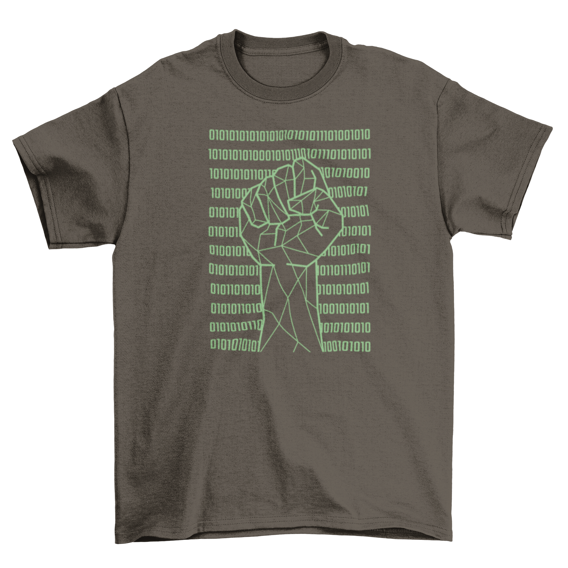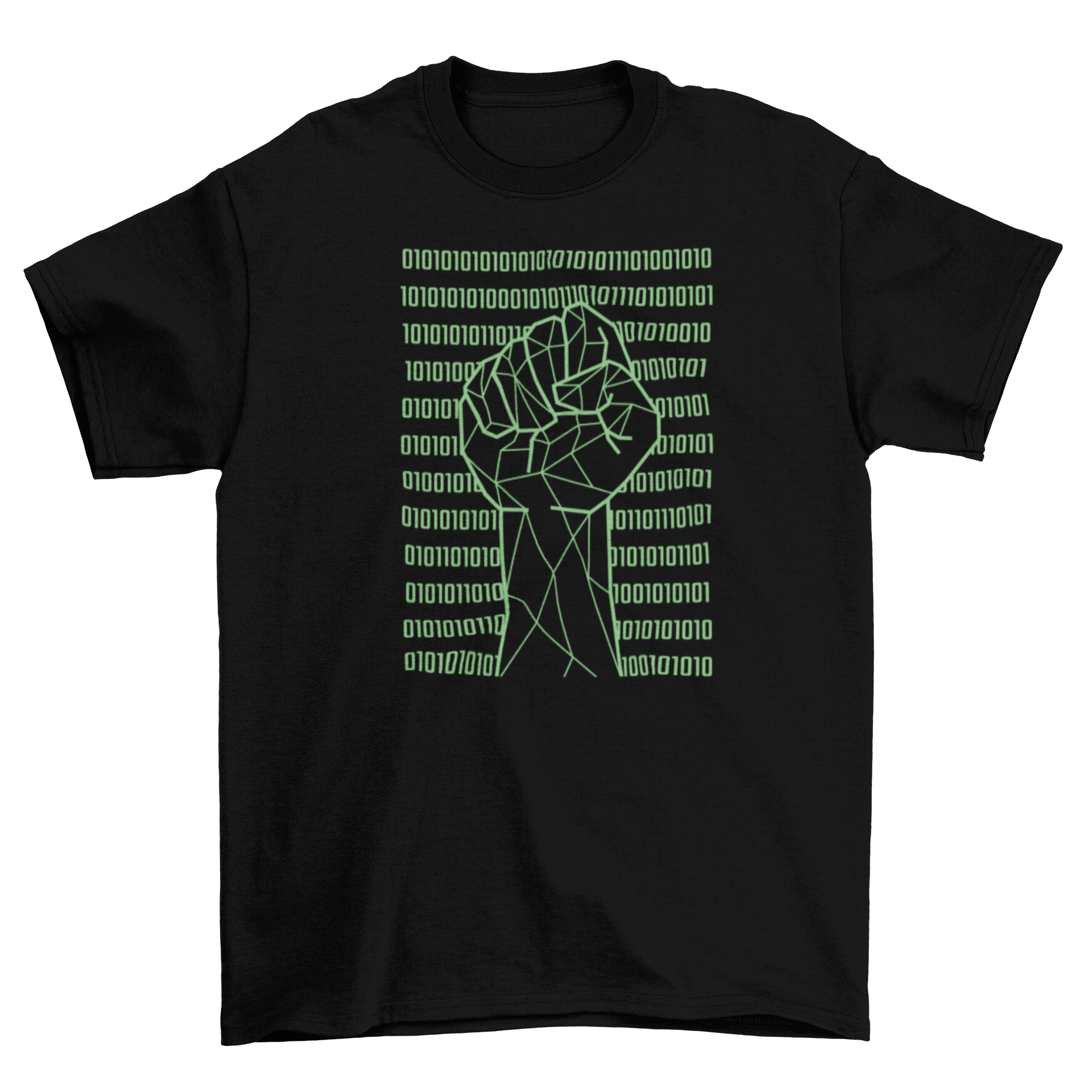 The striking design of the Fist Over Binary Code T-Shirt is perfect for those who want to showcase their love for technology in a stylish way. The bold graphic of the fist represents empowerment and the binary code signifies the foundation of all digital technology. This t-shirt is ideal for tech enthusiasts, programmers, and anyone who appreciates the art of coding.