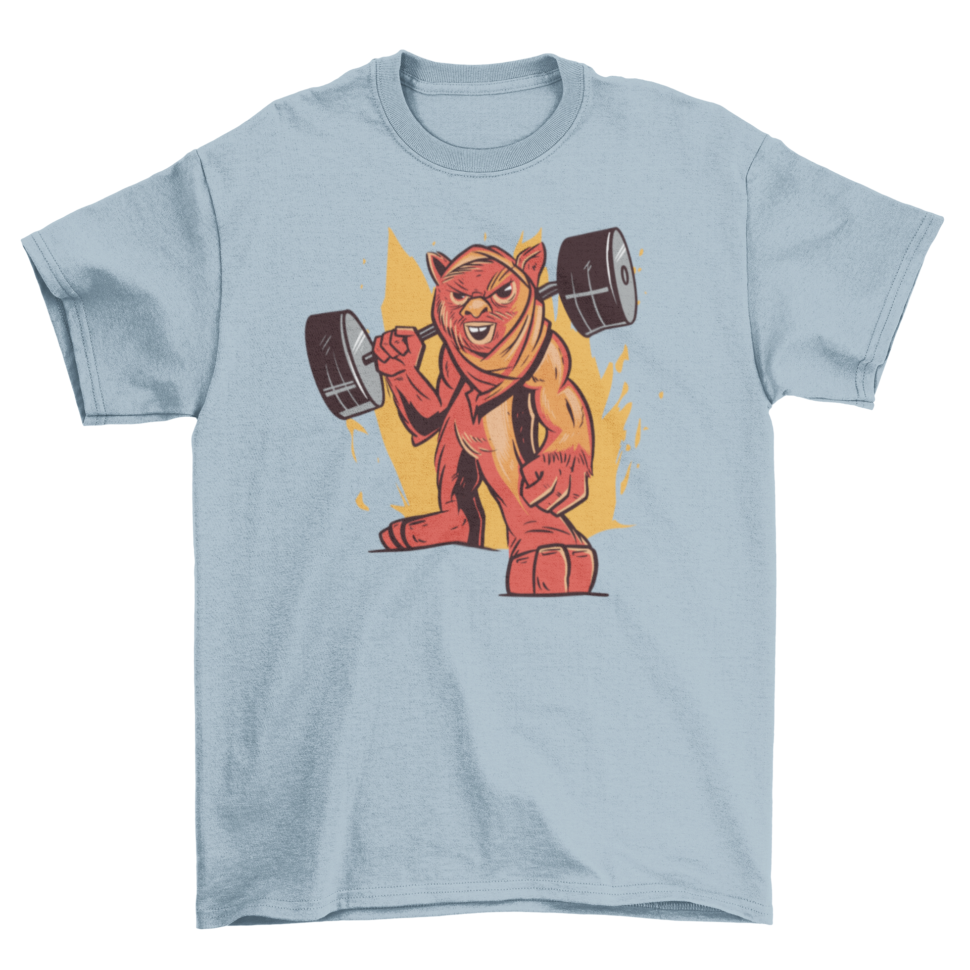 The standout feature of this t-shirt is its unique design. The representation of a creature weightlifting adds a fun and quirky element to your fitness attire. It's not just a t-shirt; it's a statement piece that reflects your passion for fitness and weightlifting. Wear it proudly as you work towards your fitness goals.
