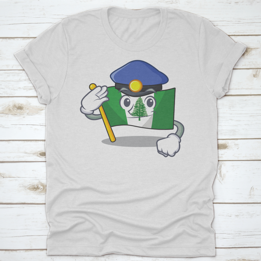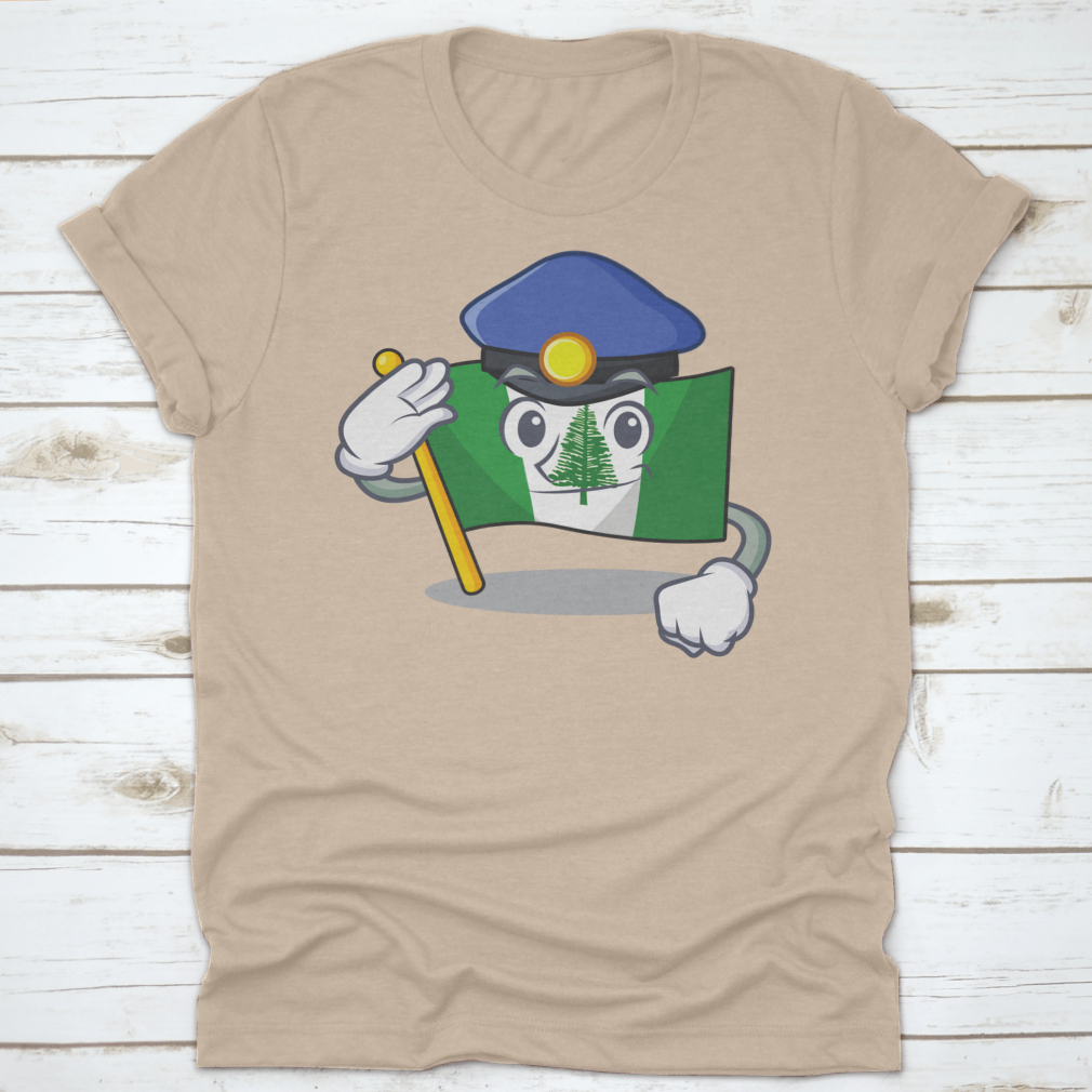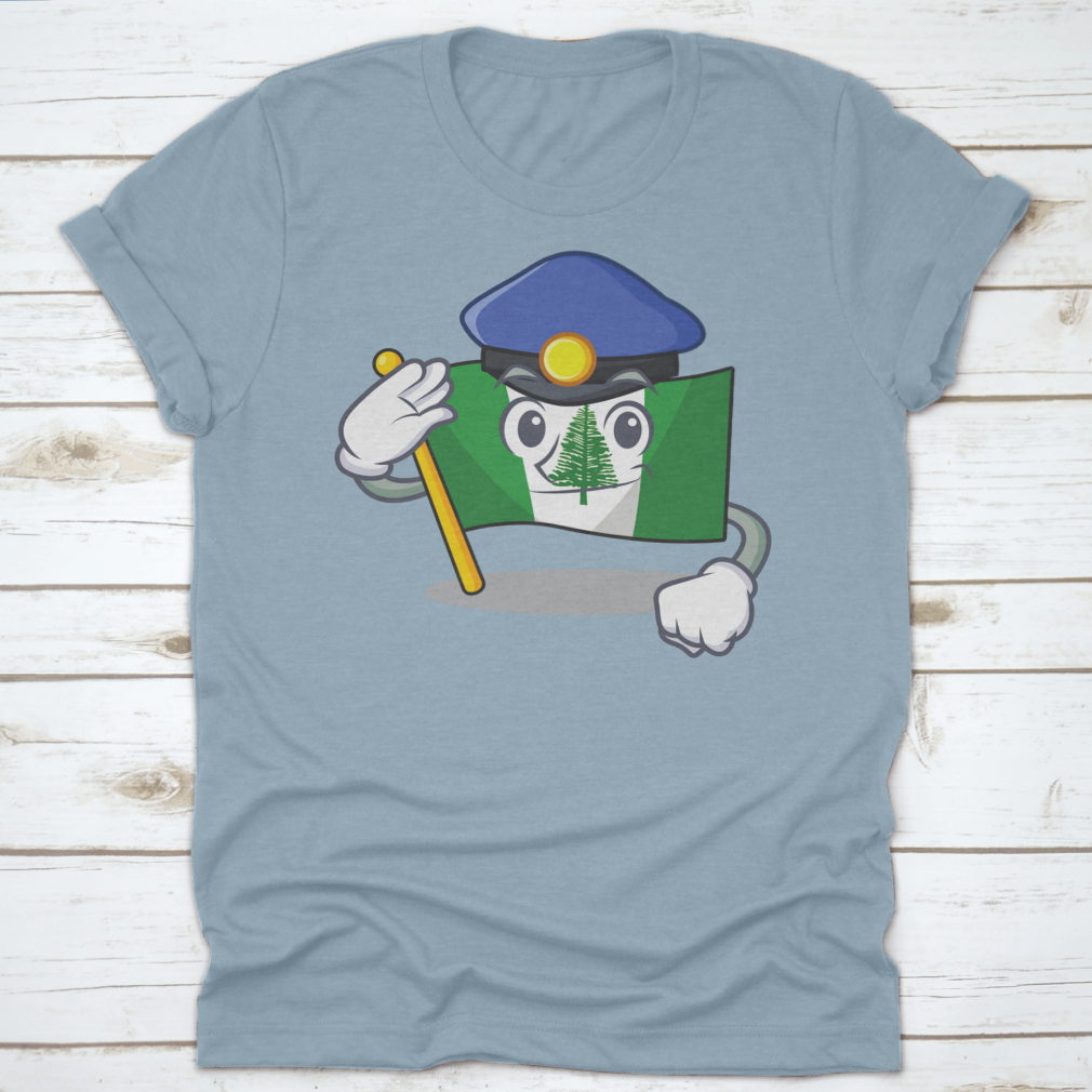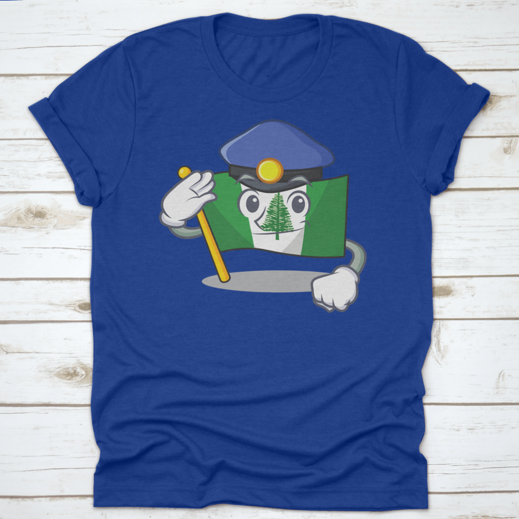 Flag Norfolk Island t-shirt featuring a cartoon mascot dressed as a police officer, made from 100% cotton for comfort.