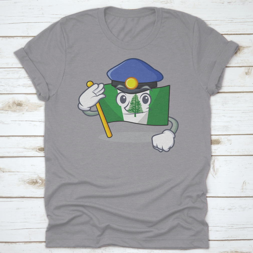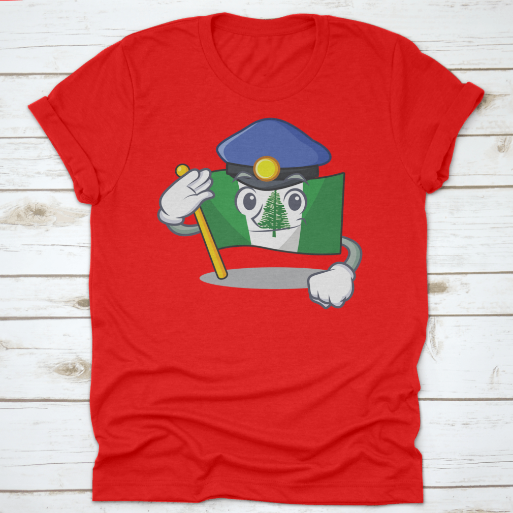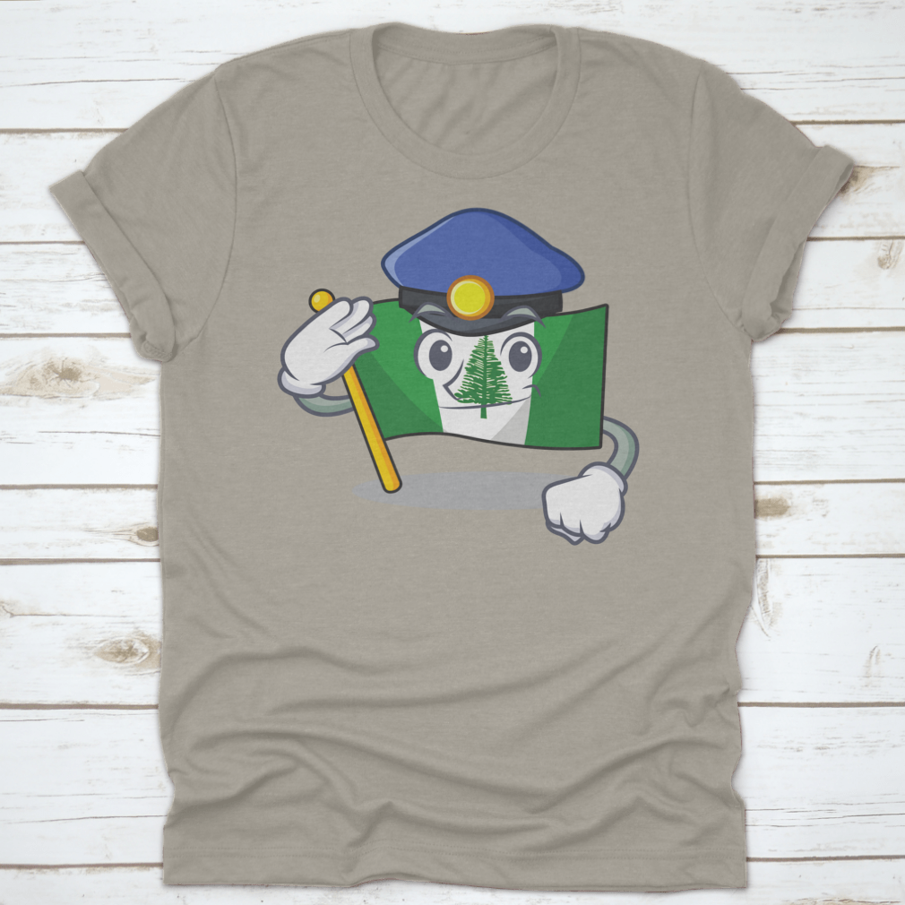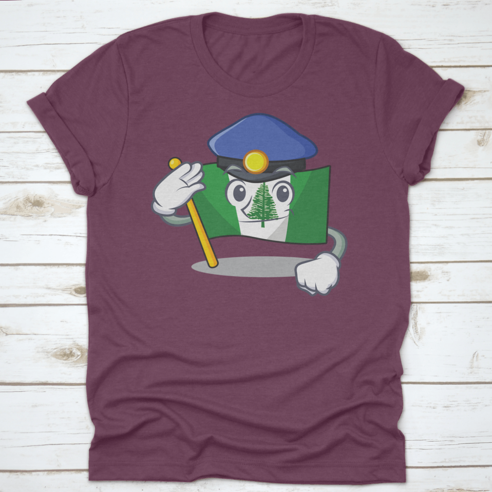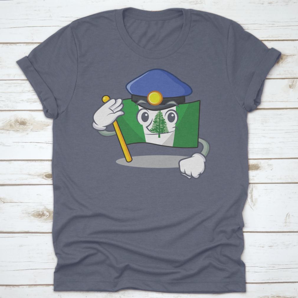 Flag Norfolk Island t-shirt featuring a cartoon mascot dressed as a police officer, made from 100% cotton for comfort.