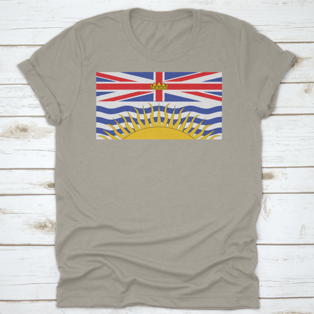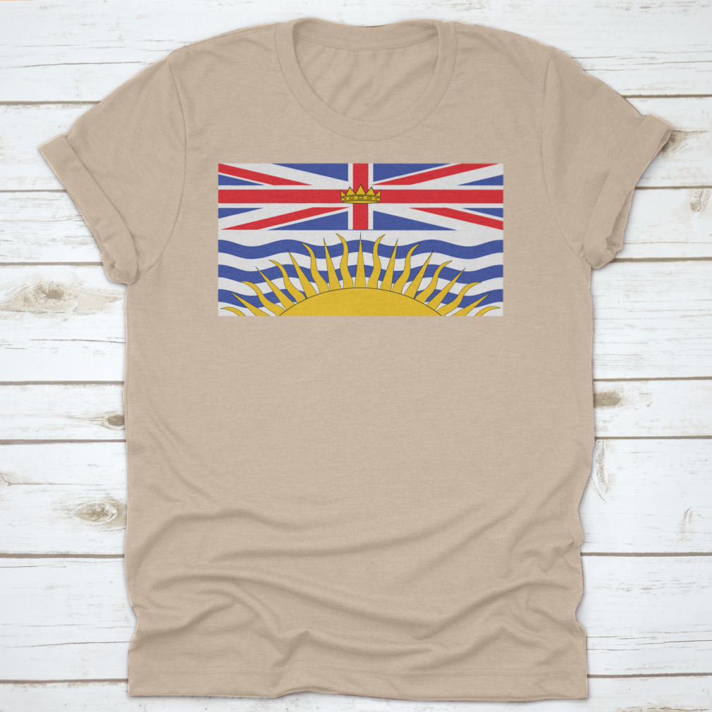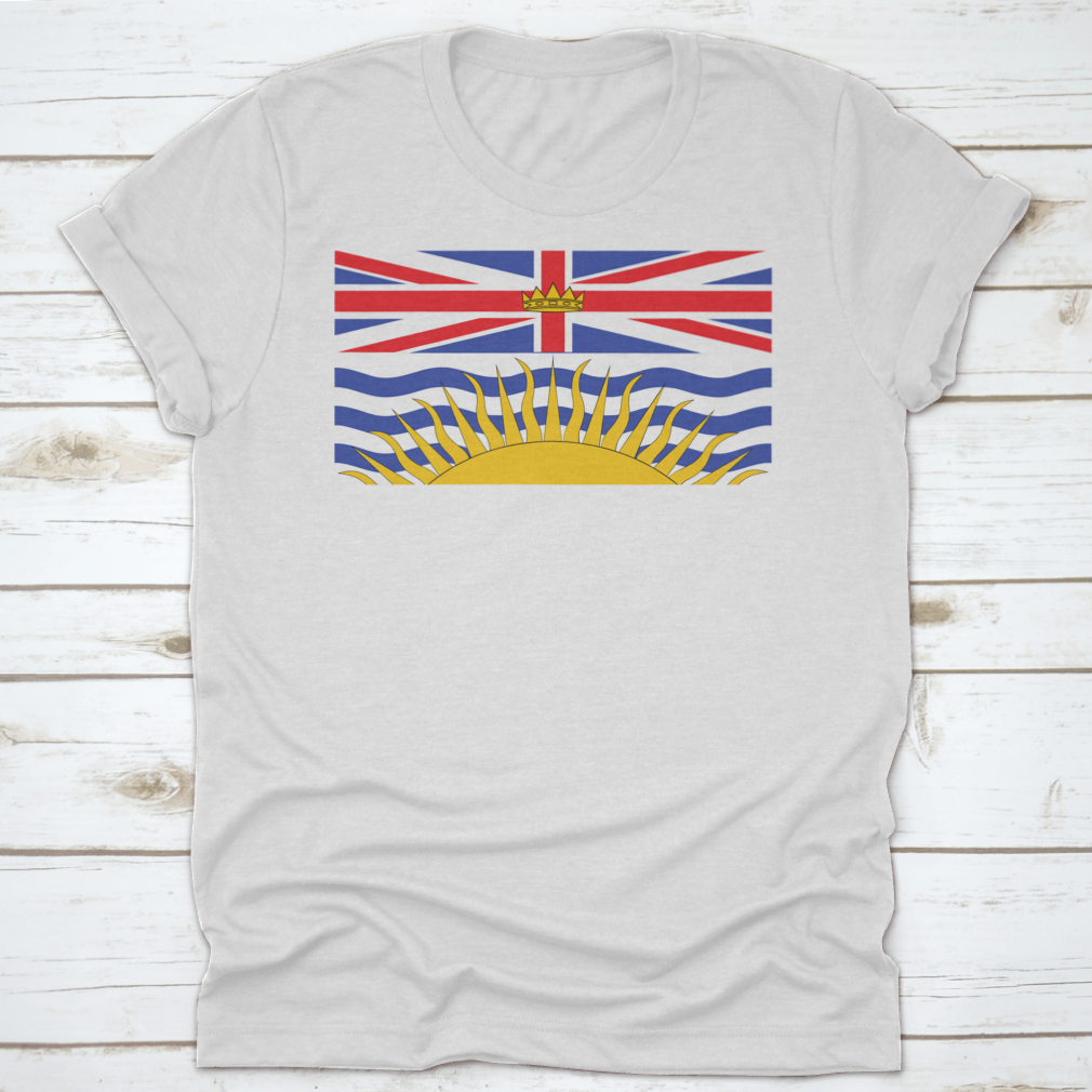 The flag features a unique design that incorporates elements symbolizing the province's history and geography. The upper part of the flag showcases the Union Jack, representing British Columbia's ties to the United Kingdom. Below it, the stylized image of a golden sun rising over the Pacific Ocean is depicted, symbolizing hope and prosperity. The blue and white waves represent the ocean and the province's coastal location.