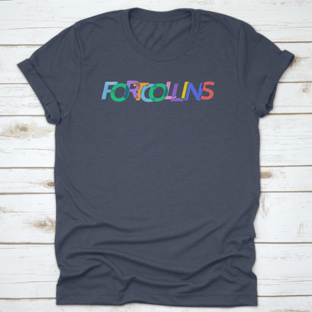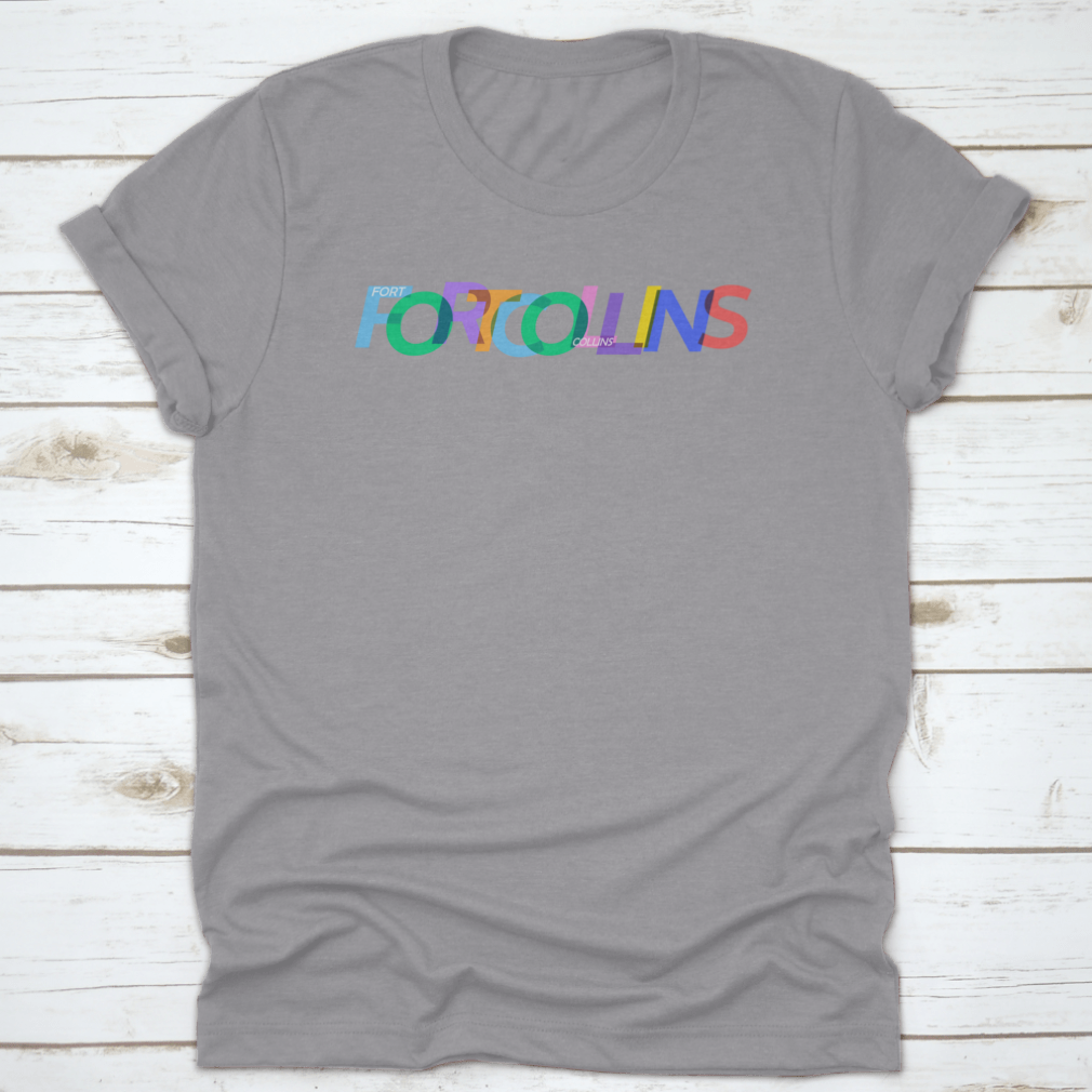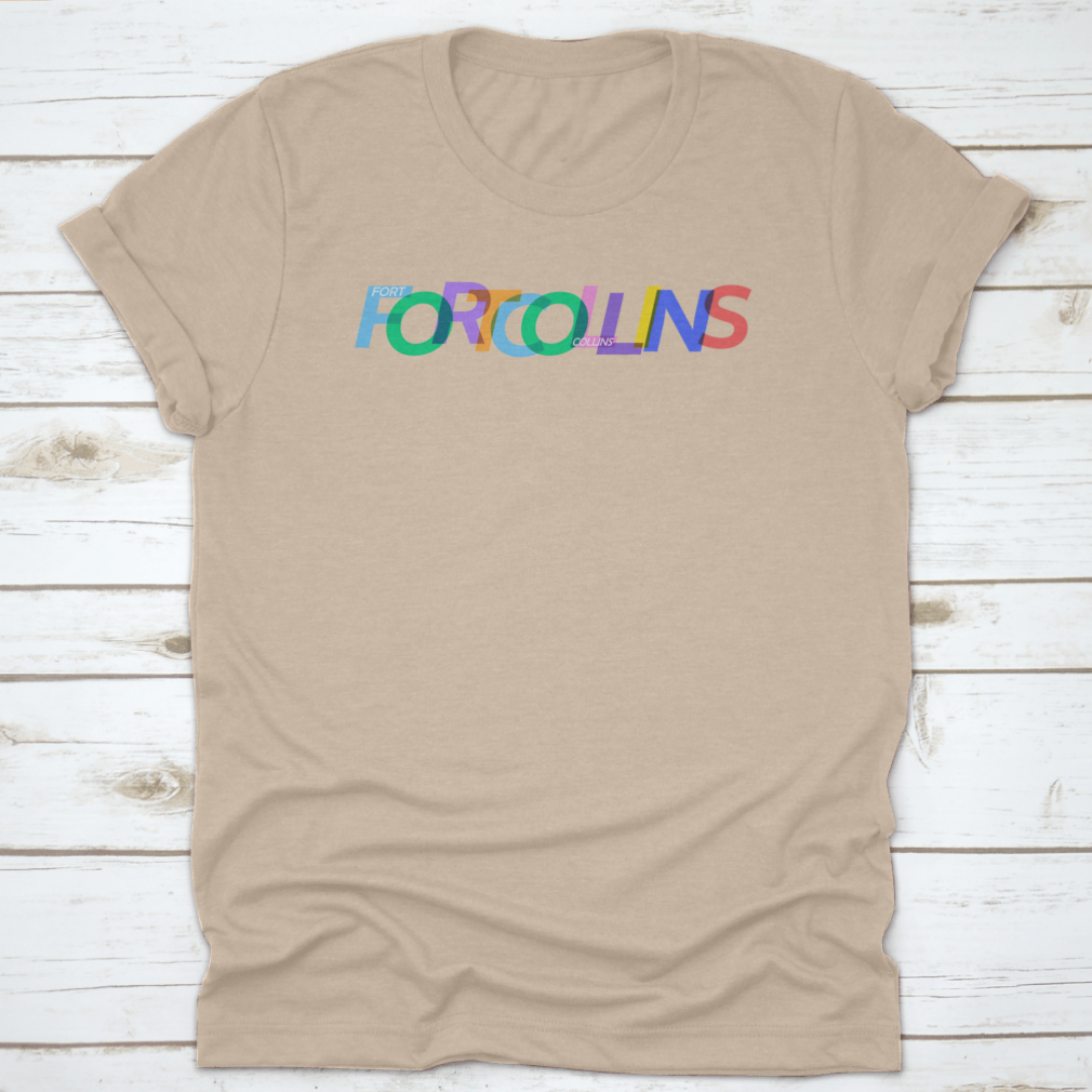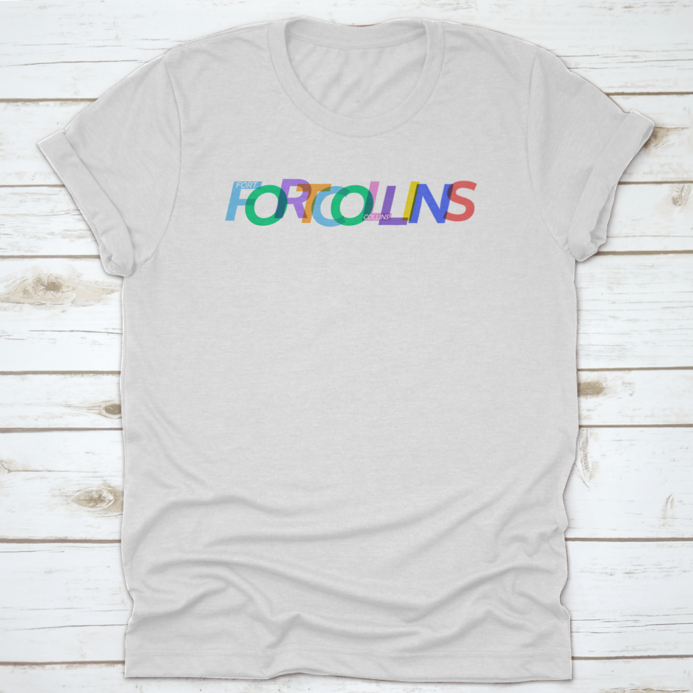 A stylish white T-shirt featuring the name 'Fort Collins' prominently displayed, perfect for casual wear.