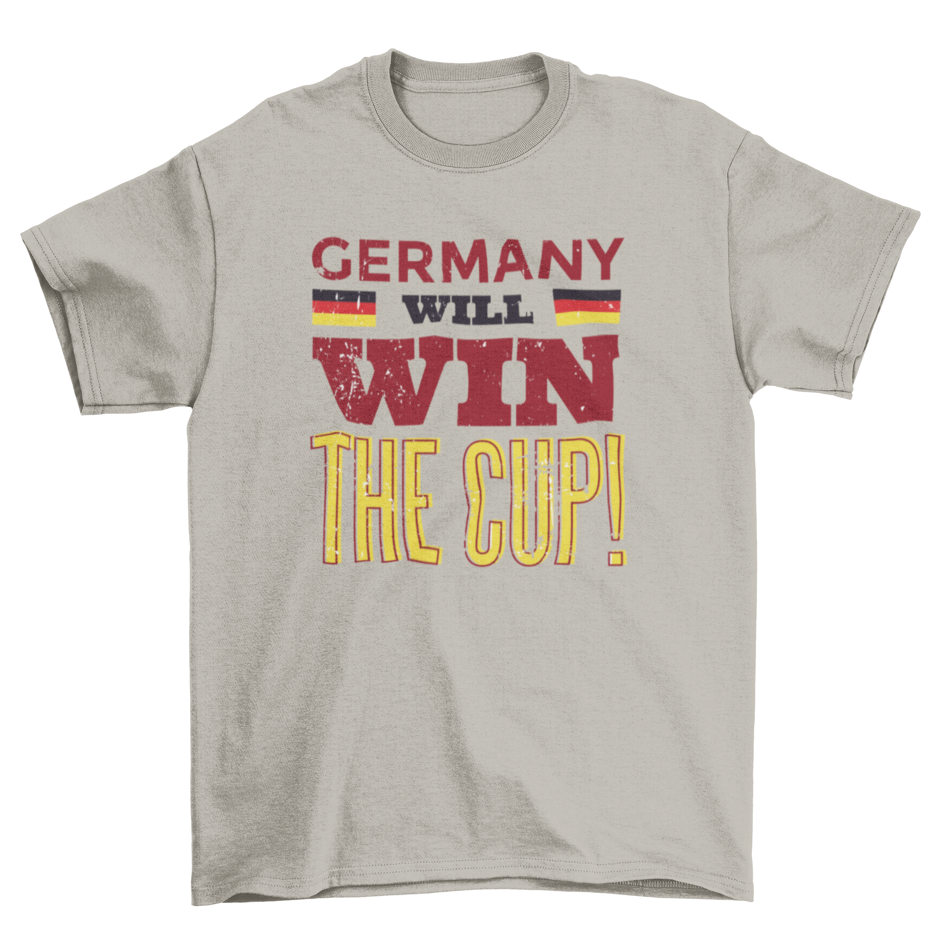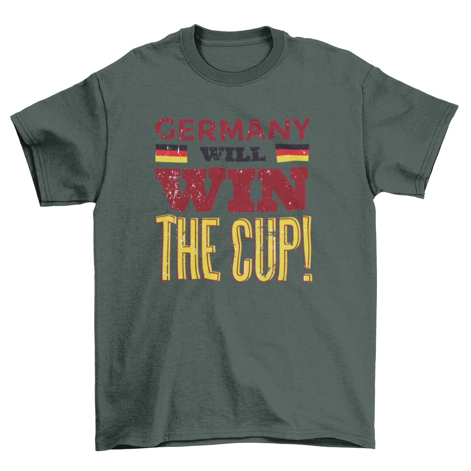Football Fans German Flag t-shirt featuring the quote 'Germany will win the cup' with two German flags.