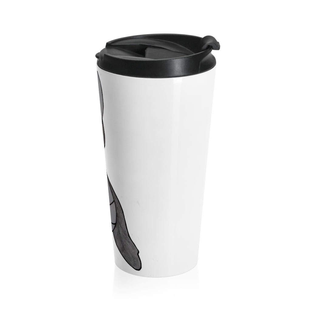 Equipped with a black plastic lid, this travel mug is designed for convenience. The lid helps prevent spills and keeps your drinks secure while you're on the move. Whether you're rushing to catch a train or enjoying a leisurely walk, you can trust that your beverage will stay contained.