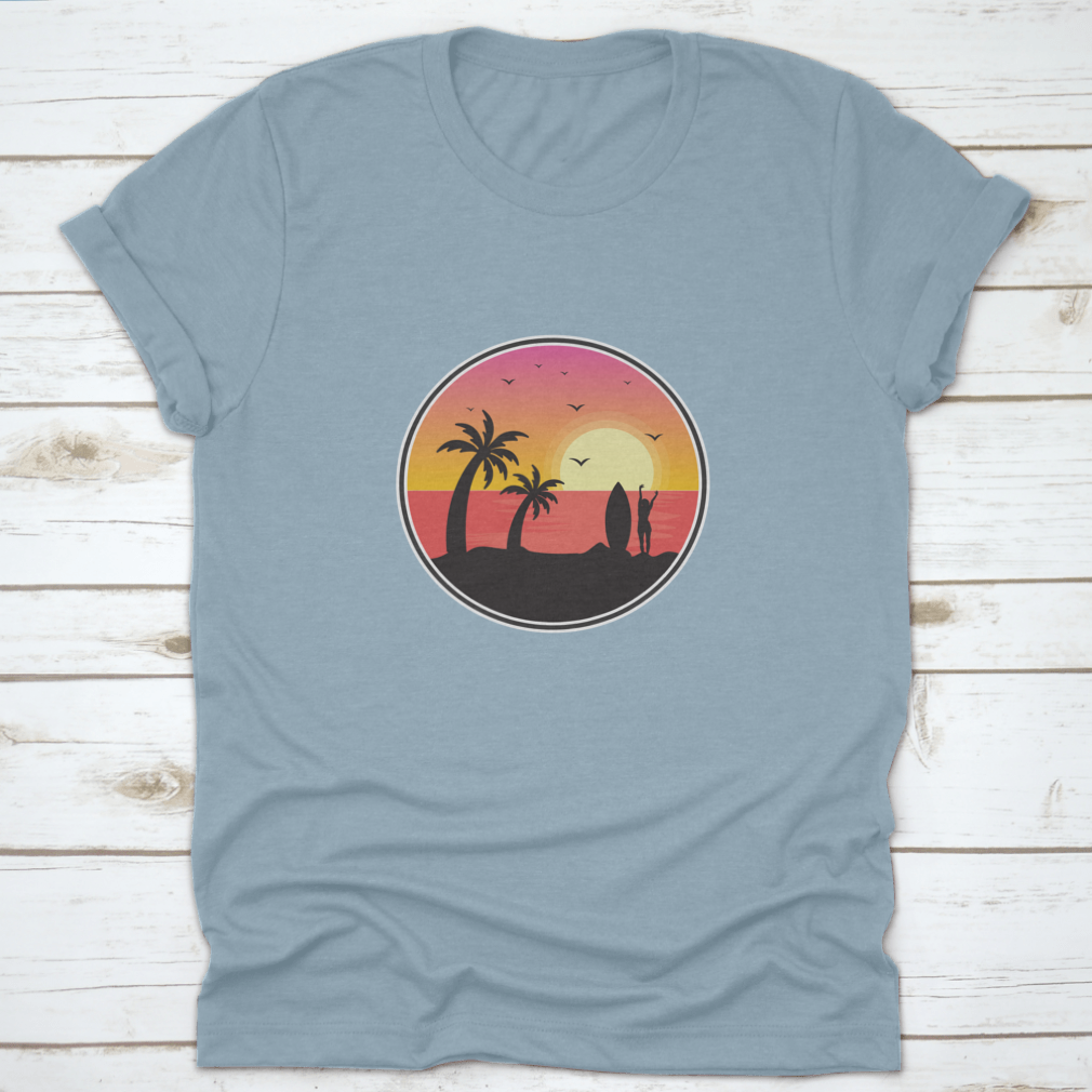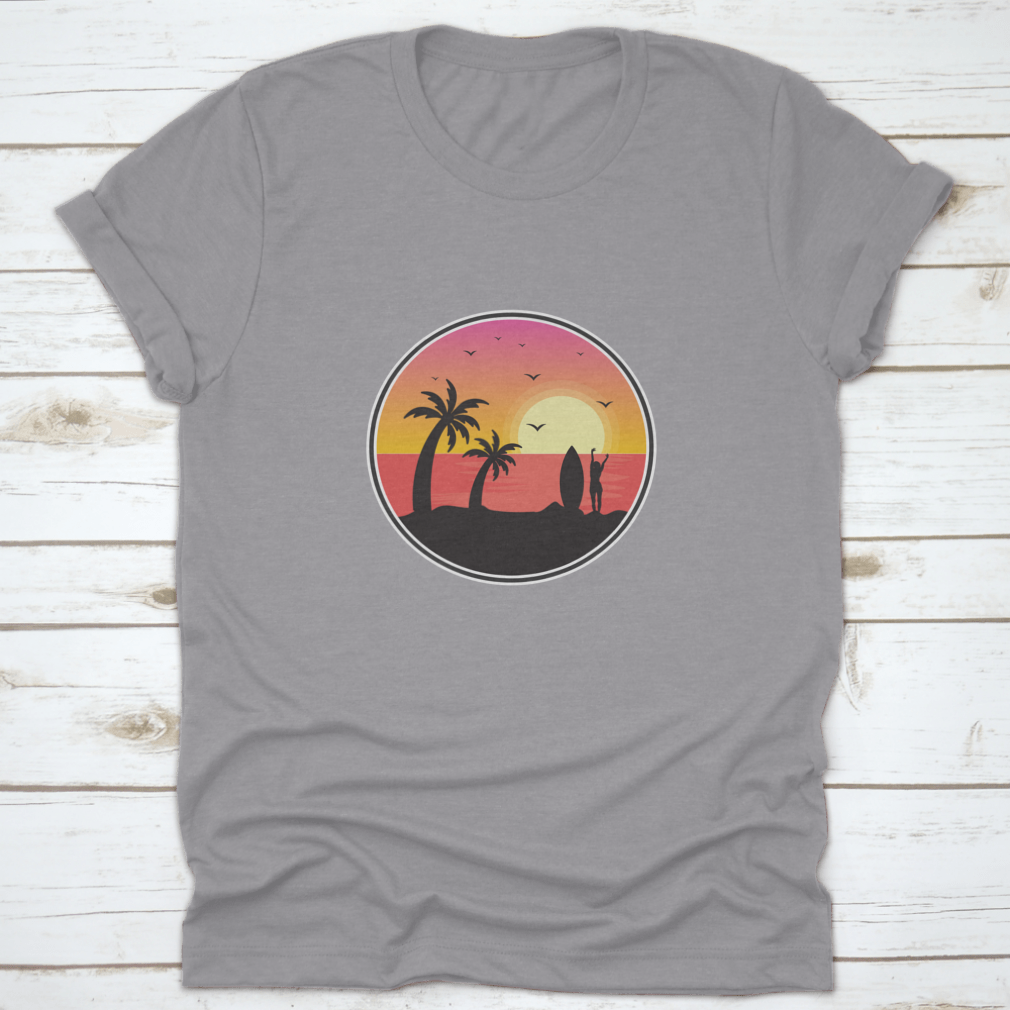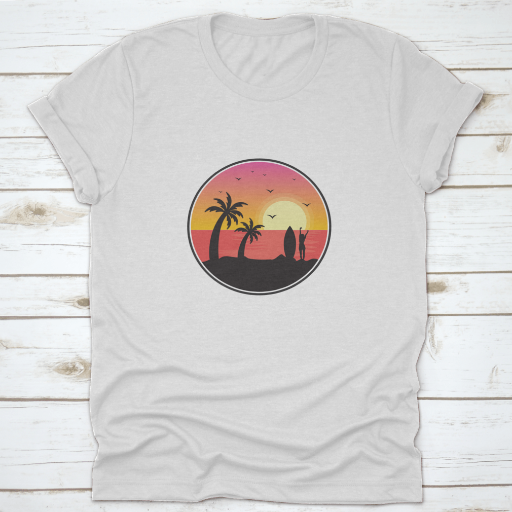 Introducing our stunning Girl Surfer With Sunset View t-shirt, a perfect blend of style and comfort for beach lovers and surfers alike. This unique design captures the essence of Florida's beautiful beaches, featuring a breathtaking sunset view, graceful birds, and iconic palm trees. Made from high-quality materials, this t-shirt is not just a fashion statement but also a tribute to the vibrant beach culture.