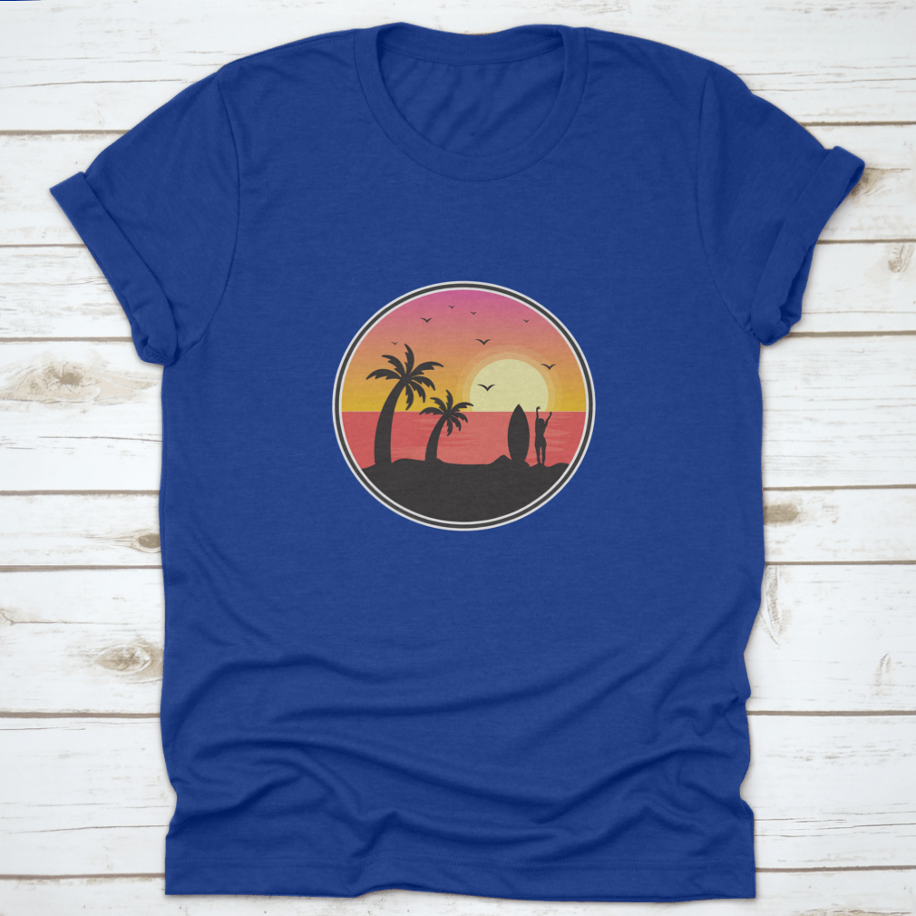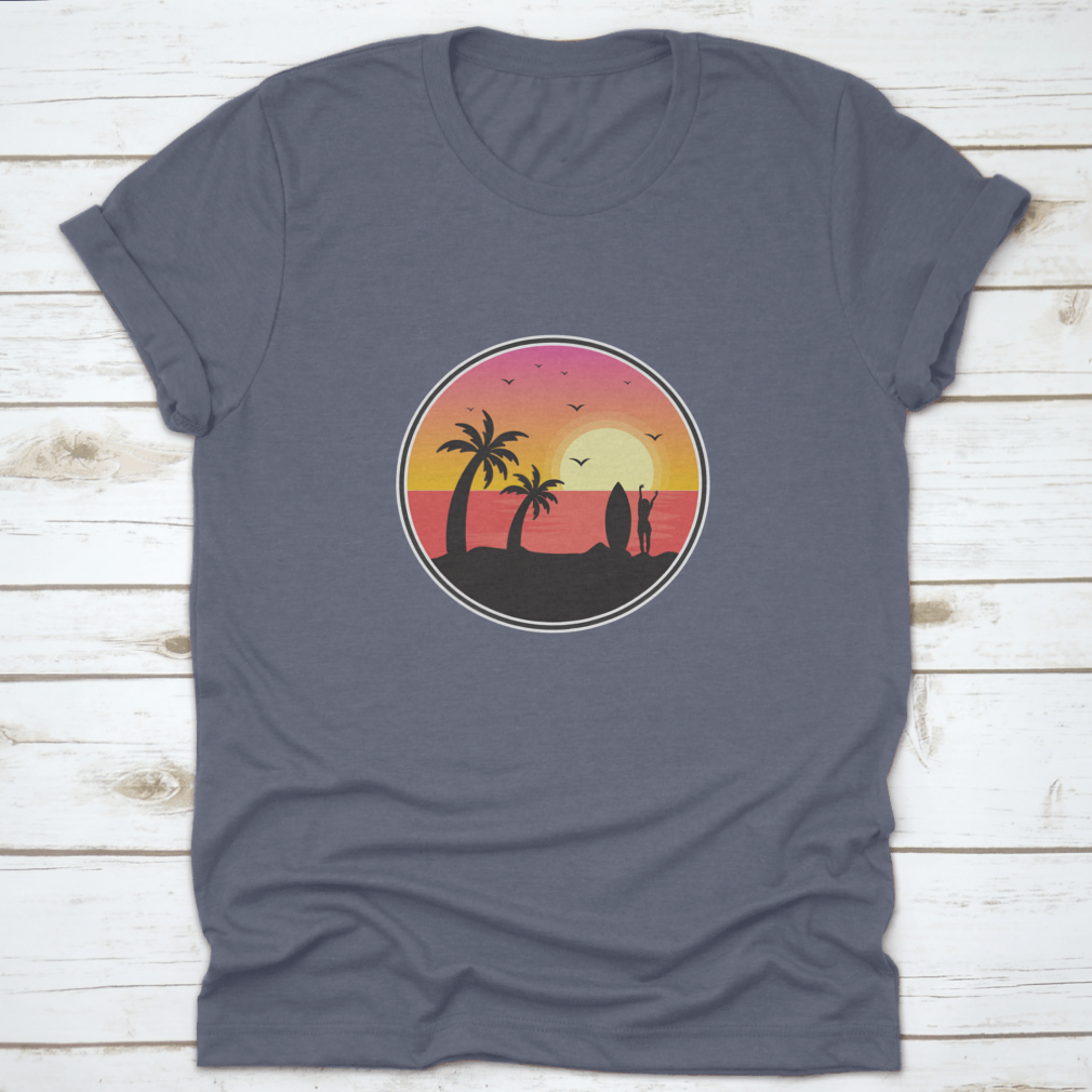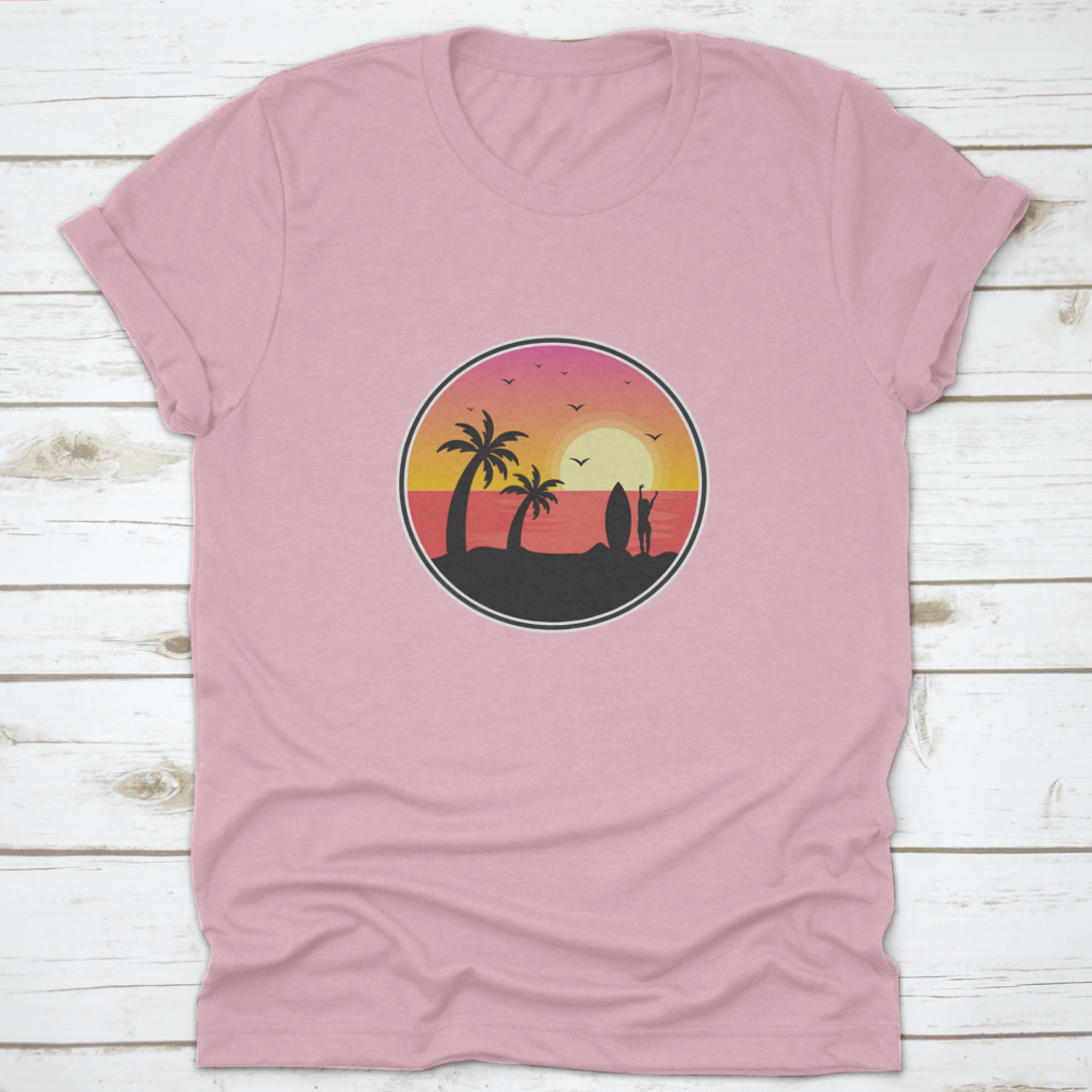 Introducing our stunning Girl Surfer With Sunset View t-shirt, a perfect blend of style and comfort for beach lovers and surfers alike. This unique design captures the essence of Florida's beautiful beaches, featuring a breathtaking sunset view, graceful birds, and iconic palm trees. Made from high-quality materials, this t-shirt is not just a fashion statement but also a tribute to the vibrant beach culture.