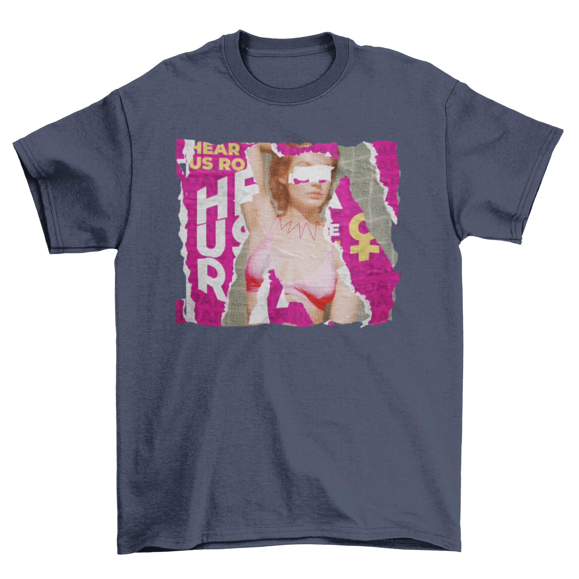 Introducing our stunning t-shirt featuring a unique feminist art design that showcases a ripped paper magazine pages collage. This incredible piece of wearable art is not just a fashion statement; it embodies the spirit of empowerment and the celebration of womanhood. The design is crafted with a photographic style that captures the essence of feminist art, making it a perfect addition to any wardrobe.