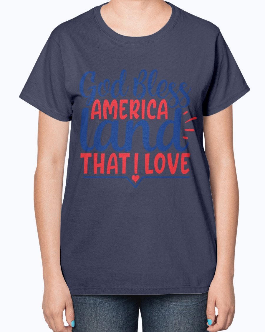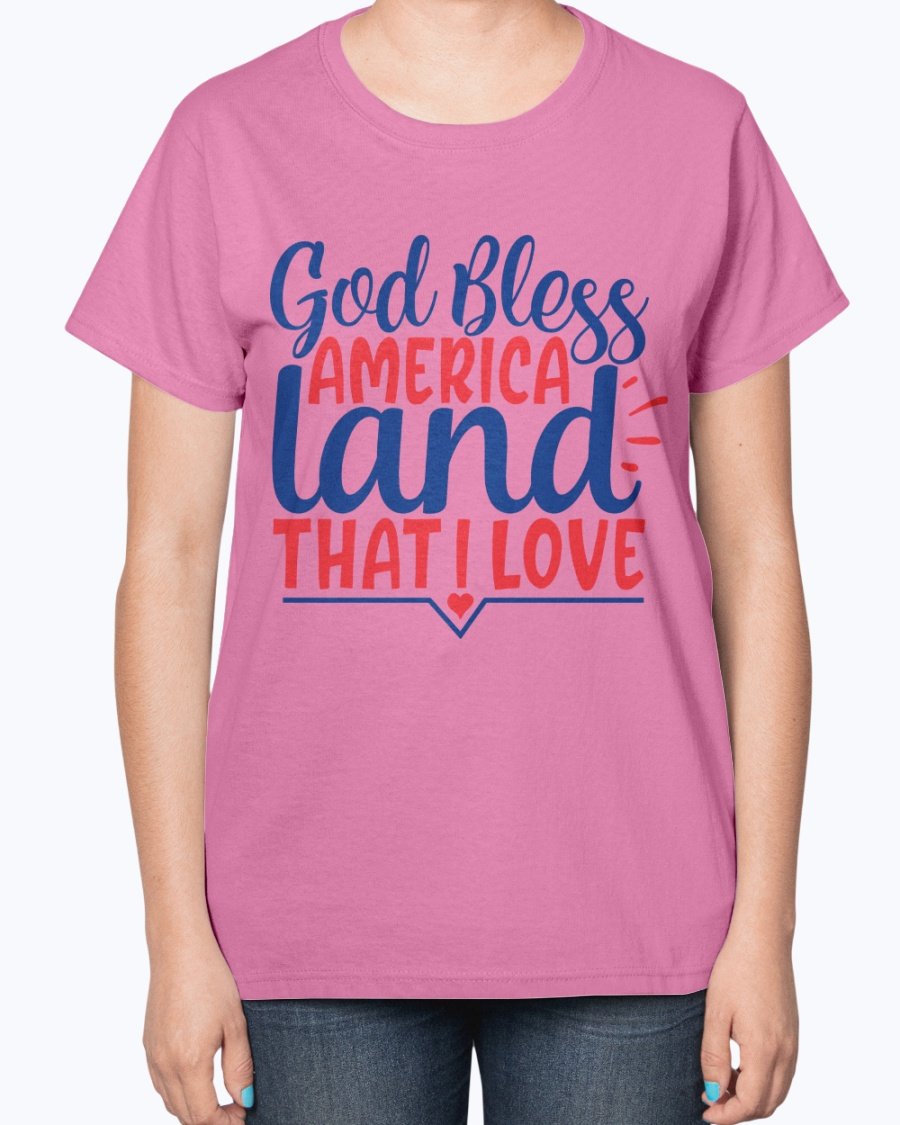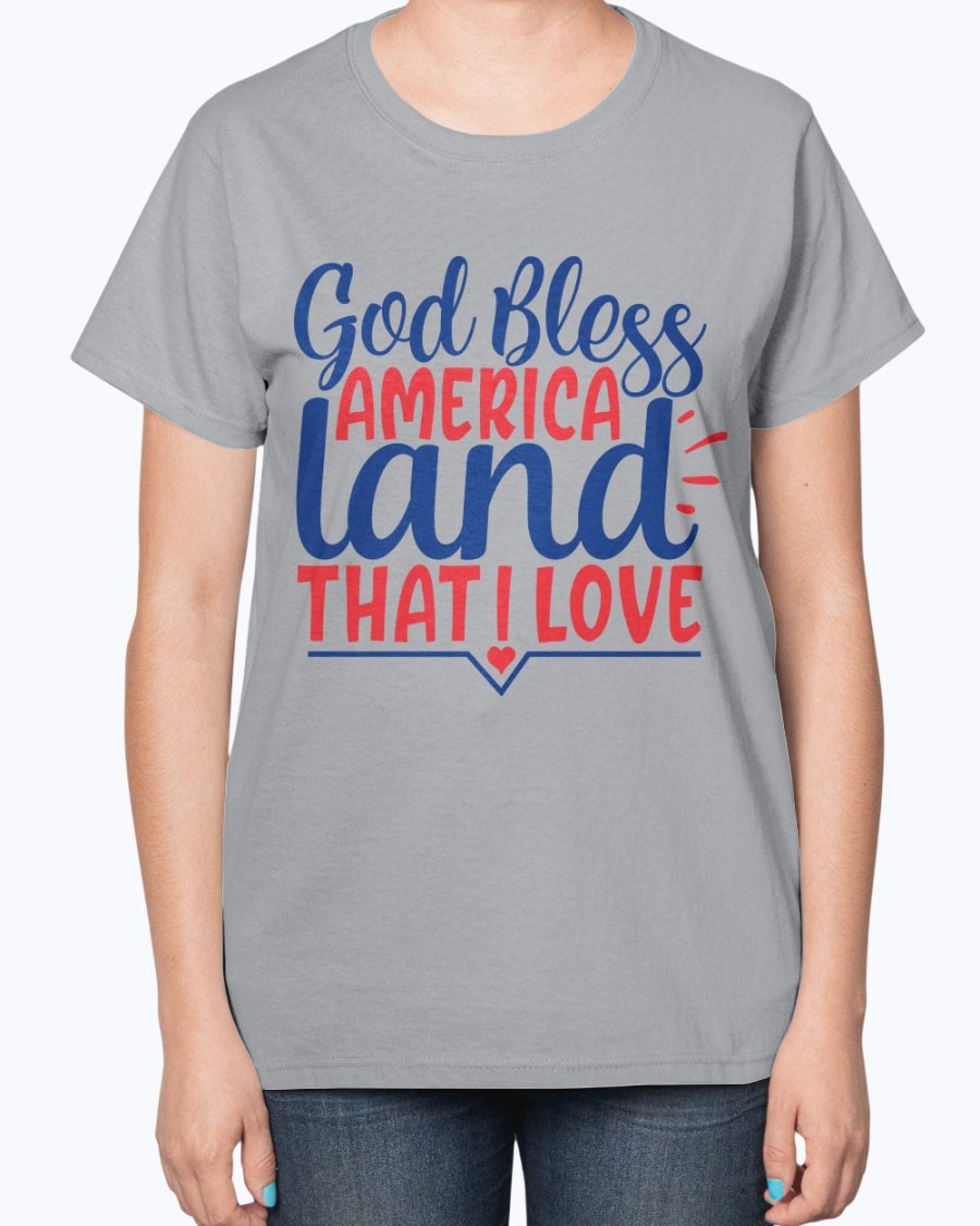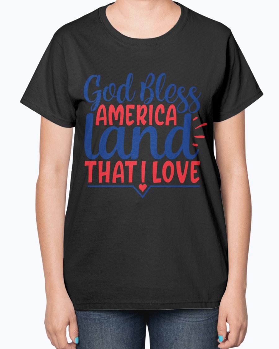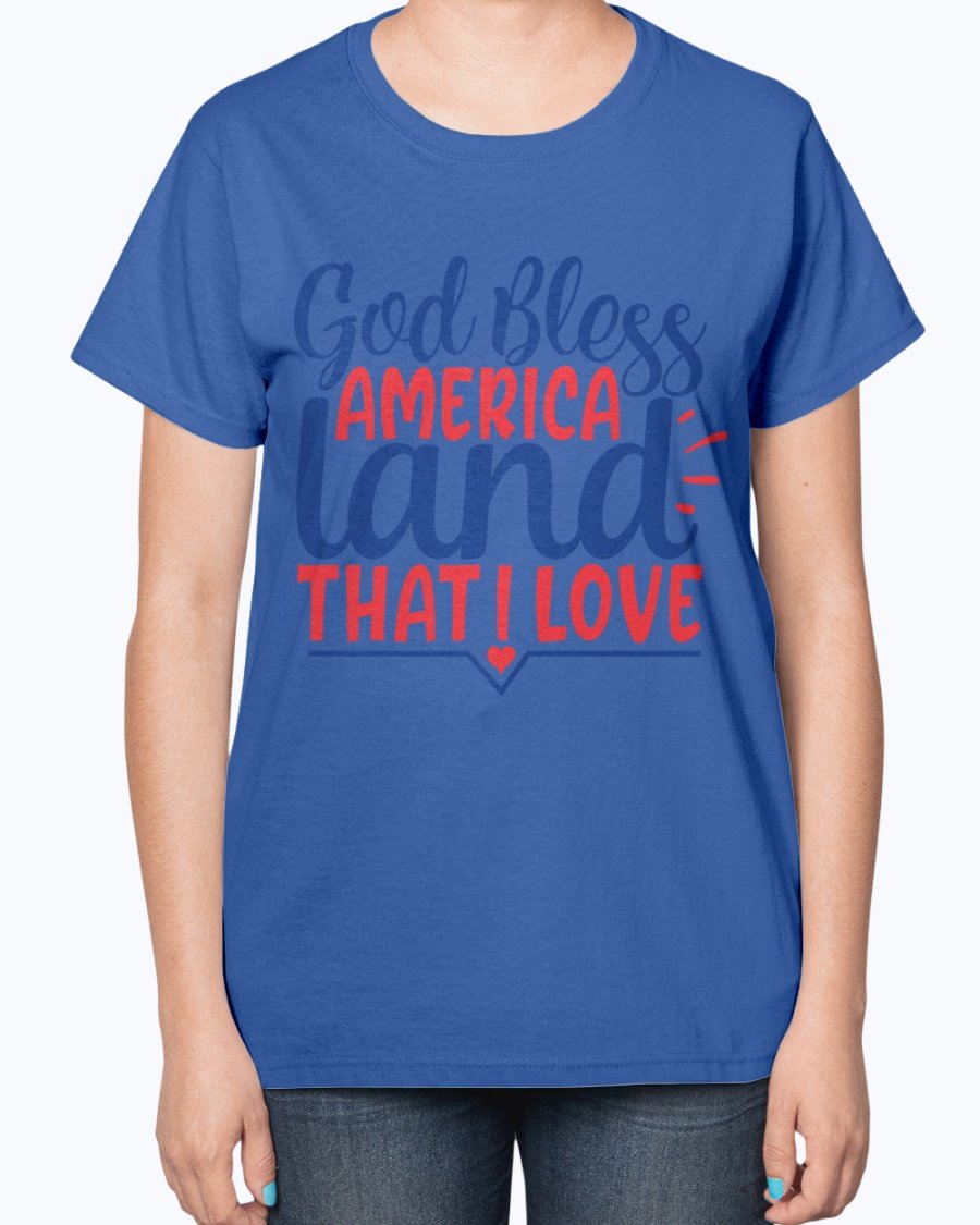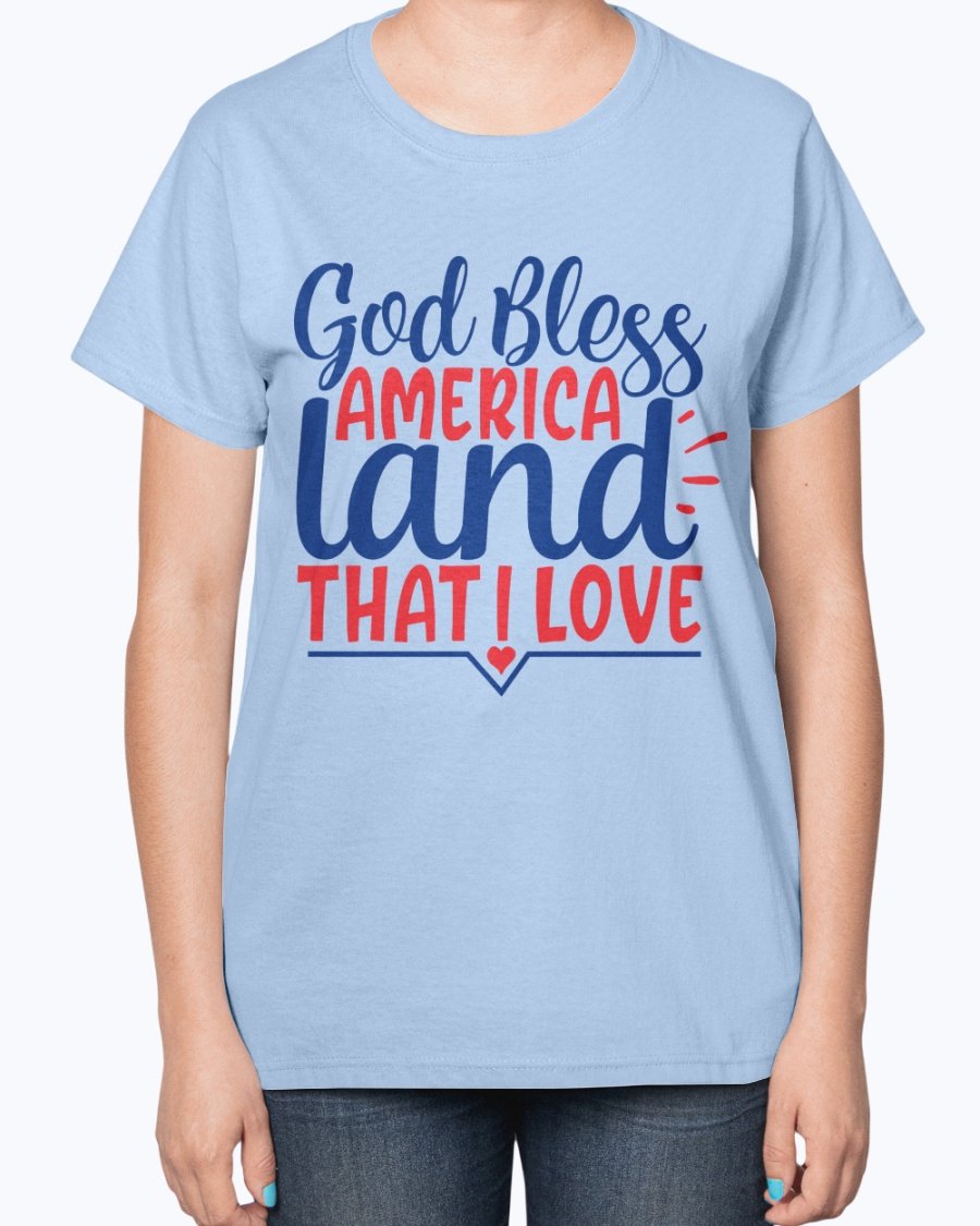 Introducing the God Bless America Ladies T-Shirt, a perfect blend of style and patriotism. This T-shirt is designed for women who want to express their love for America while enjoying comfort and versatility. Made from a high-quality cotton blend, this shirt is not only soft against the skin but also durable enough for everyday wear. Whether you're attending a Fourth of July celebration, a casual outing, or simply lounging at home, this T-shirt is an ideal choice.