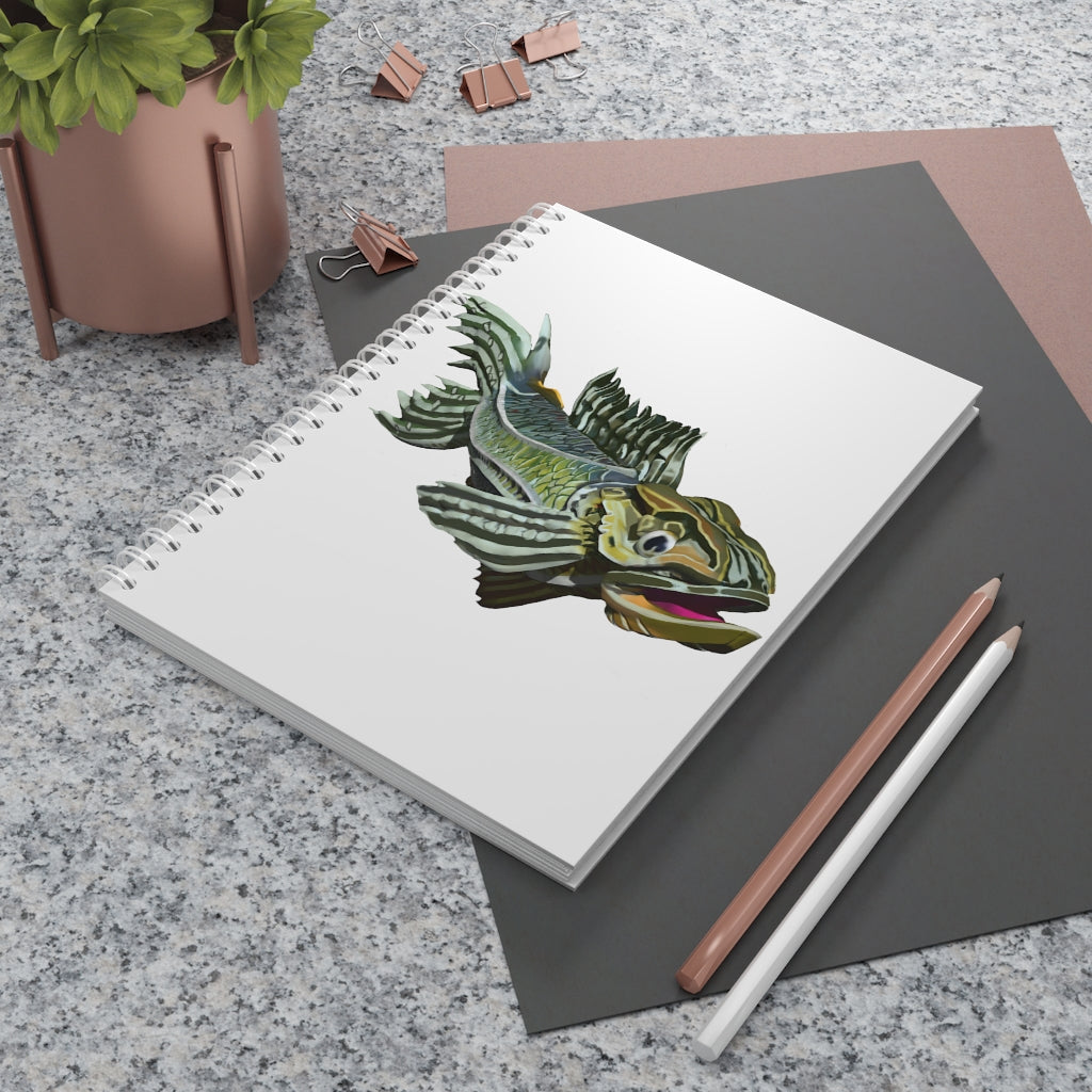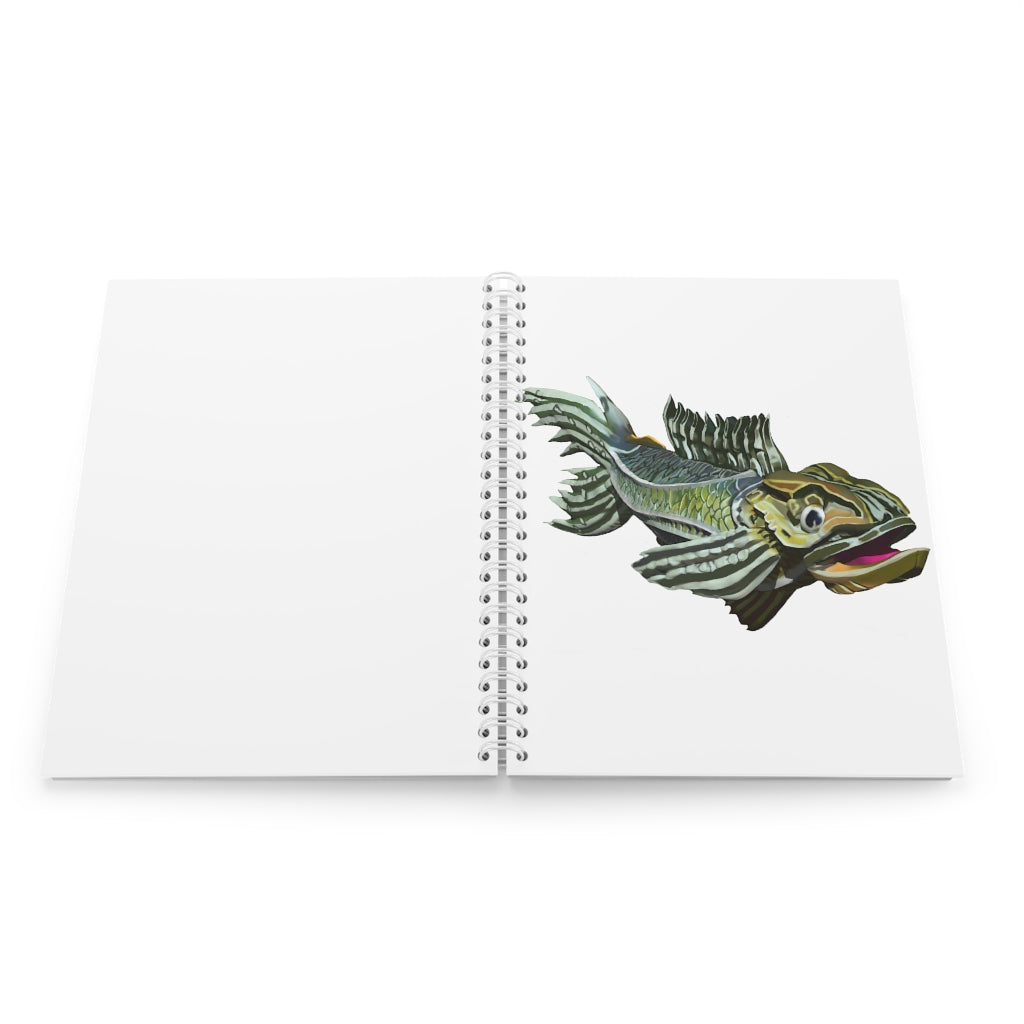 Green Fish Spiral Notebook with customizable covers and wide-ruled pages, perfect for journaling and note-taking.