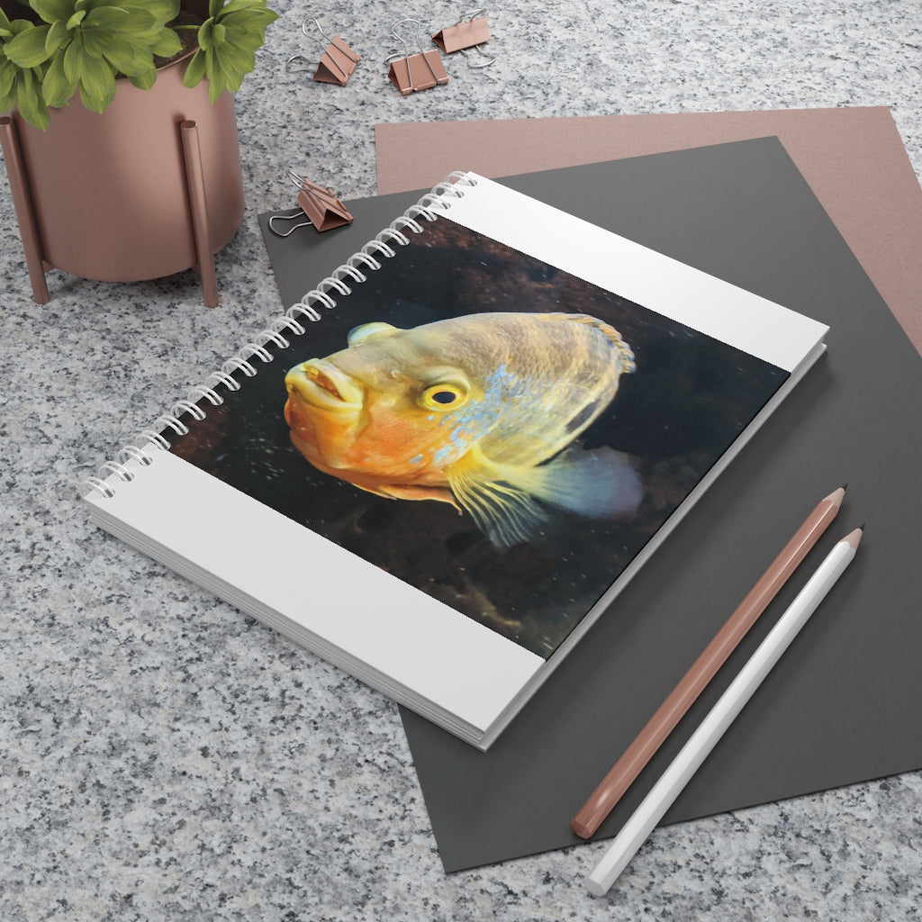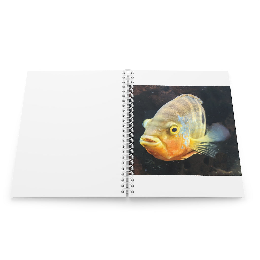 Grey Orange Fish Spiral Notebook with customizable covers and wide-ruled pages, perfect for journaling and note-taking.