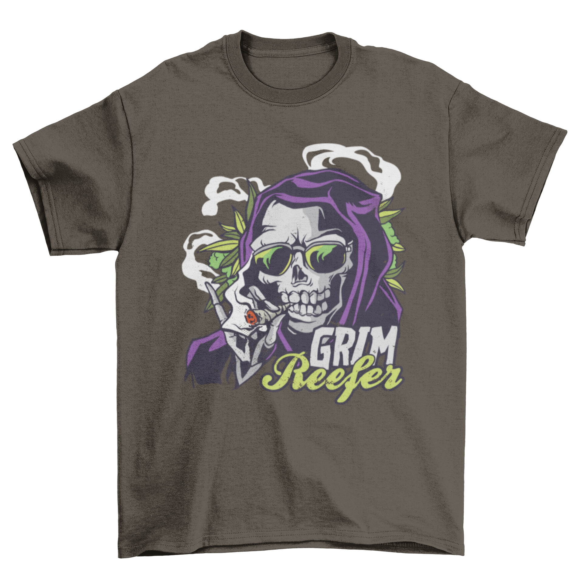 The Grim Reefer T-shirt is designed for casual wear, making it a great addition to your everyday wardrobe. Pair it with jeans, shorts, or joggers for a laid-back look that stands out. Whether you're going to a music festival, a barbecue, or just hanging out with friends, this T-shirt is sure to turn heads and spark conversations.
