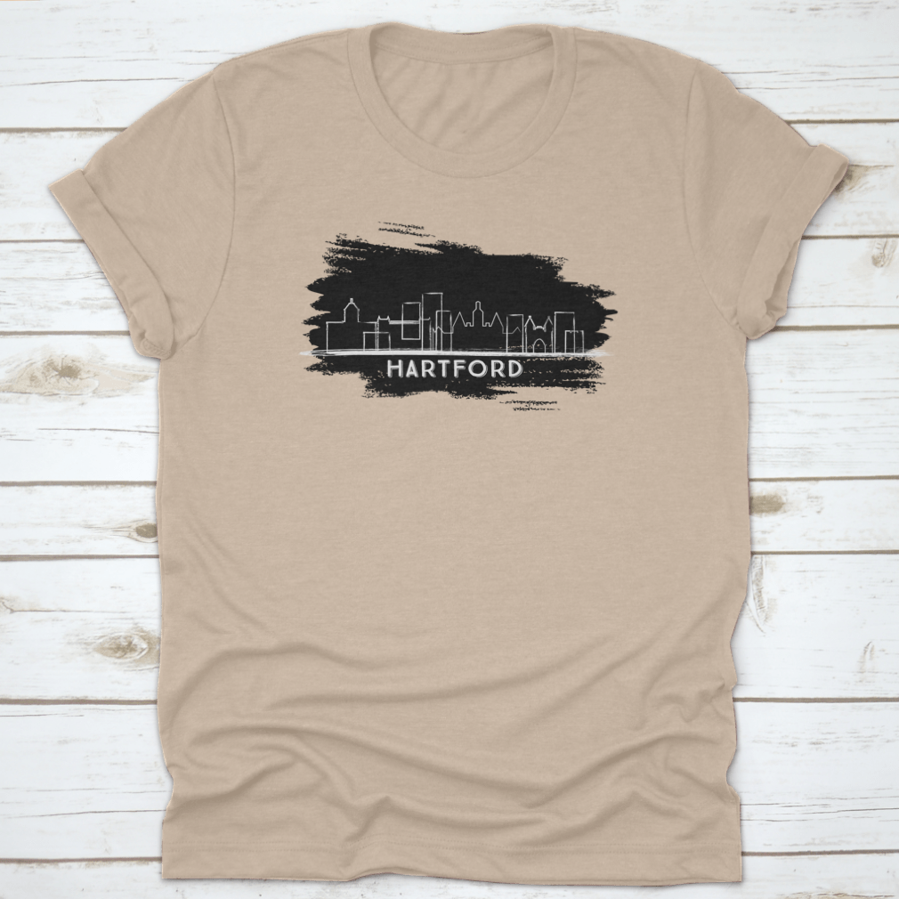 Introducing the Hartford Connecticut USA City Skyline Silhouette Hand Drawn Sketch t-shirt, a unique piece of apparel that showcases the iconic skyline of Hartford. This t-shirt is perfect for anyone who loves the city or wants to represent their hometown in style. Made from high-quality materials, this shirt combines comfort and style, making it an ideal choice for casual outings, events, or simply lounging at home.