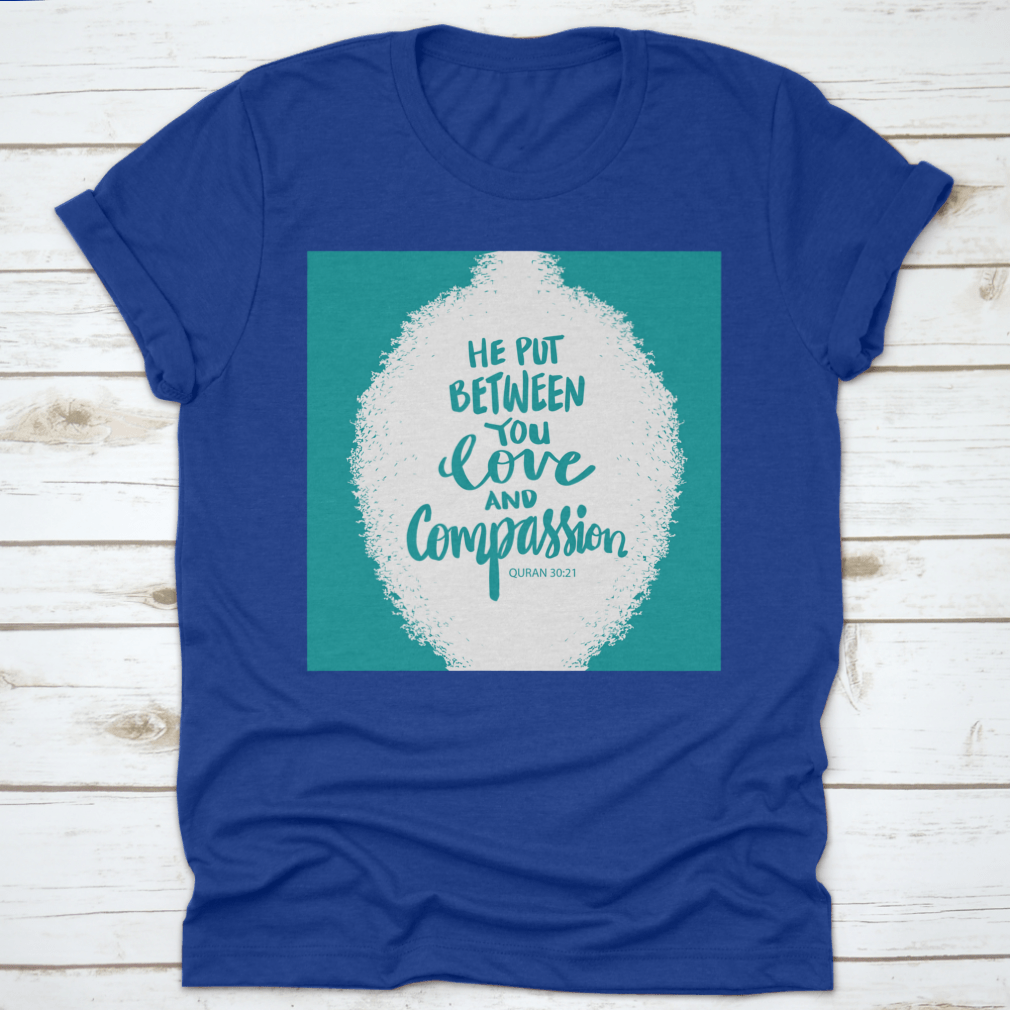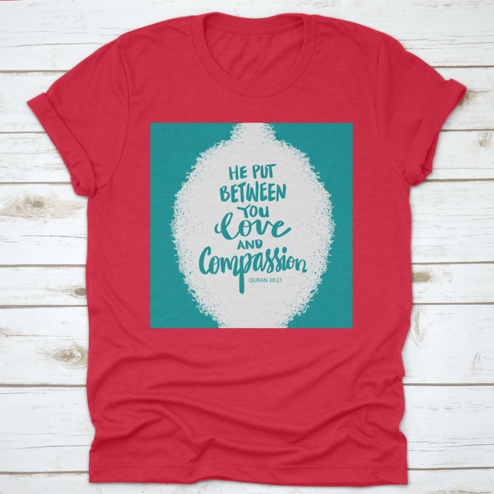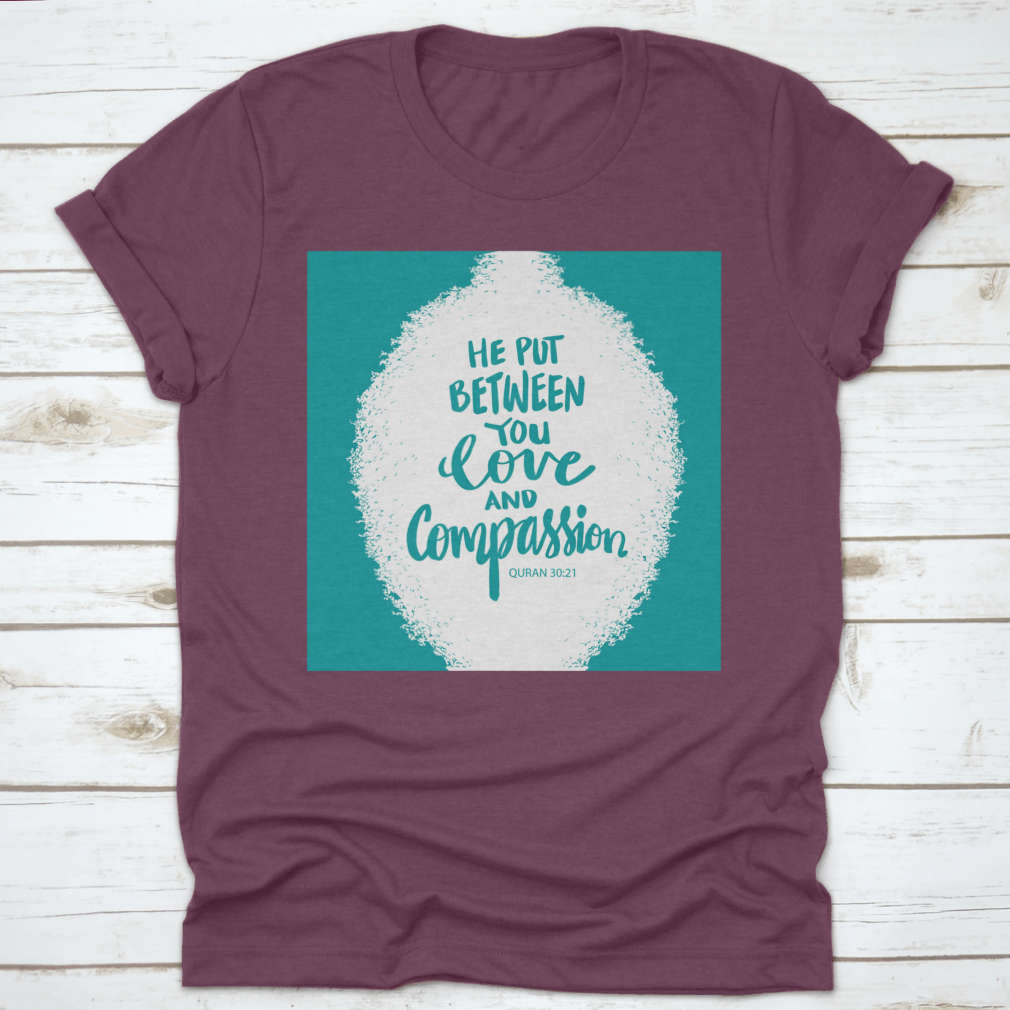 The 'He Put Between You Love And Compassion' quote is beautifully printed on the shirt, making it a standout piece in your collection. This design not only reflects your personal beliefs but also serves as a conversation starter, allowing you to share your faith with others. It’s a perfect way to spread positivity and love in your community.