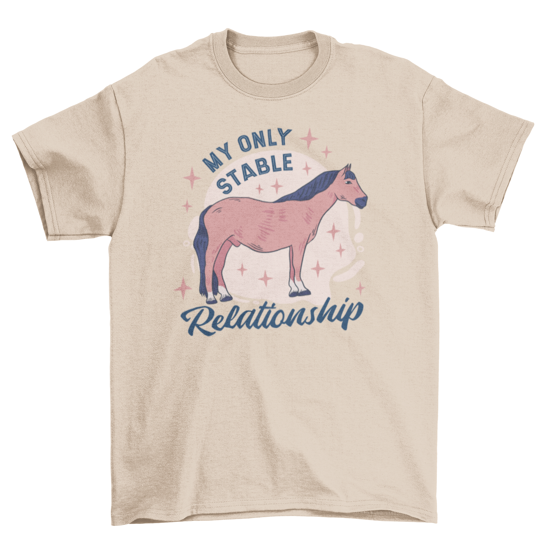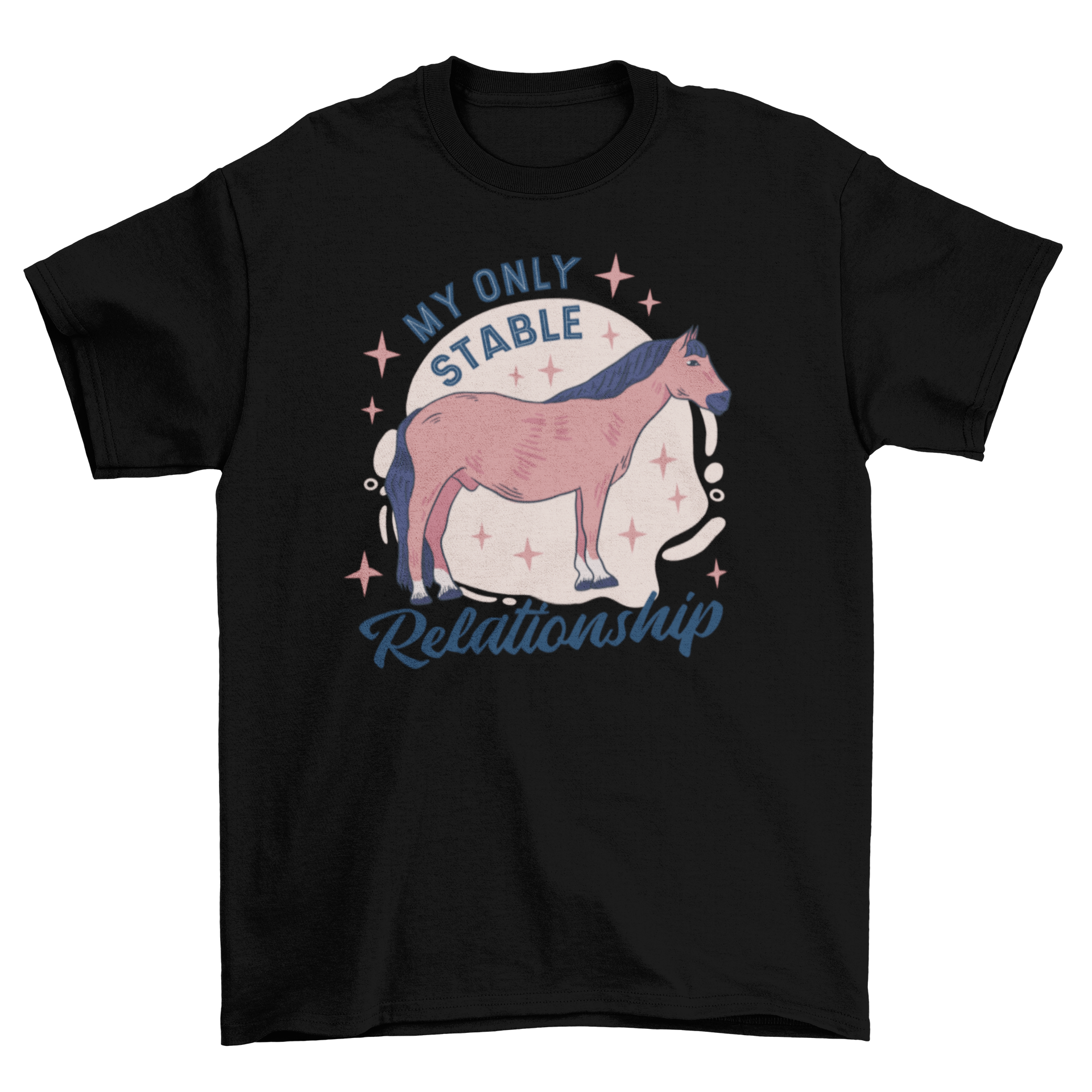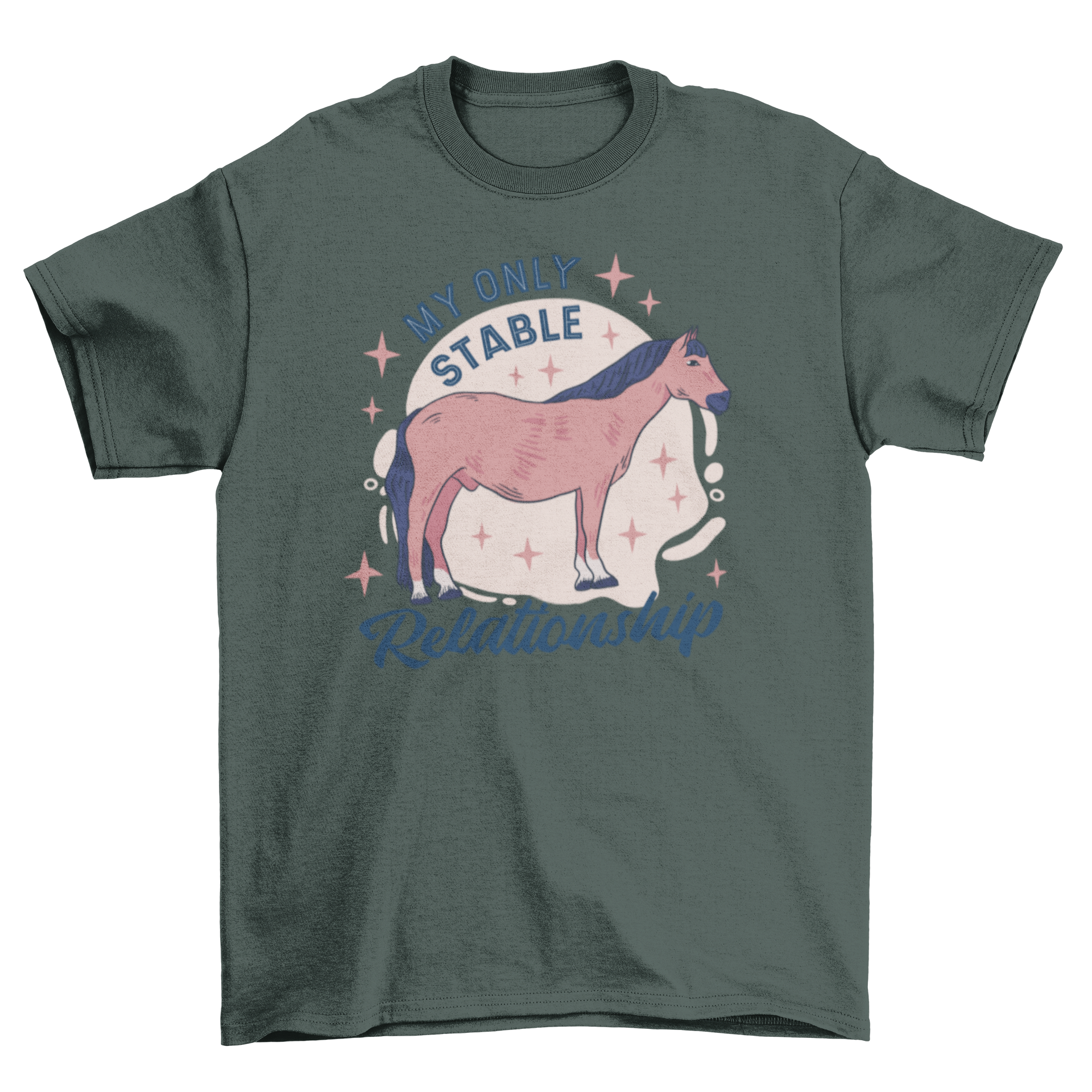 Introducing our Horse Farm Animal Funny T-Shirt, a must-have for anyone who loves horses and enjoys a good laugh. This unique t-shirt features a playful design that showcases a charming horse along with the witty quote, "My only stable relationship." It's perfect for horse enthusiasts, equestrians, or anyone who appreciates a clever play on words.
