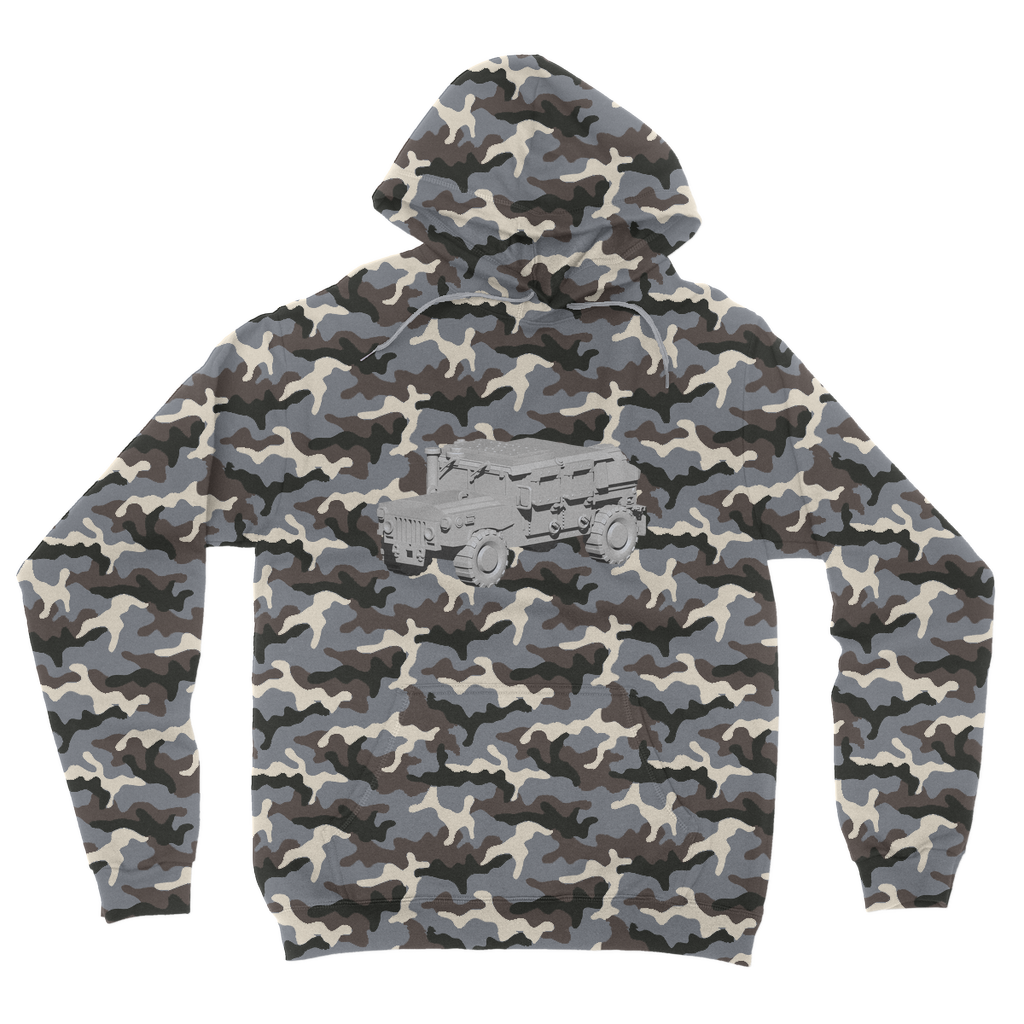 Introducing the Hummer Vehicle Camouflage Adult Hoodie, a perfect blend of style and comfort for those who want to make a statement. This hoodie features a classic all-over camouflage print that not only keeps you on-trend but also adds a unique flair to your casual wardrobe. Made from a soft cotton faced fabric, this hoodie is designed to provide an ideal printing surface, ensuring that the vibrant camo design stands out beautifully.