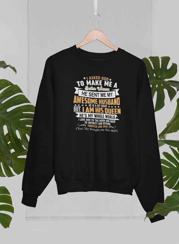 The I Asked God To Make Me A Better Woman Sweat Shirt is designed to be versatile. Pair it with your favorite jeans for a casual look, or wear it over leggings for a cozy day at home. The unique design allows you to express your personality while staying comfortable and stylish.