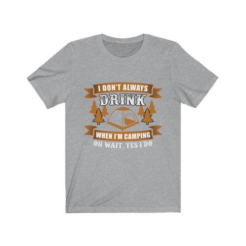 Embrace your love for camping with our unique 'I Don't Always Drink When I Am Camping' T-Shirt. This fun and humorous shirt is perfect for those who enjoy the great outdoors and want to showcase their personality while enjoying a camping trip. Made from 100% soft cotton, this T-shirt offers ultimate comfort, making it an ideal choice for long days spent in nature.