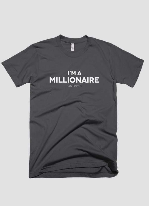 In summary, the 'I'm a Millionaire on Paper' T-shirt is a must-have for anyone who loves to combine humor with style. With its comfortable fit, quality fabric, and versatile design, it's perfect for any occasion. Plus, with our easy return policy, you can shop with confidence. Get yours today and wear your millionaire status proudly!