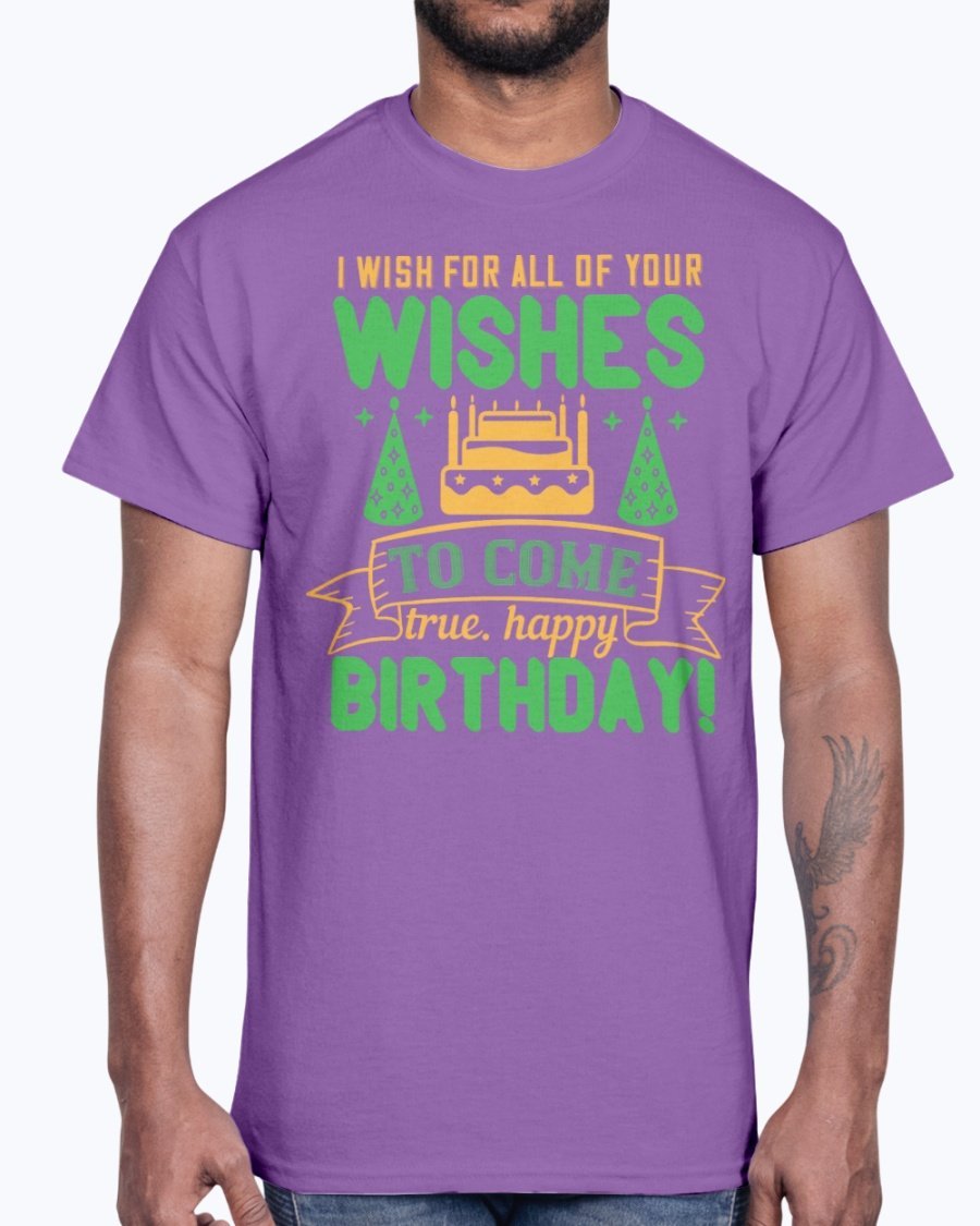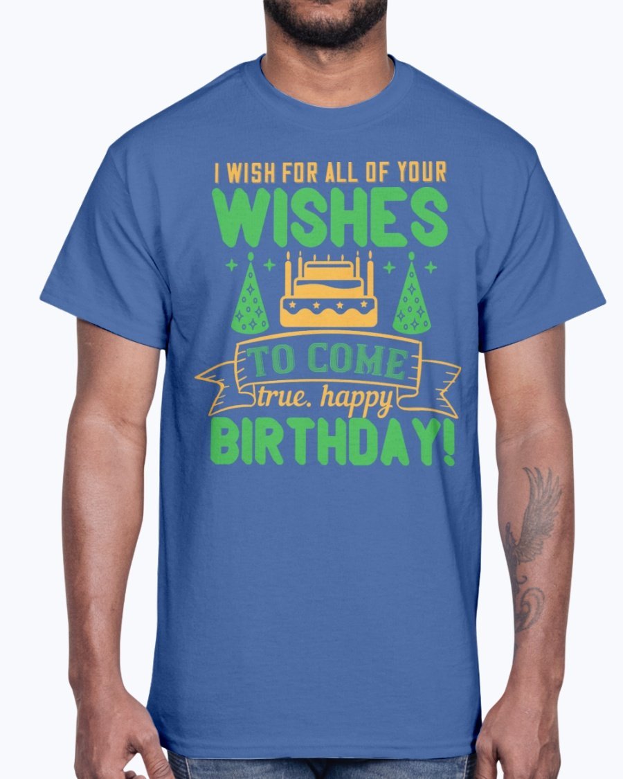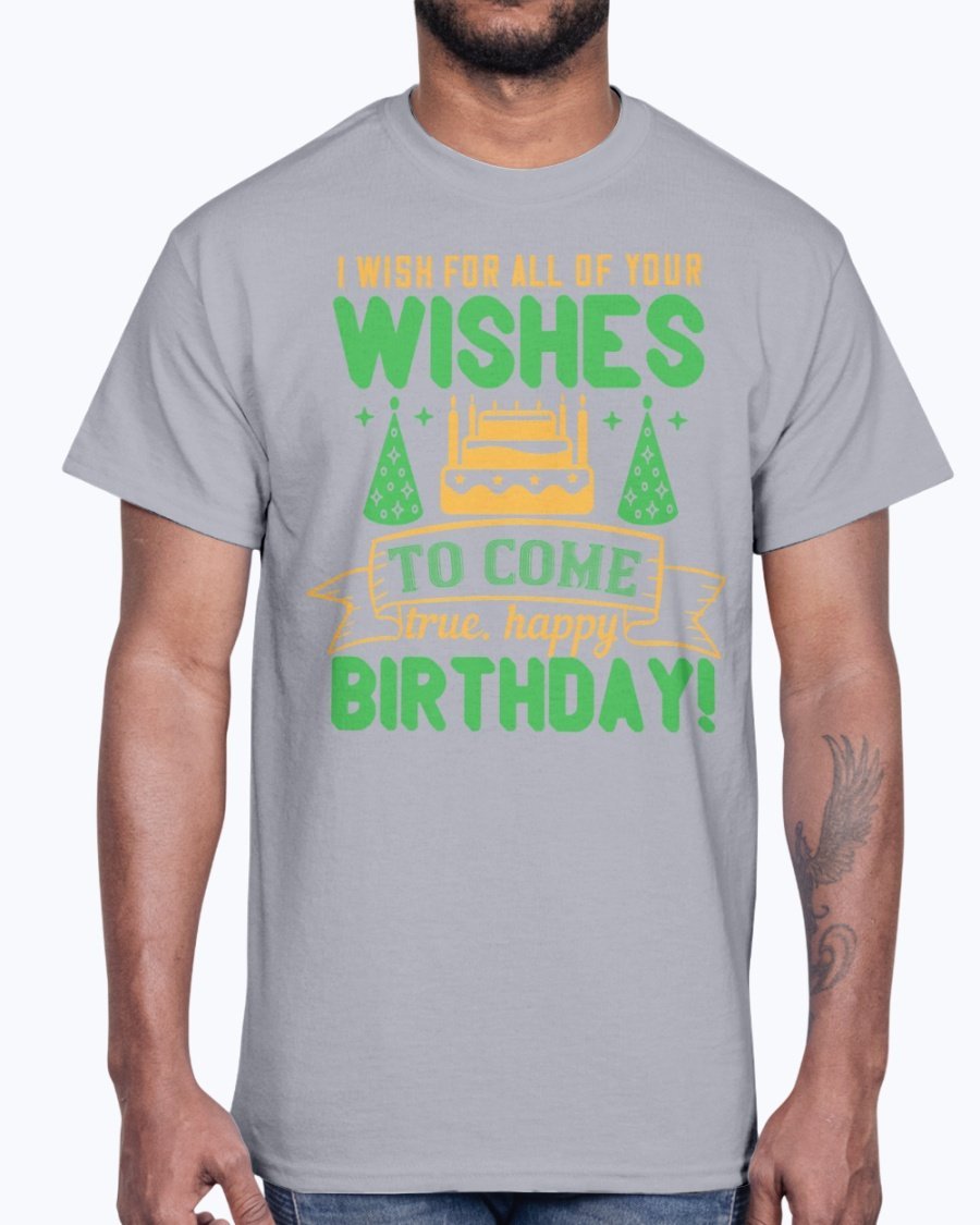 Celebrate your loved one's special day with our delightful 'I wish for all of your wishes to come true' birthday cotton tee. This charming shirt is not just a piece of clothing; it’s a heartfelt message that resonates with the joy of birthdays and the magic of wishes. Made from 100% preshrunk cotton, this tee ensures comfort and durability, making it a perfect addition to any birthday celebration.