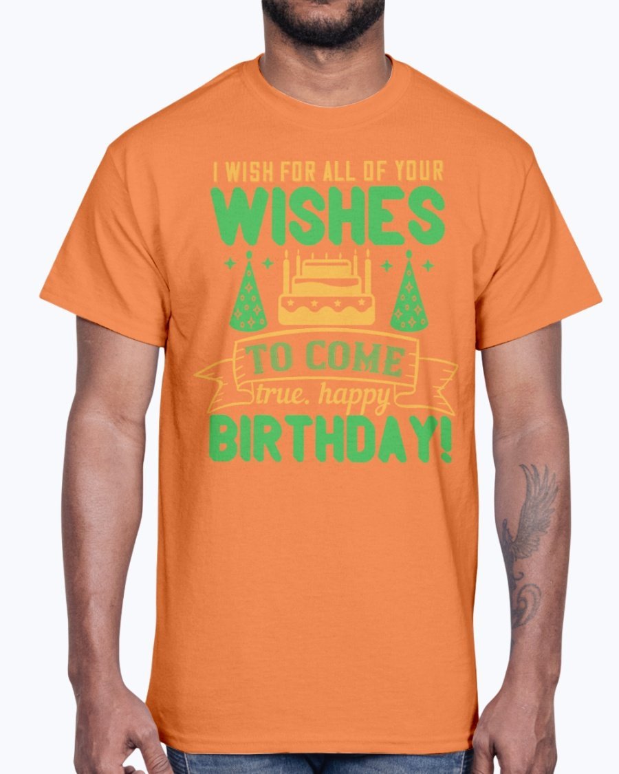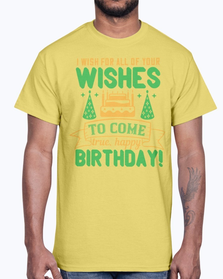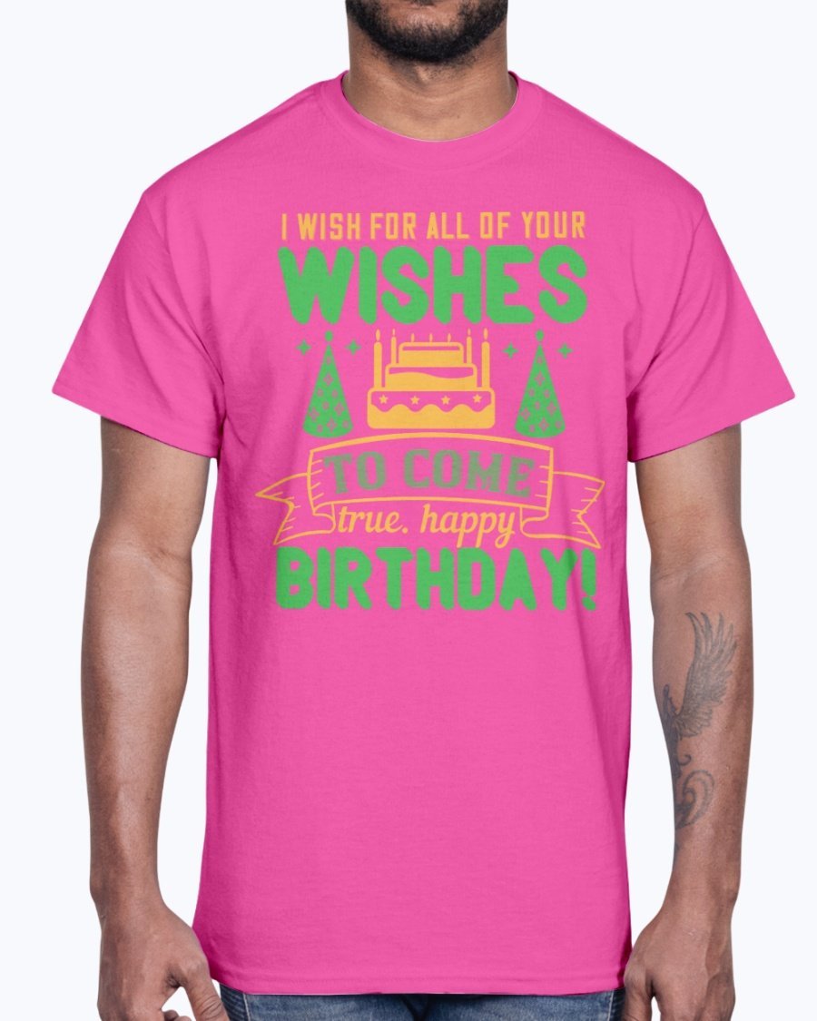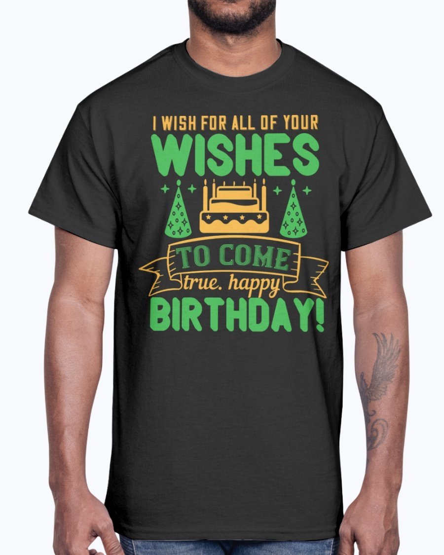 Celebrate your loved one's special day with our delightful 'I wish for all of your wishes to come true' birthday cotton tee. This charming shirt is not just a piece of clothing; it’s a heartfelt message that resonates with the joy of birthdays and the magic of wishes. Made from 100% preshrunk cotton, this tee ensures comfort and durability, making it a perfect addition to any birthday celebration.