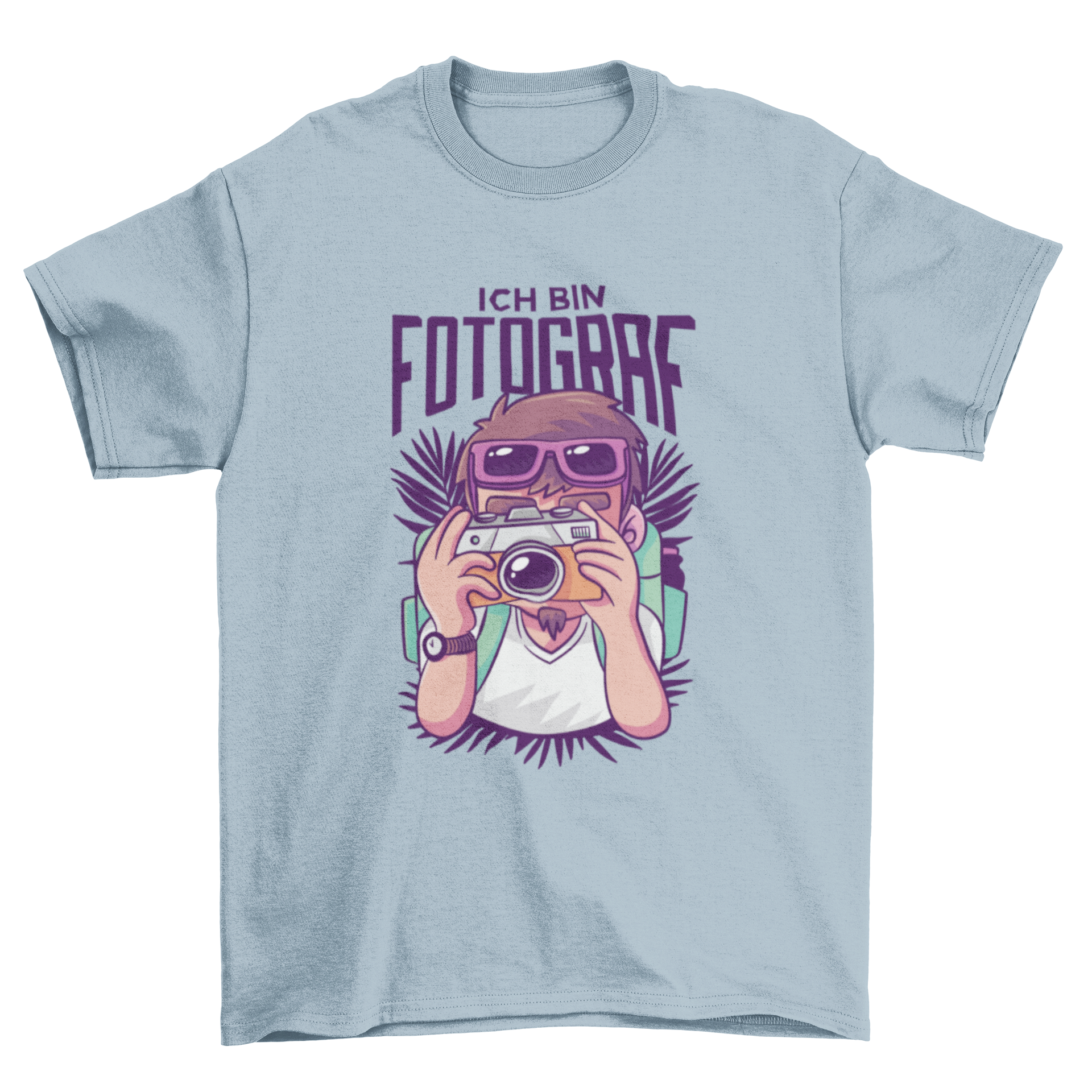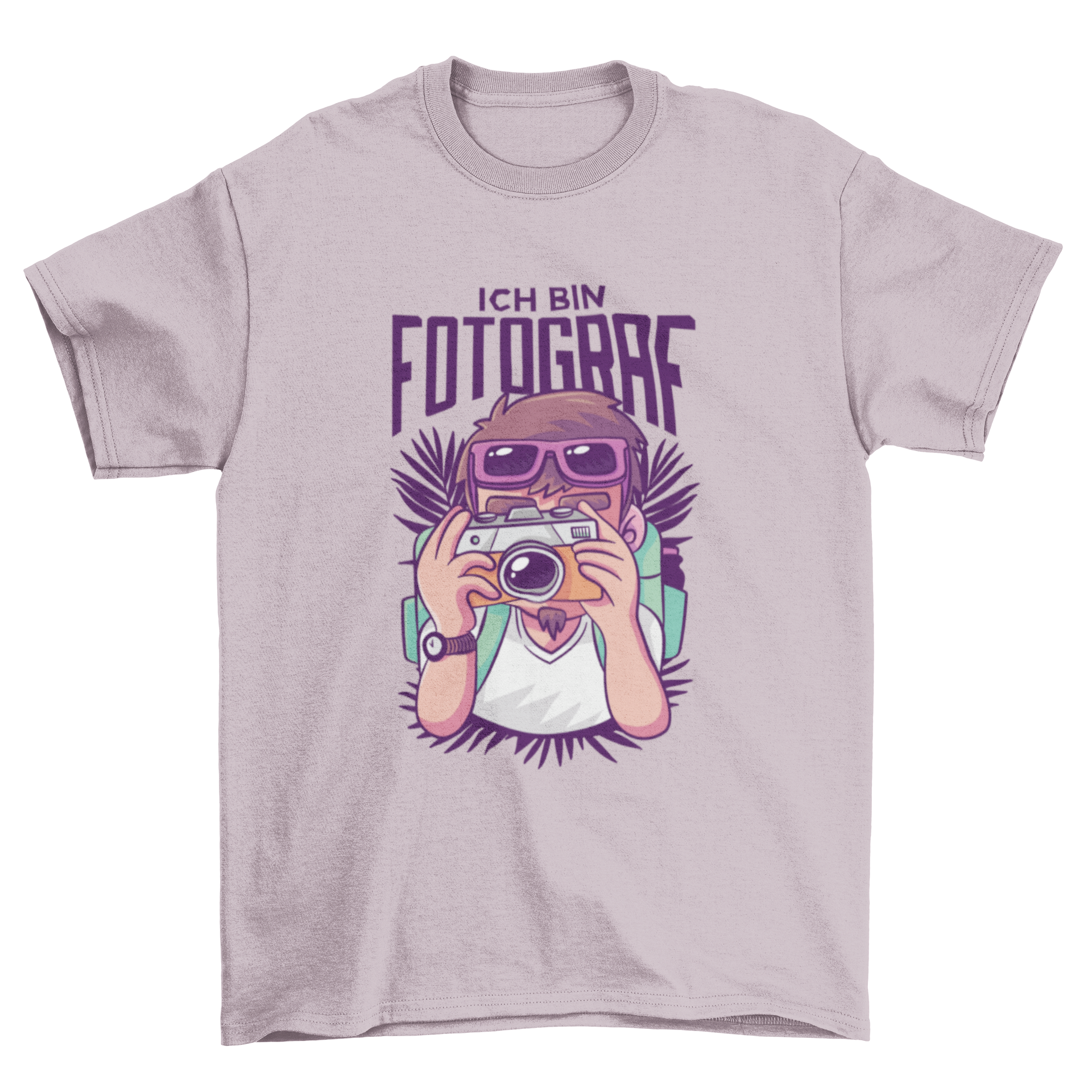 Introducing the Ich Bin Fotograf T-shirt, a must-have for photography enthusiasts and professionals alike. This unique t-shirt features a striking illustration of a male photographer, perfectly capturing the essence of creativity and passion for the art of photography. The bold caption 'Ich Bin Fotograf' translates to 'I am a photographer' in German, making it a fantastic way to express your identity and love for capturing moments.